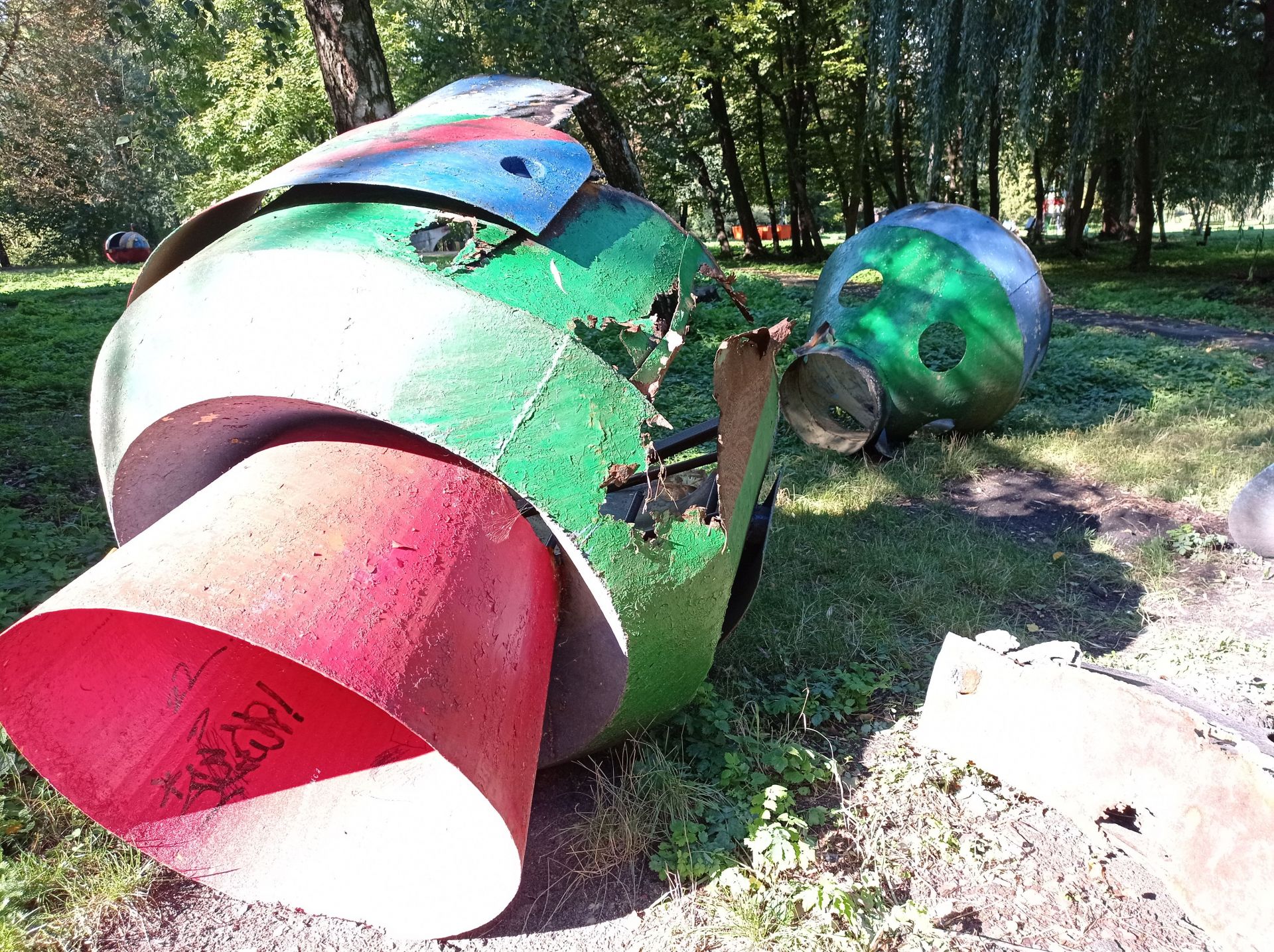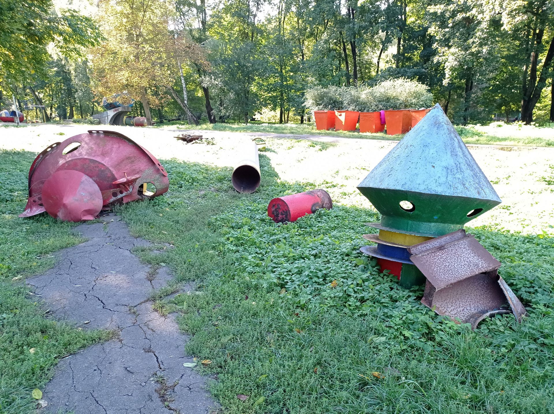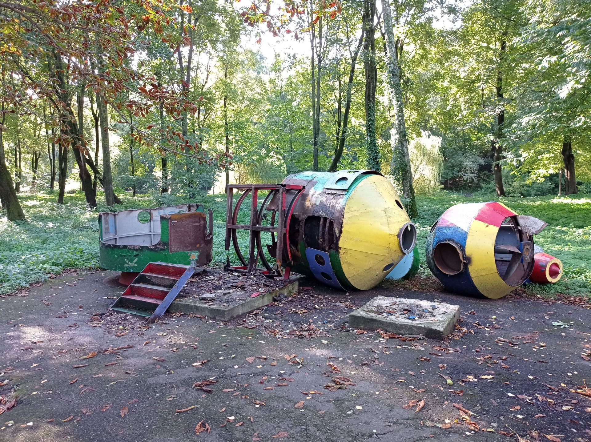 Ще залишились дві великі конструкції – одна з ракет знаходиться біля дитячого майданчика. На неї можна вилізти сходами, однак це небезпечно, оскільки вона стоїть на бетонних плитах.