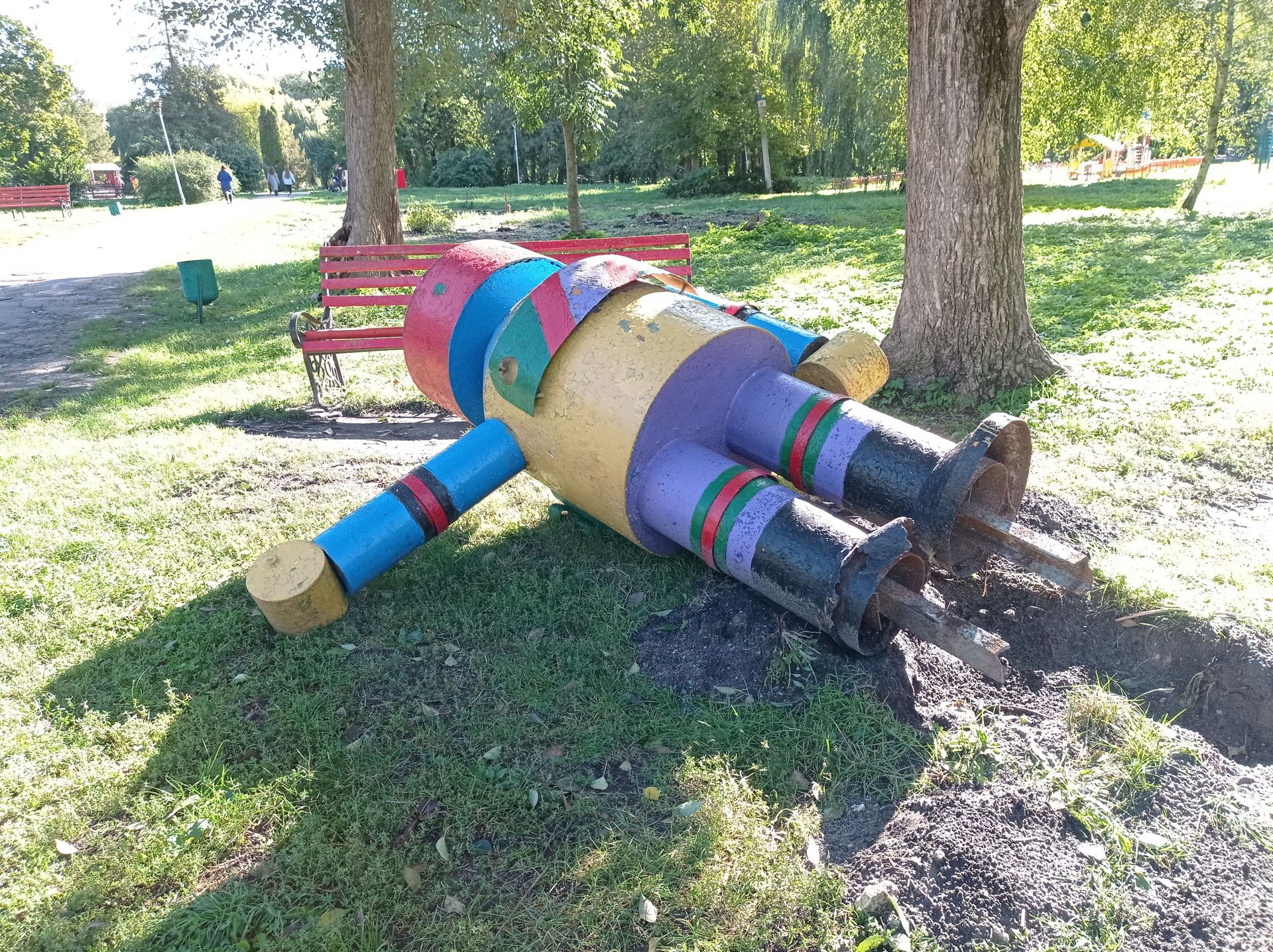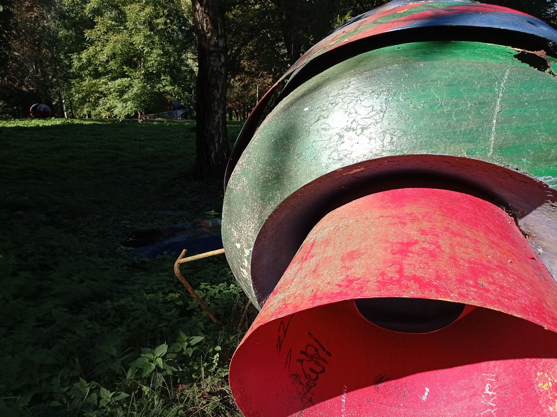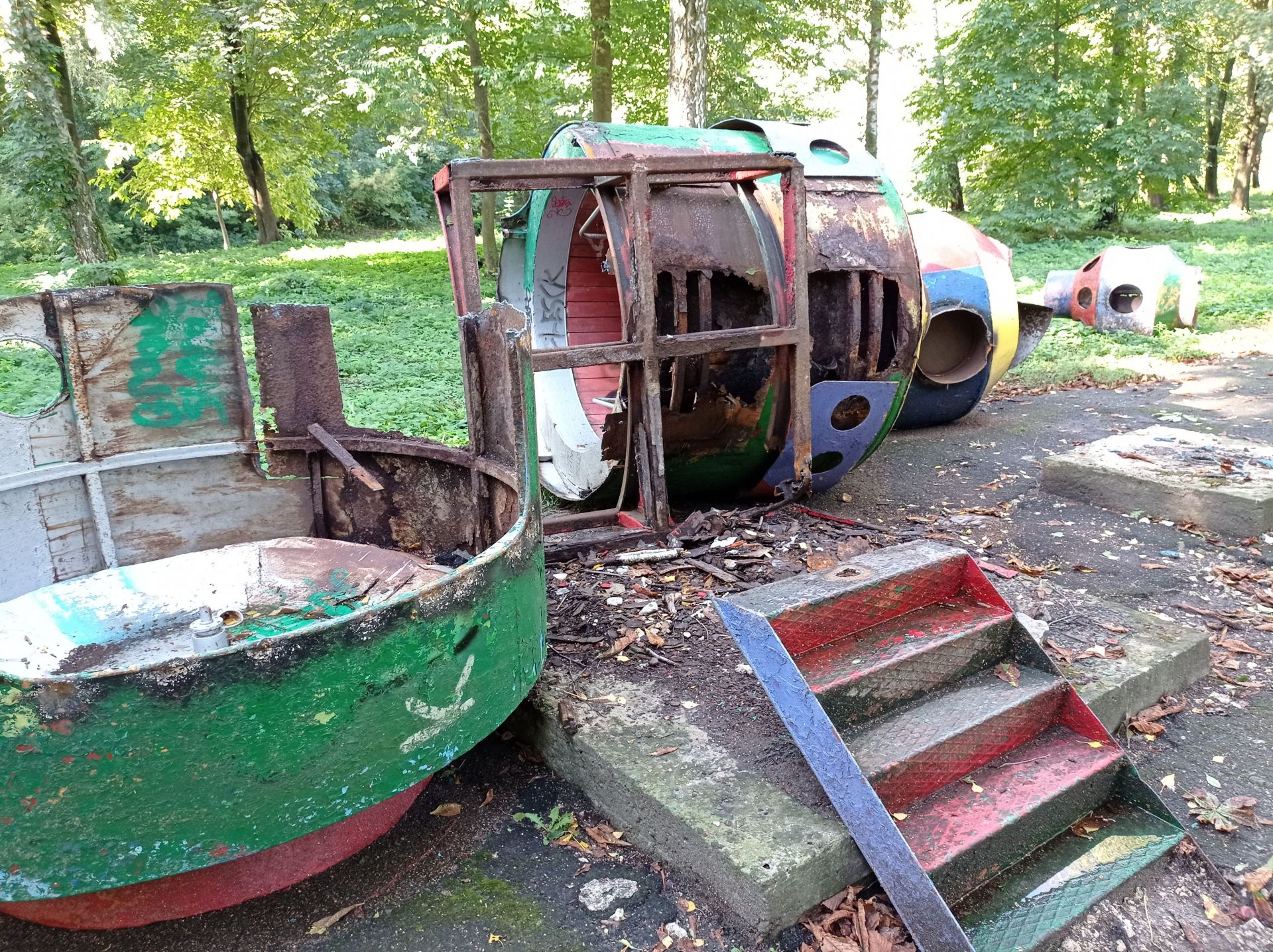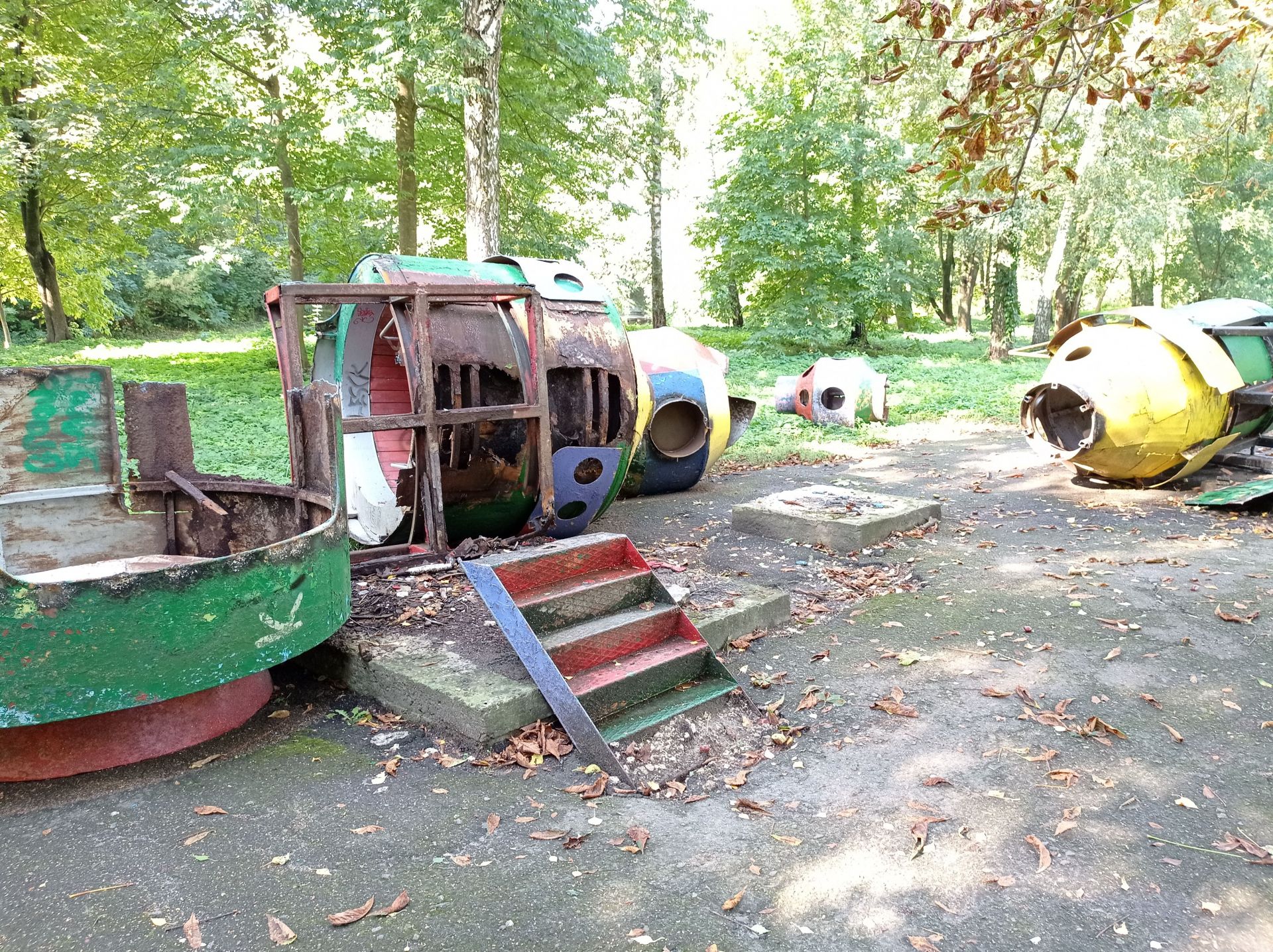 Ще залишились дві великі конструкції – одна з ракет знаходиться біля дитячого майданчика. На неї можна вилізти сходами, однак це небезпечно, оскільки вона стоїть на бетонних плитах.