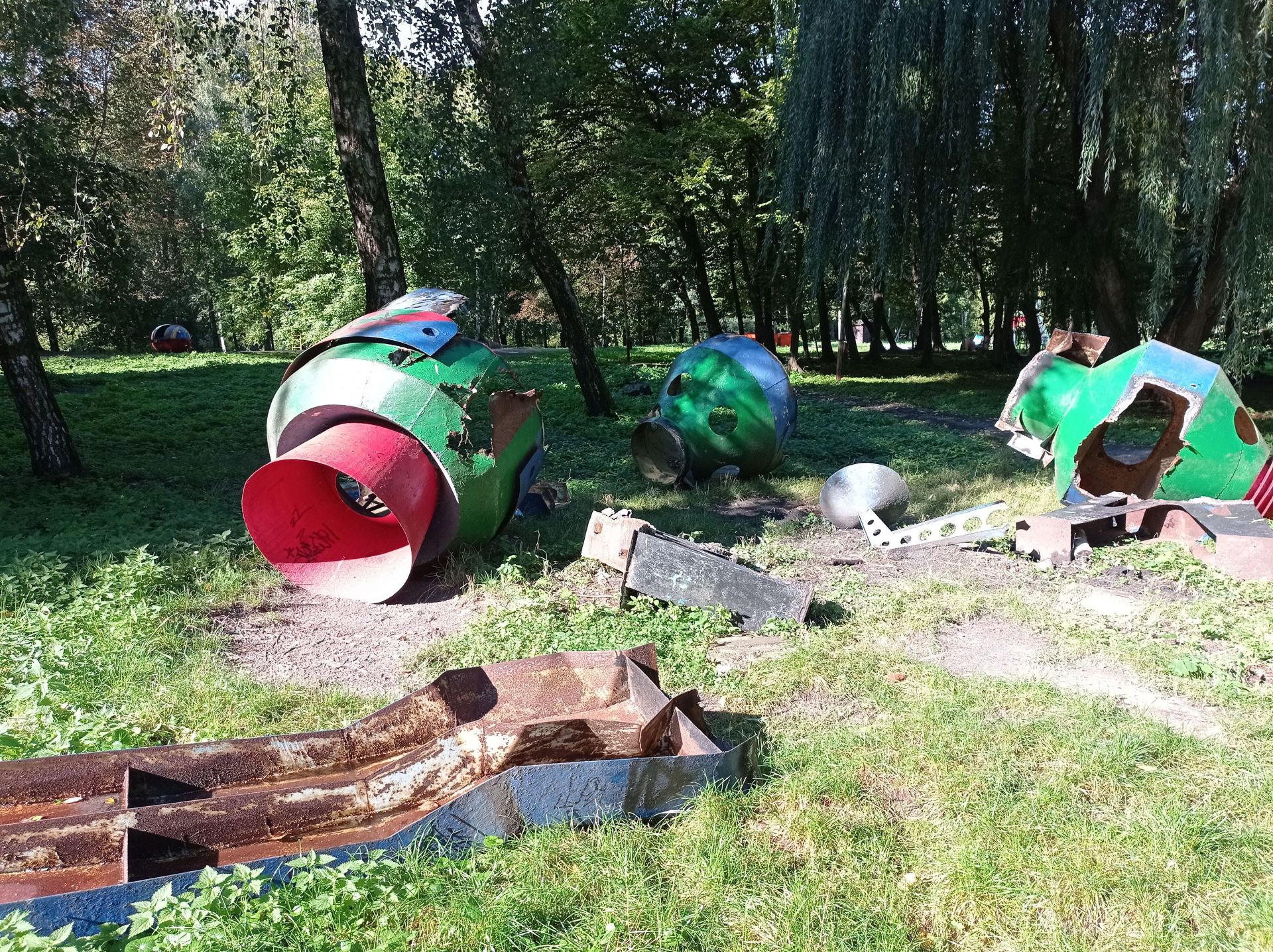 Наразі у парку триває демонтаж. Загалом було 11 різних конструкцій. Станом на ранок, 19 вересня, демонтували вже 9. Деякі ракети розрізали на кілька частин. Зрізали опори. Їх ще не встигли вивезти, тож вони залишаються лежати на своїх місцях.