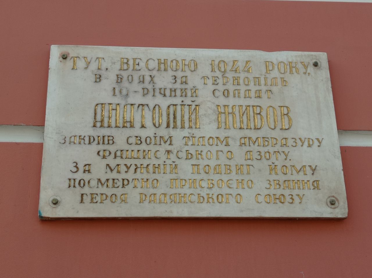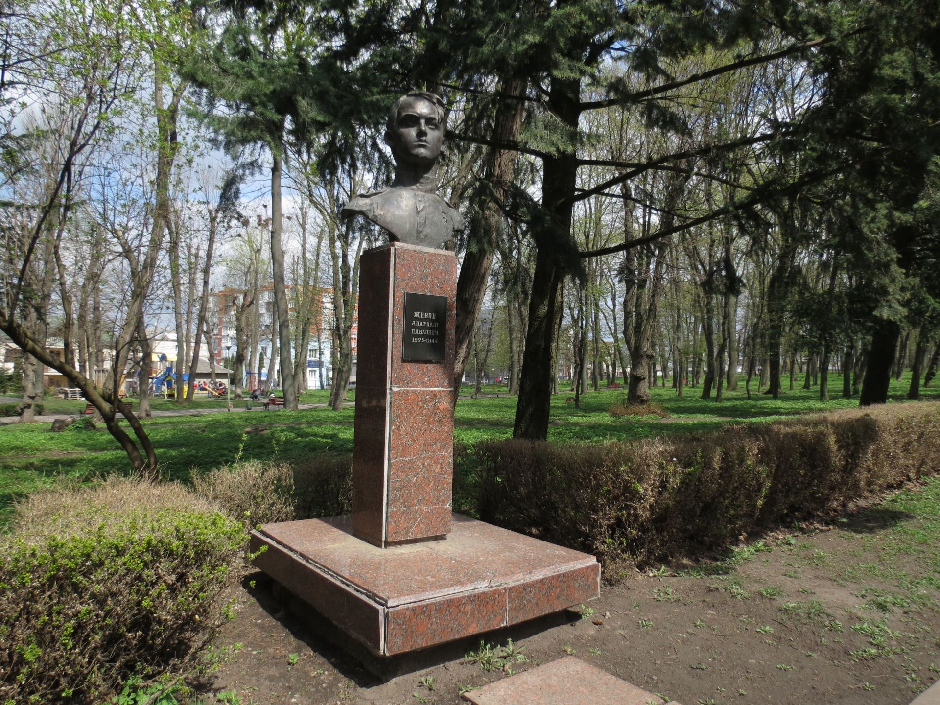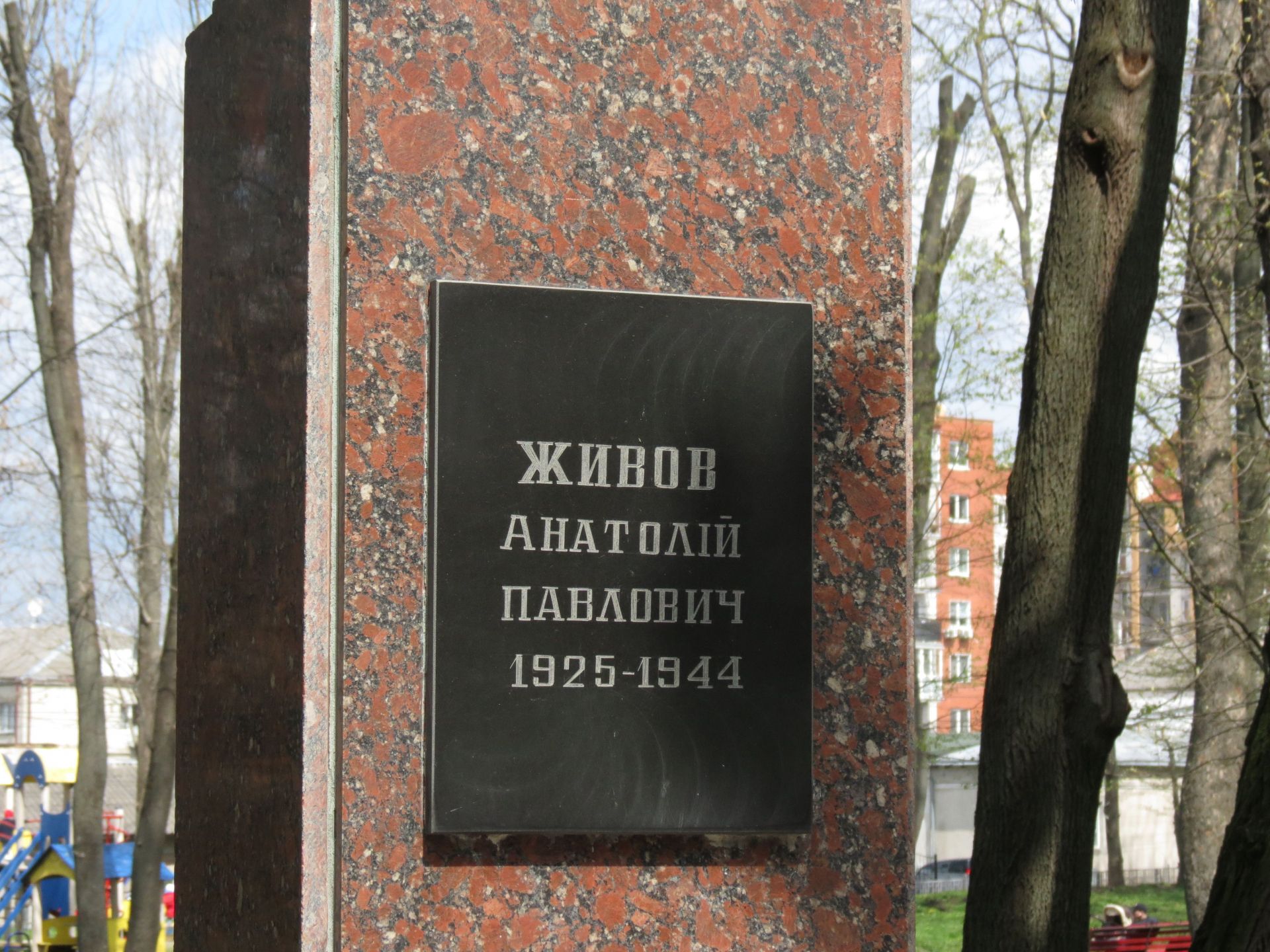На цьому місці загинув 19–річний солдат Анатолій Живов, ім’ям якого названа вулиця у місті, та якому встановлено погруддя у Старому парку.