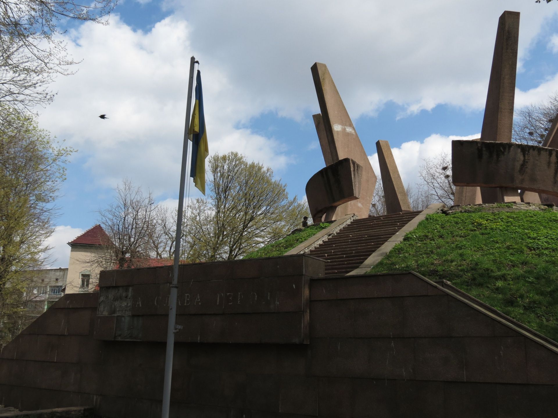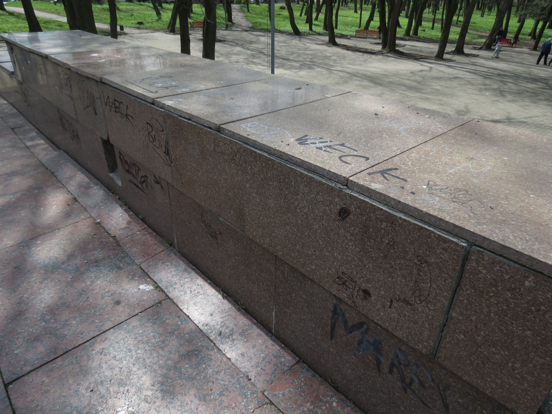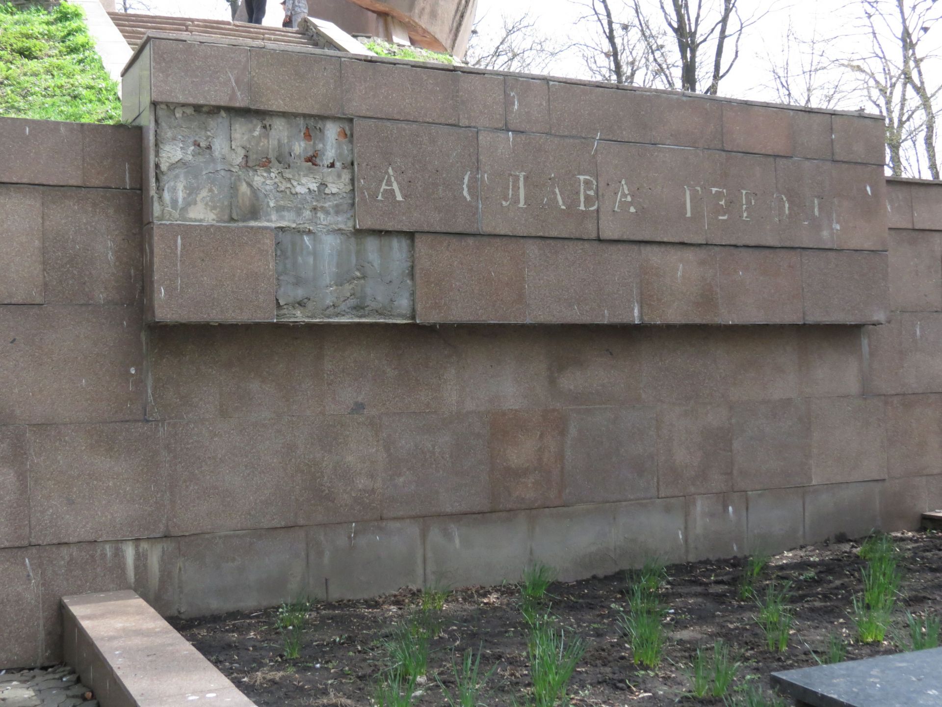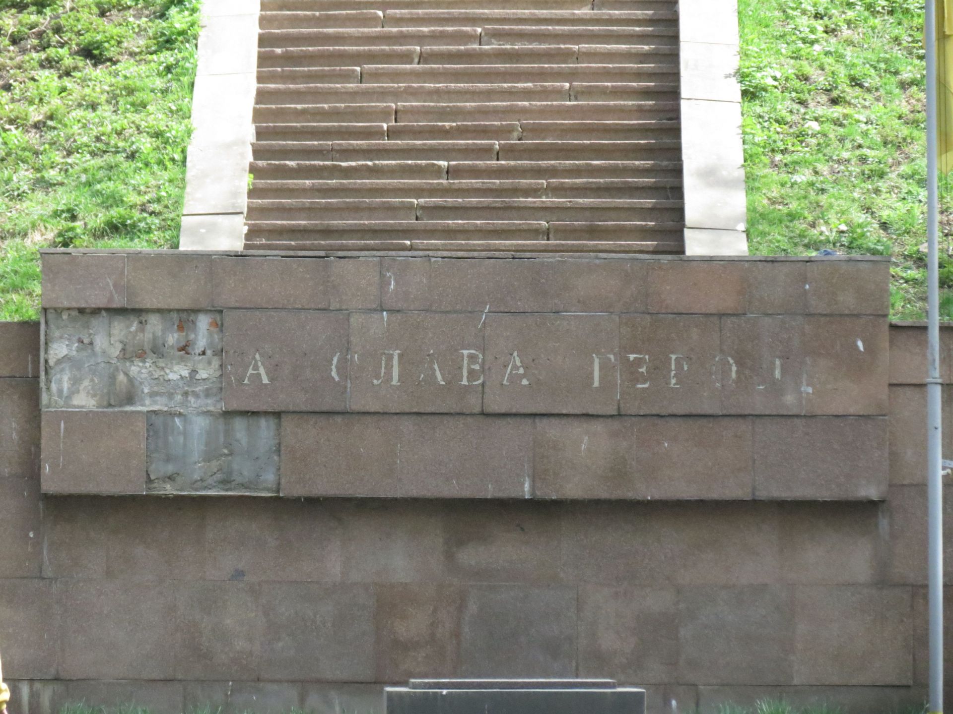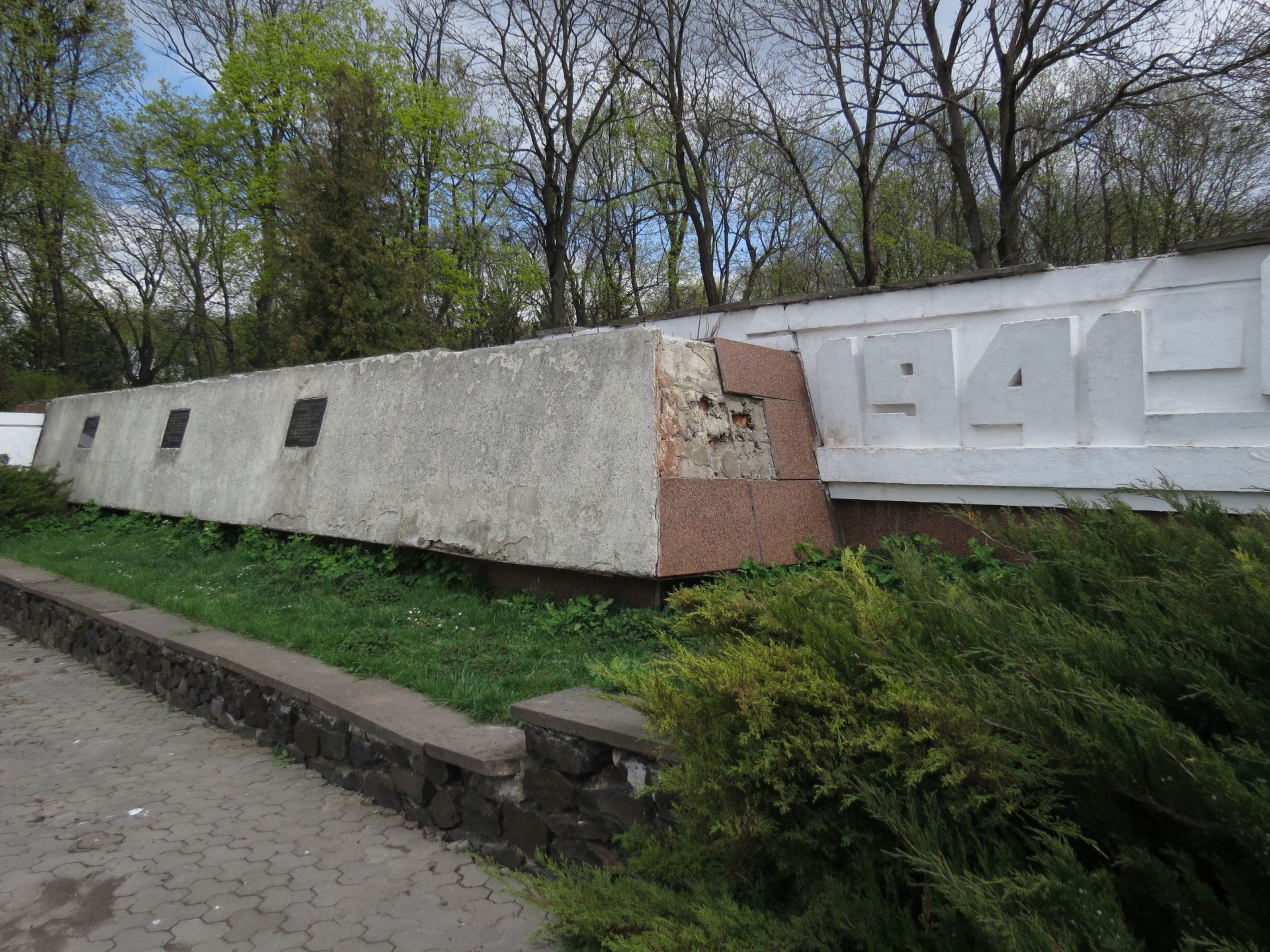 Цей меморіал теж не в кращому стані. Плитка обвалюється, бетонна конструкція пошарпана.