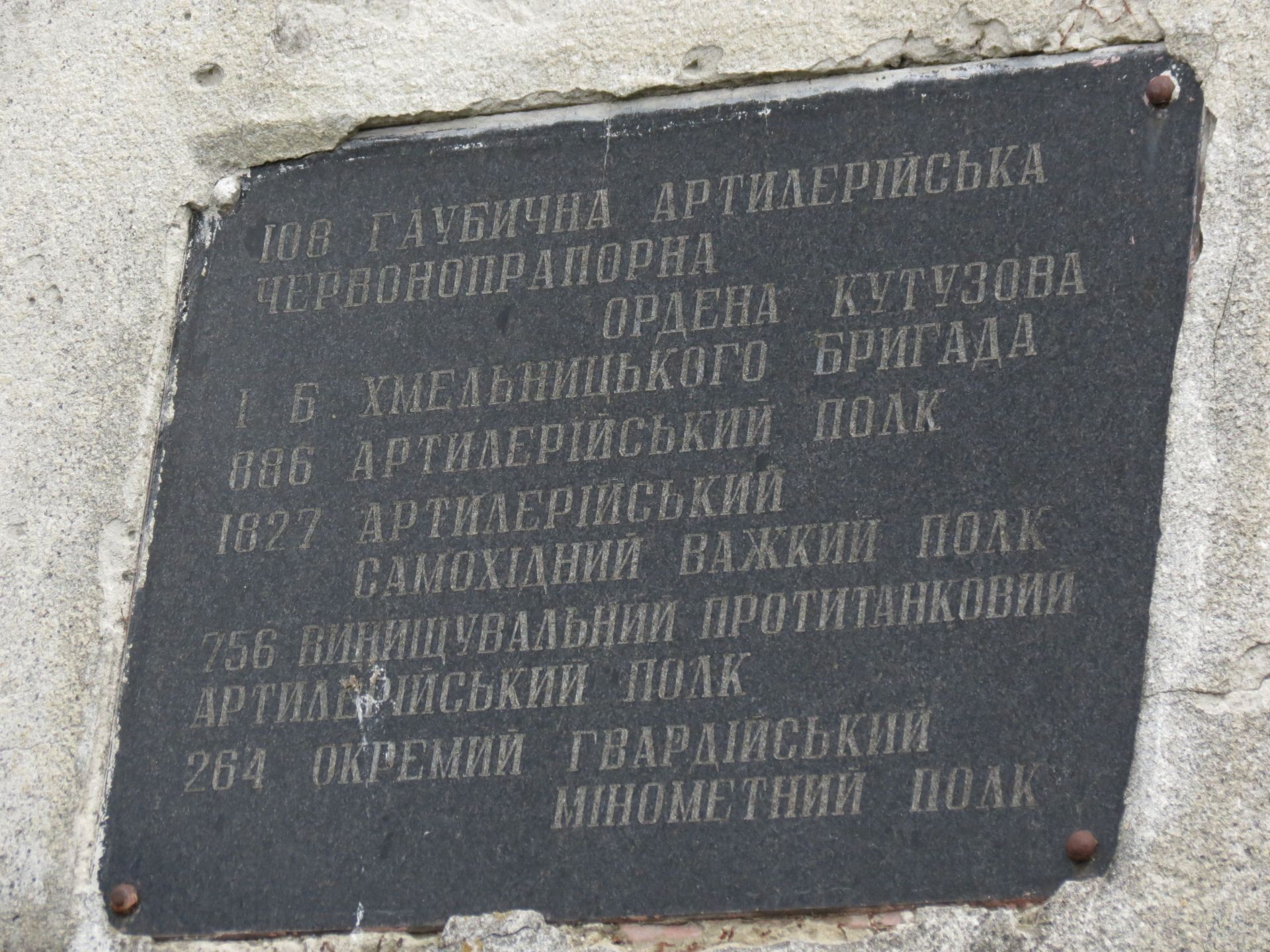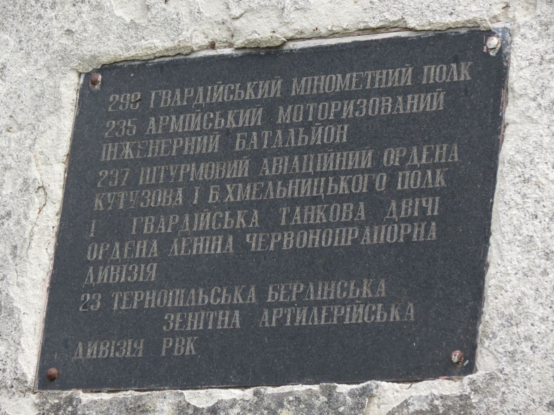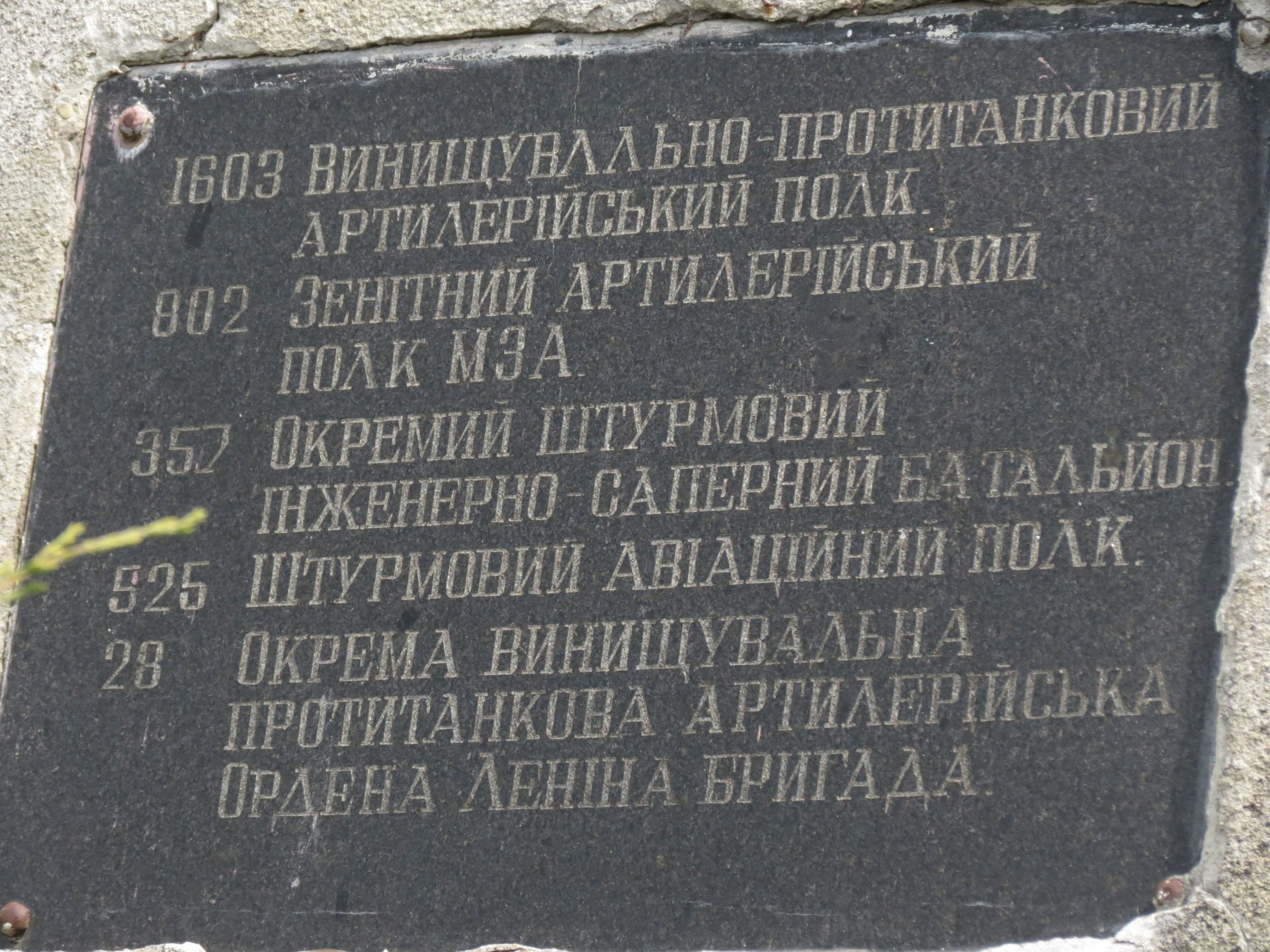 На меморіалі також номери та назви бригад, які брали участь у битві за місто.