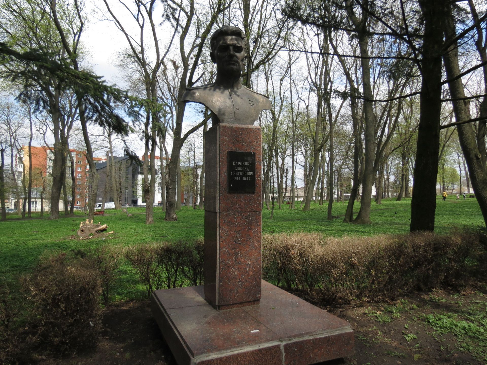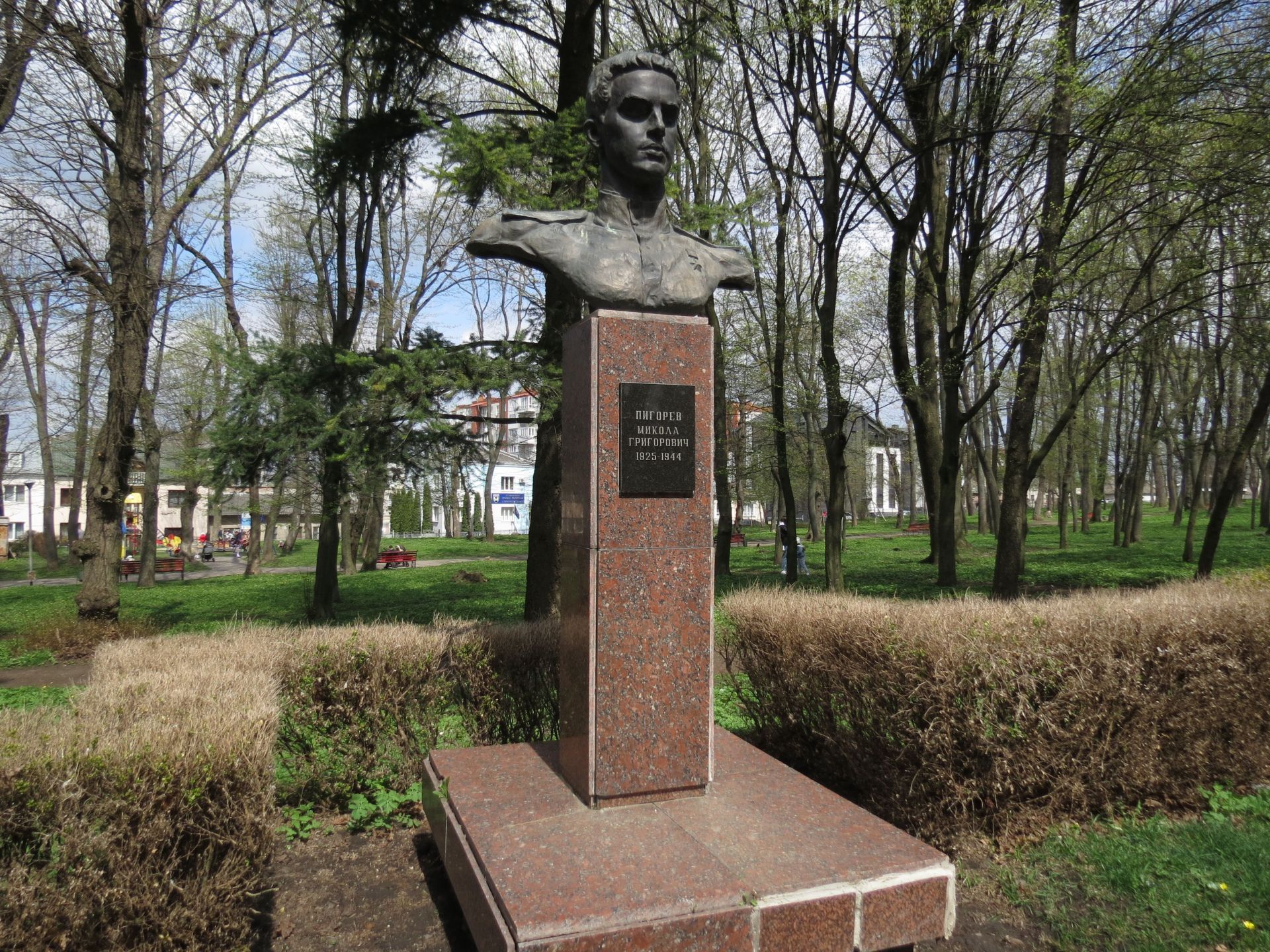 На головній алеї парку встановлено шість погрудь загиблим радянським солдатам: А. П. Живова, М. Г. Пігорєва, В. А. Чалдаєва, Г. В. Танцорова, М. Г. Карпенка, О. П. Максимовича.