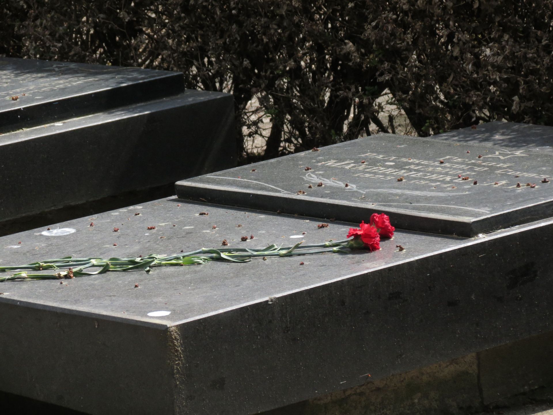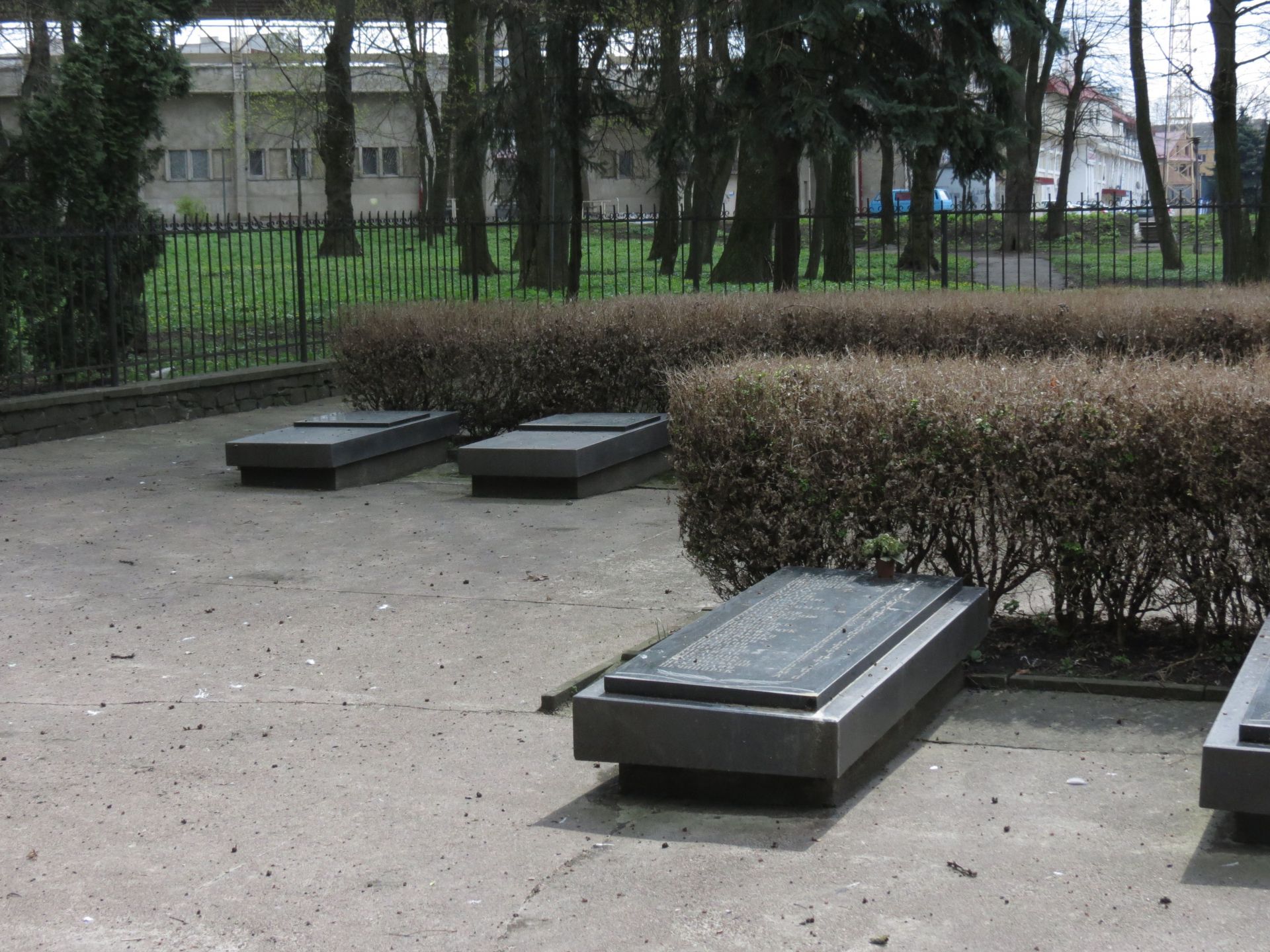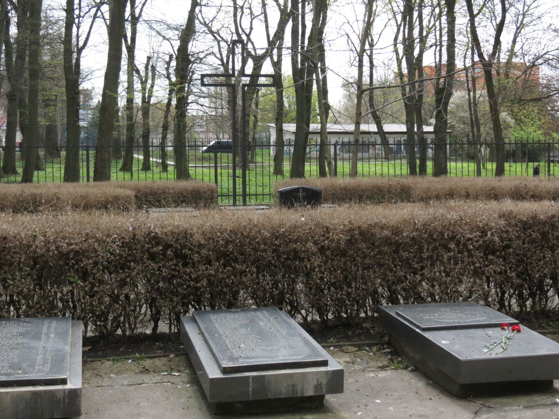 Навколо – огорожа, зачинена на замки. Саме кладовище тримають в чистоті. На одній з плит лежали квіти.