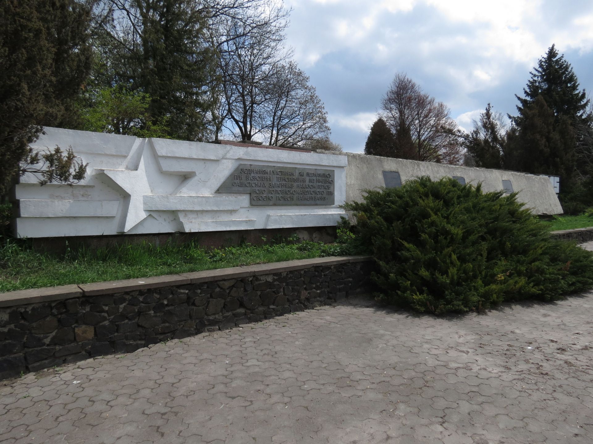 Біля входу в парк є меморіал з написом: «З’єднанням і частинам, які відзначилися при визволенні Тернопільщини від німецько–фашистських загарбників наказом верховного головнокомандуючого присвоєно почесні найменування».