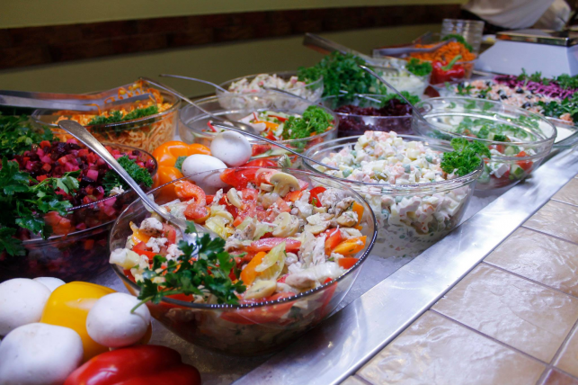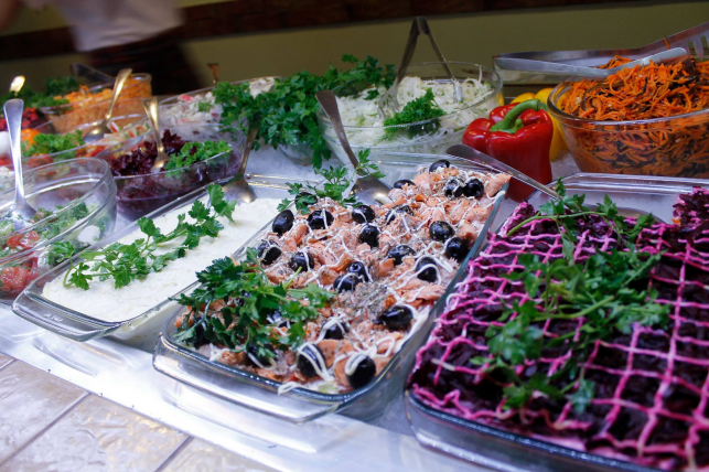 Серед салатів, наприклад, можна було скуштувати «Оселедець під шубою», «Олів’є», «Дністер», «Вінегрет», «Овочевий» та багато інших.