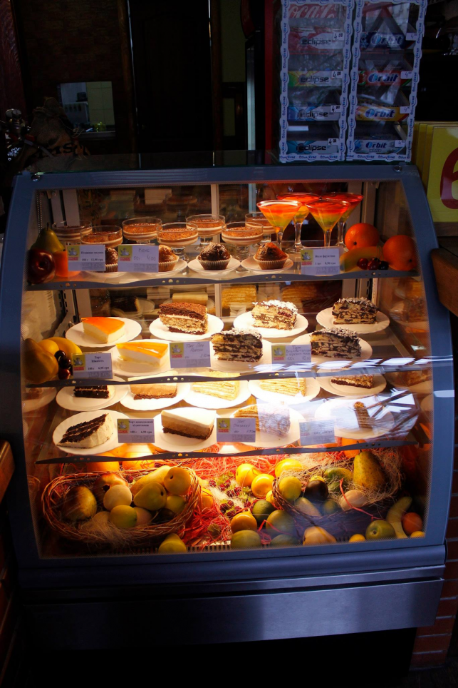 Порція «Пташиного молока» (150 г) коштувала 12,9 грн. Желе з фруктами з кількох шарів коштувало 8,9 грн, а кекс (50 г) – 4 грн.