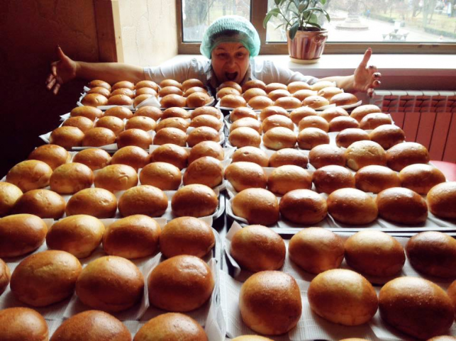У закладі можна було замовити банкет чи святкування. Також там готували їжу для кейтерингу. На світлині 2016 року пекарка показує частину виконаного замовлення. У ресторані замовили 500 пиріжків. Лише маленька частина помістилась у кадрі.