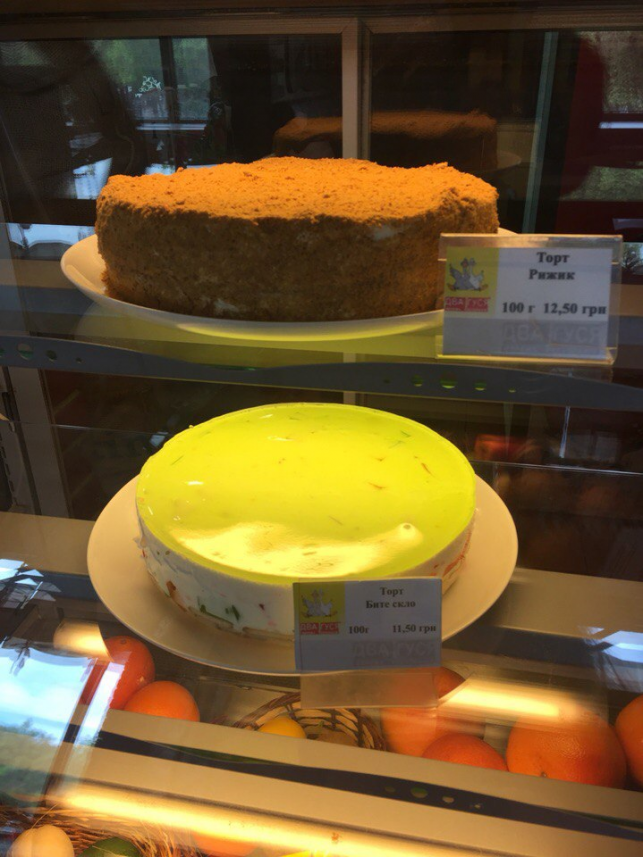 У квітні 2016, коли долар був по 26,21, торт «Рижик» коштував 12,5 грн за 100 грамів, а торт «Бите скло» - 11,5 грн за 100 грамів.