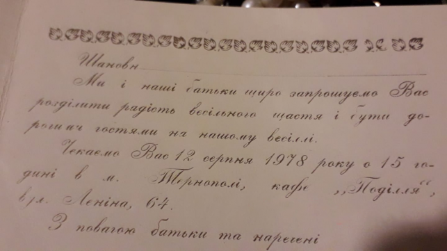 У кафе часто святкували весілля. На запрошенні можна побачити назву кафе: