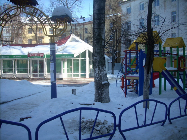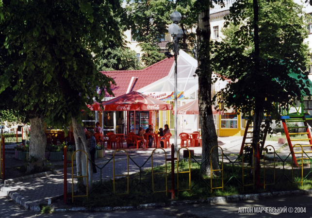 Біля кафе був дитячий майданчик з ігровим комплексом. Таких у місті було небагато. Схожий майданчик був у парку ім. Тараса Шевченка від Roshen.