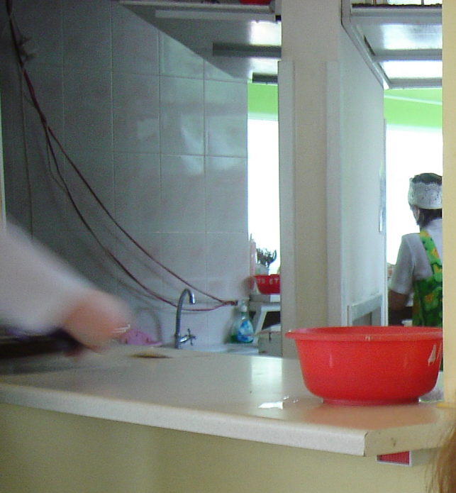 Видавати замовлення через спеціальне віконце, яке об’єднувало залу із кухнею. Через нього також повертали посуд.