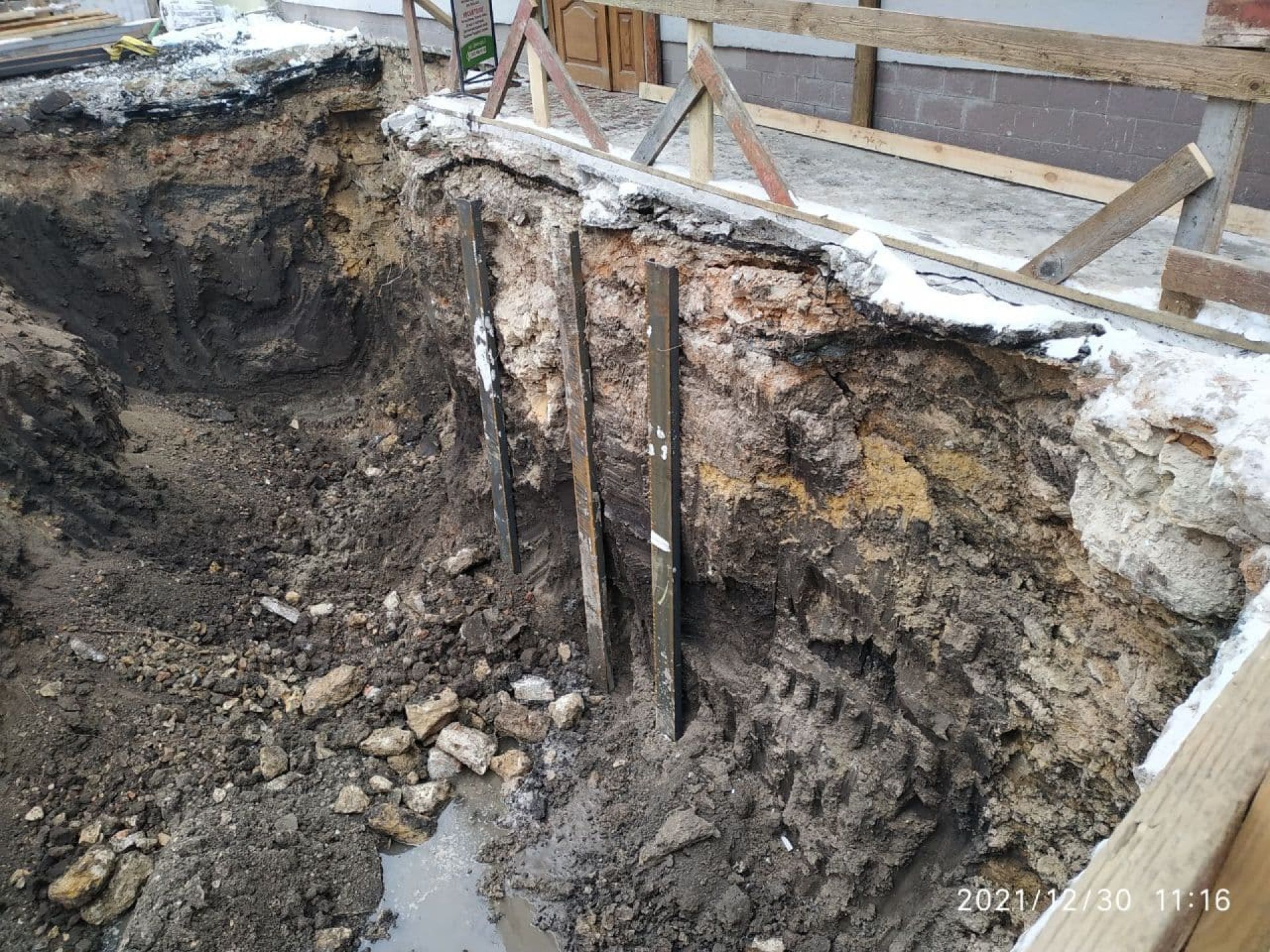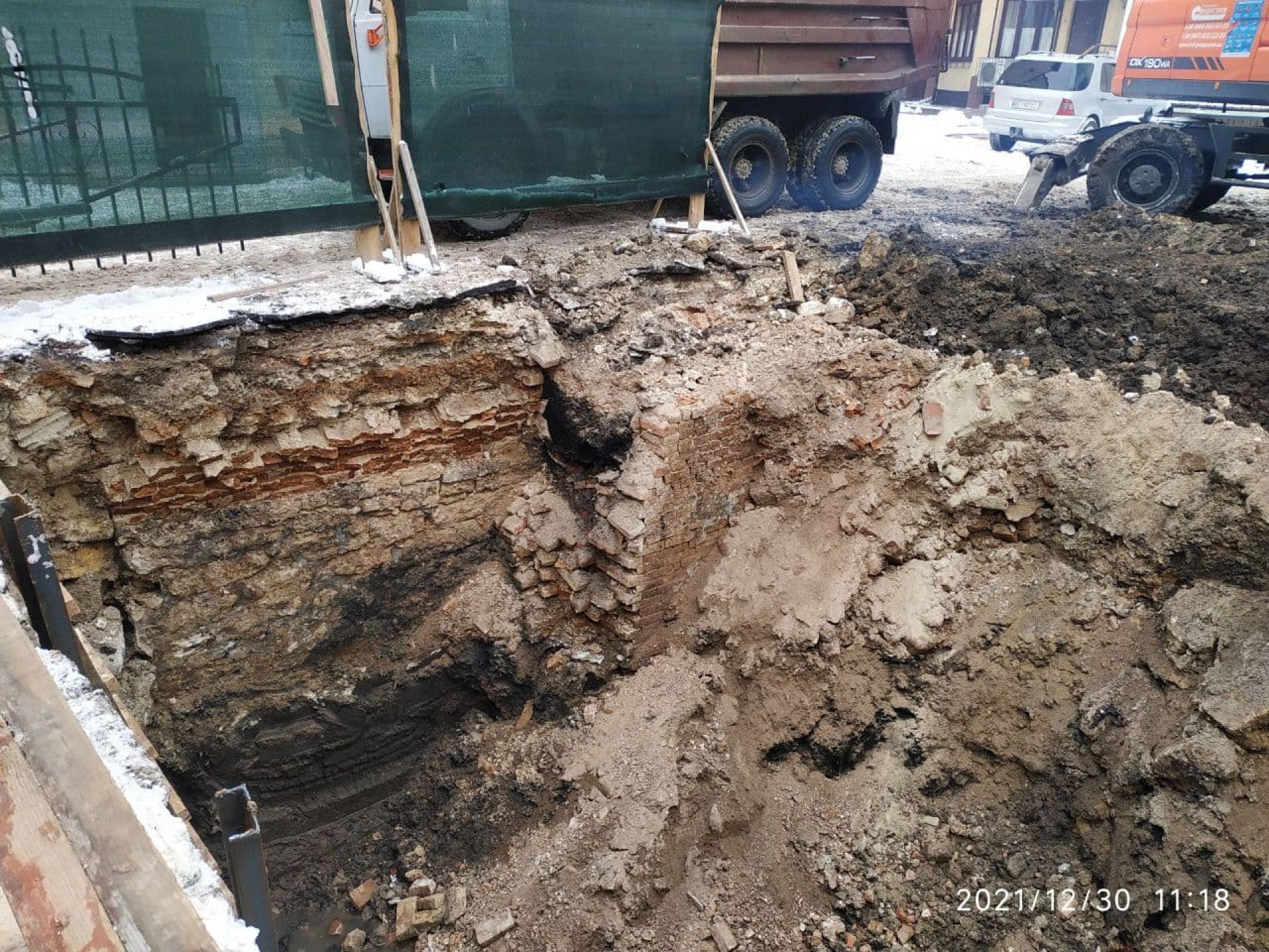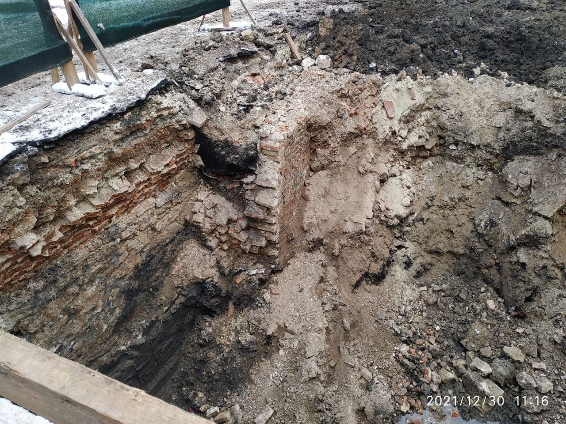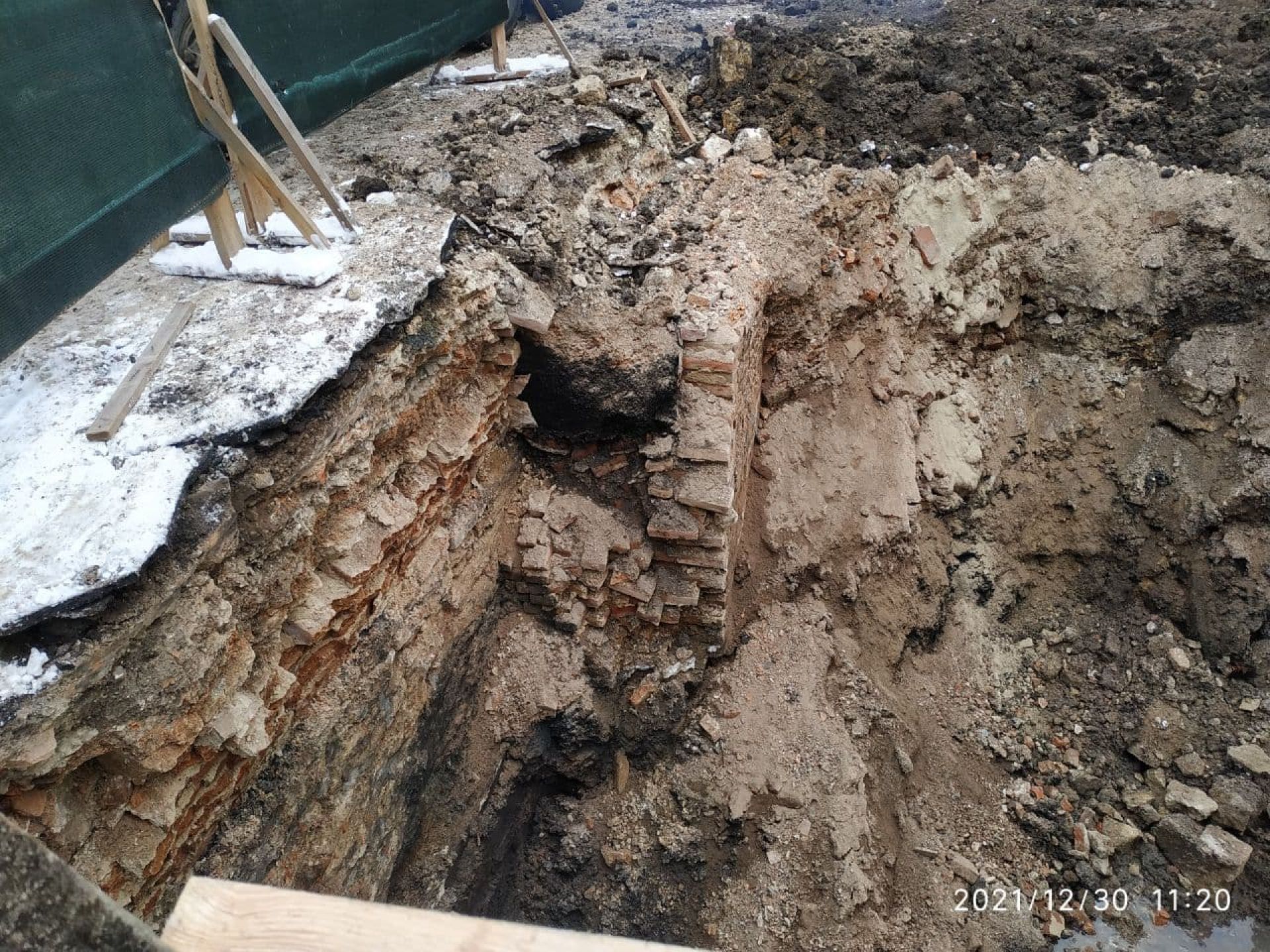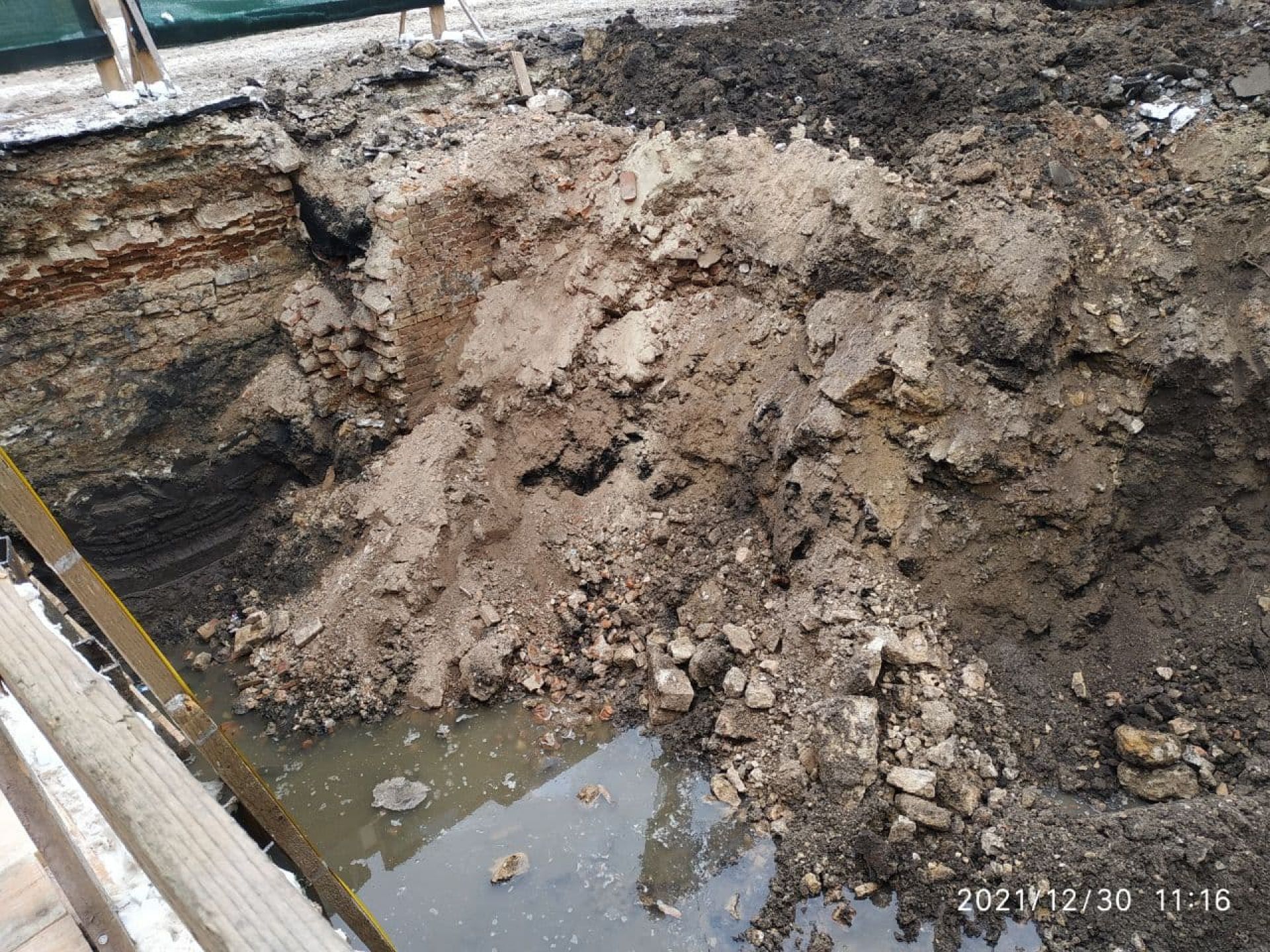 Частина старого будинку відкрилась під час робіт біля на вулиці Брюкнера у четвер, 30 грудня. Чітко помітно цегляну стіну.