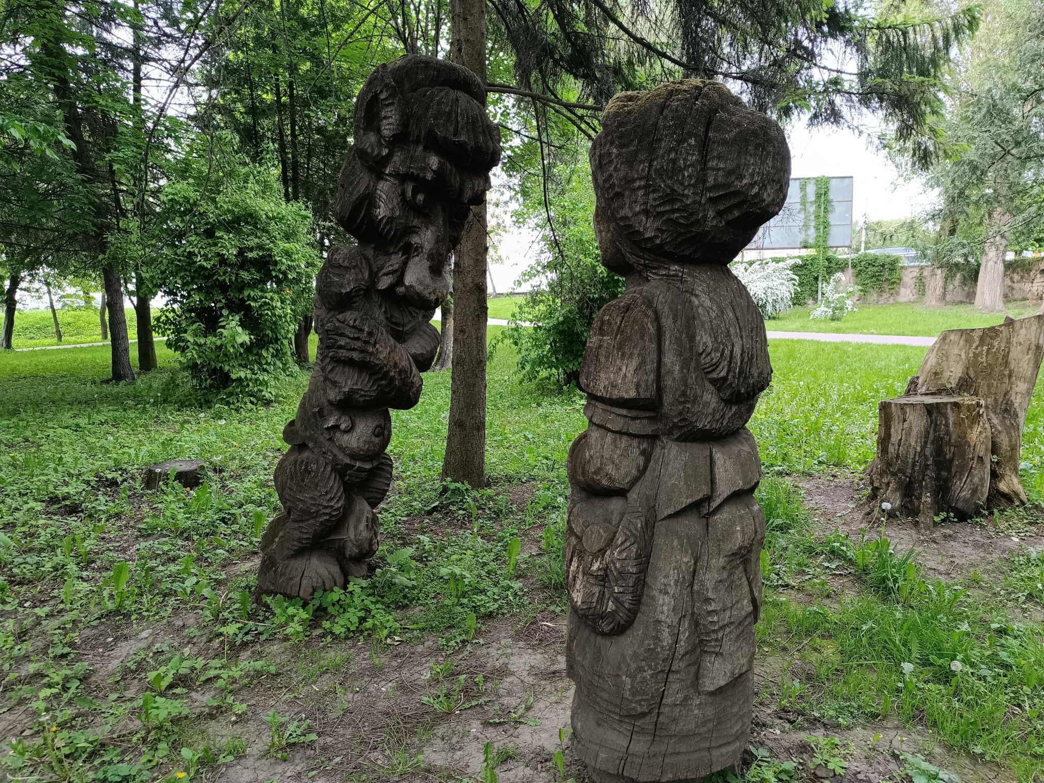 На вході до парку є Червона Шапочка та Вовк. Ці скульптури добре збереглися.