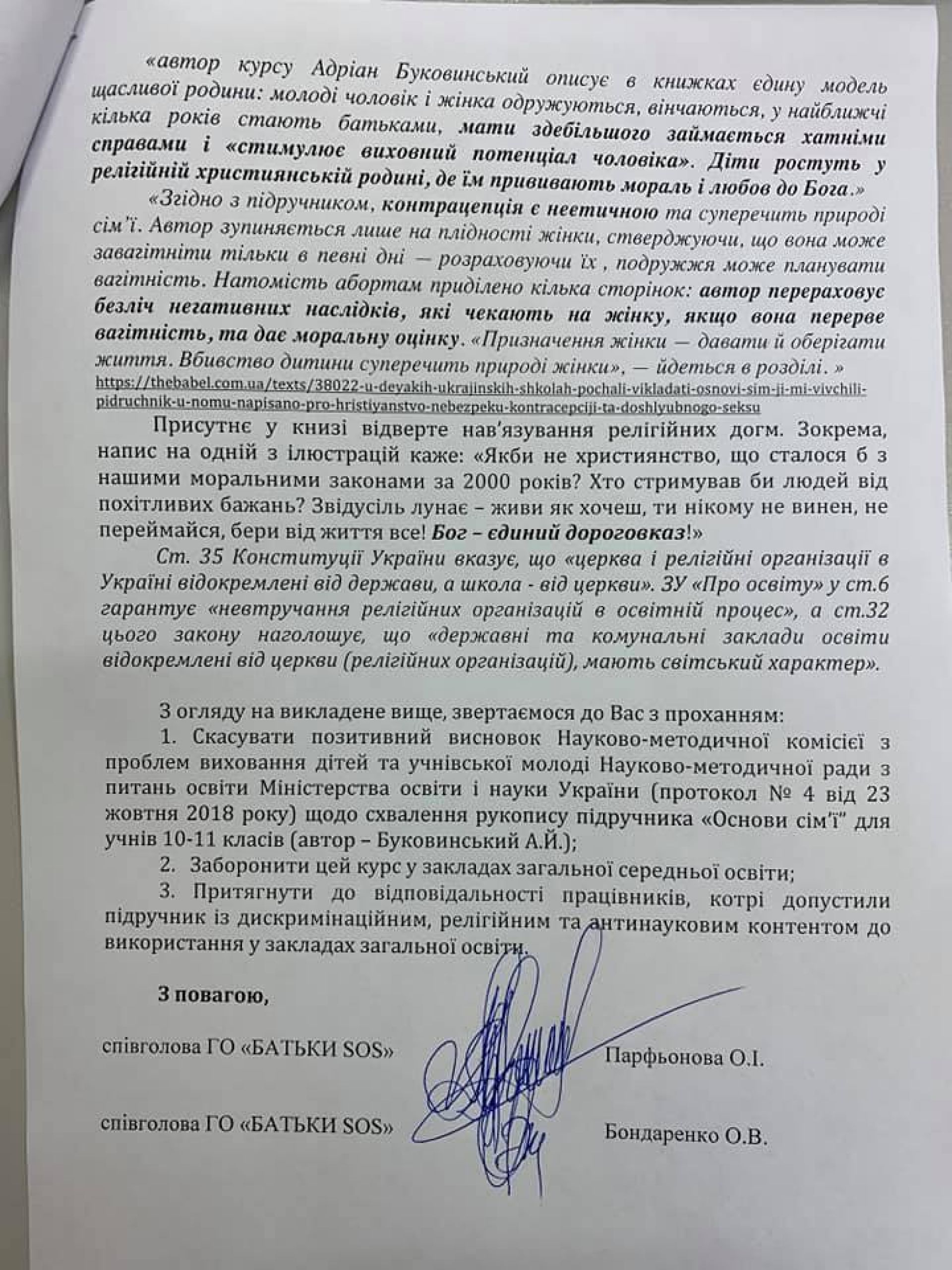 З огляду на вищесказане, батьки звернулись із проханням до Міністра освіти і науки України.