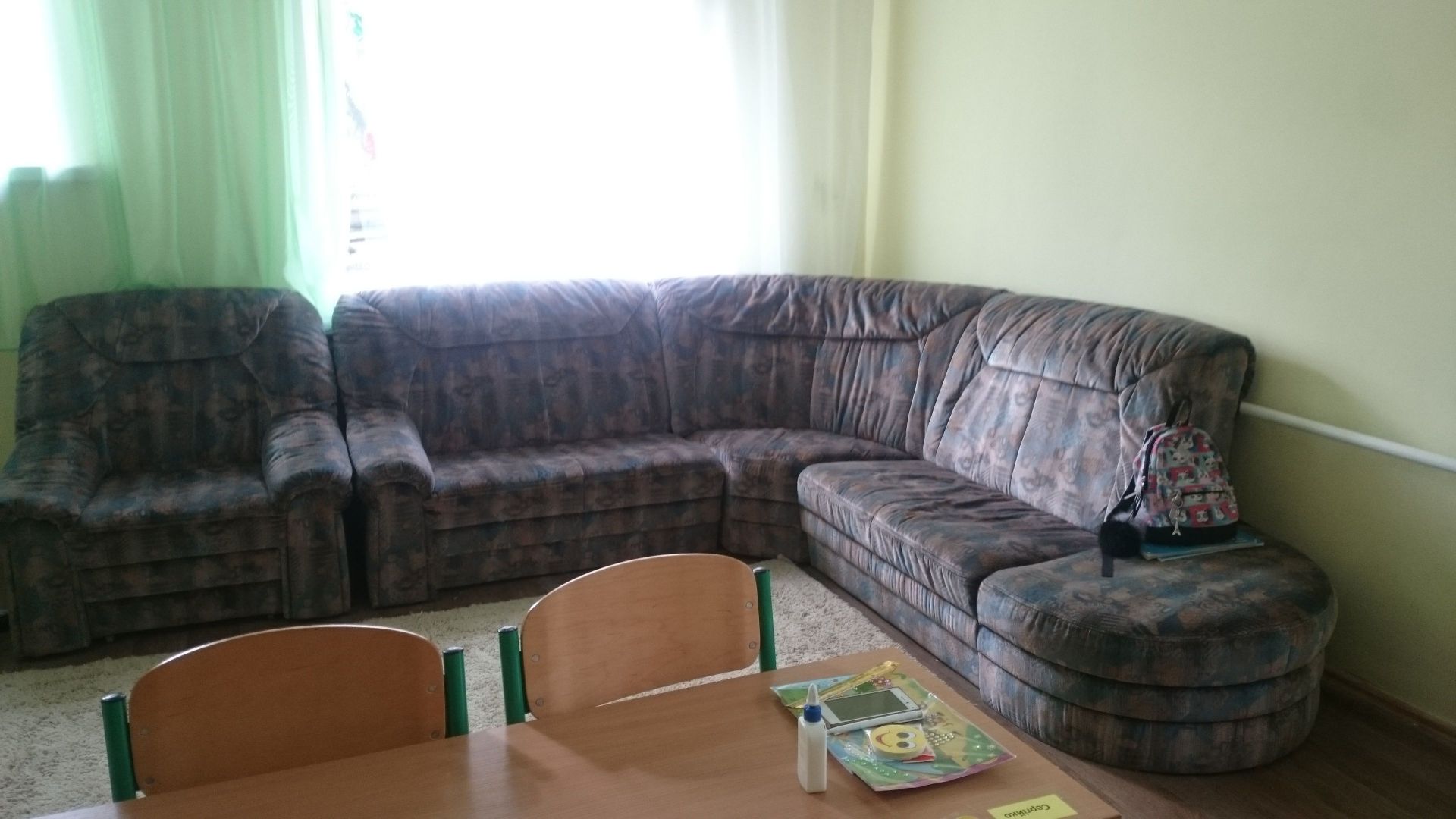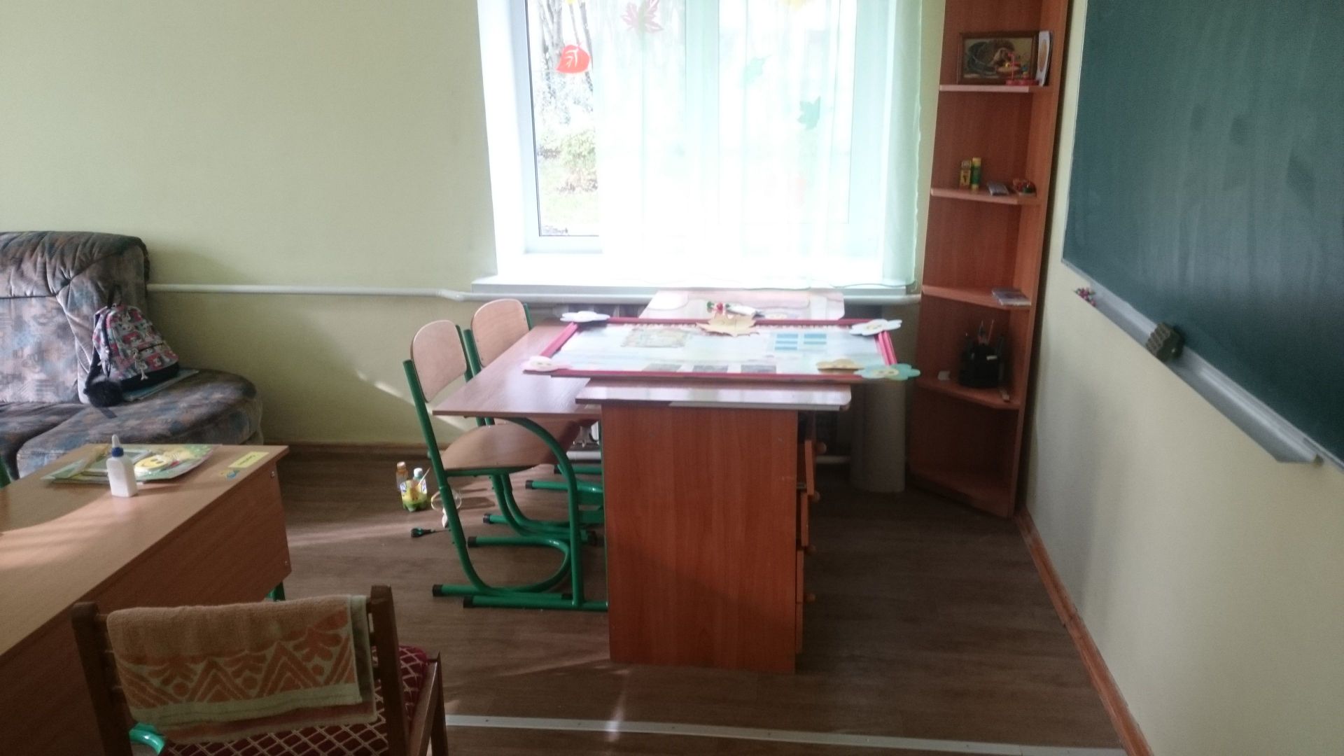 Невеличкі класні кімнати по-домашньому затишні. У кожній, окрім навчальної зони, є відпочинкова зона з килимком, диванчиком та розвиваючими іграми. Більшість класних кімнат обладнані телевізорами. Вражає оновлений актовий зал та виставка дитячих робіт у швейній майстерні та кабінеті бісероплетіння. Для учнів, що залишаються на ніч, є окремий блок із охайними спальнями, кімнатою відпочинку та кухнею. Умови тут максимально наближені до домашніх. У санвузлі зауважую пральну машину.