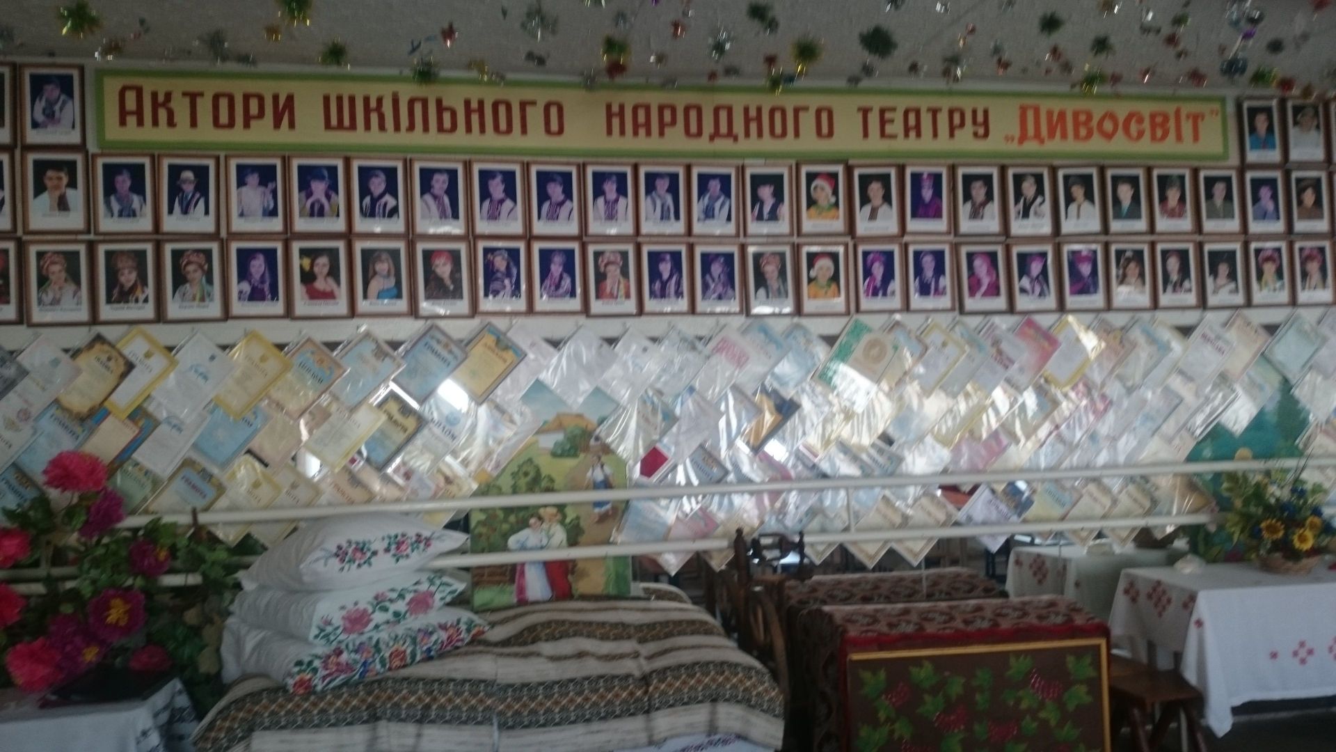 Театральна студія має окреме приміщення. На стінах — десятки фотографій нинішніх та колишніх учасників, фото з постановок. Довкола складені декорації, бутафорія та костюми шкільних акторів. У репертуарі «Дивосвіту» переважає українська класика, а також постановки за п’єсами відомих земляків Василя Фольварочного та Богдана Мельничука.
