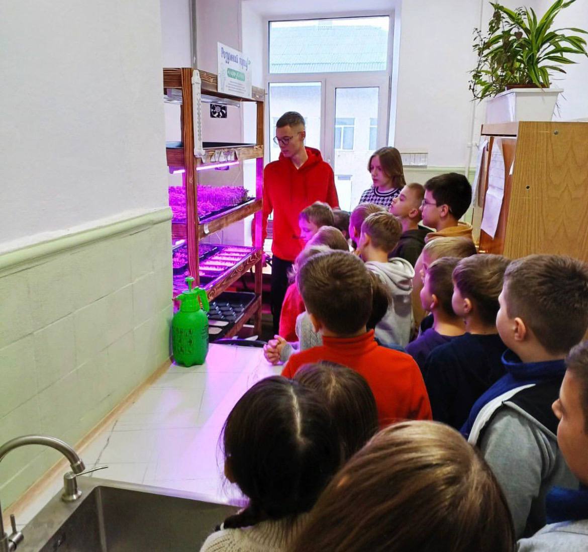 – Вирощують редиску, броколі, горох, руколу, соняшник та іншу зелень. Це маленькі рослини – до 4–5 сантиметрів. Використовуємо спеціальні сорти насіння, які закладають у ємності з підігрівом та автоматичним поливом. Учні самостійно спостерігають за процесом, дотримуються всіх етапів і стандартів. Це повністю їхня відповідальність, і ми бачимо, як діти розвиваються, навчаються та цікавляться справою, – розповідає директор школи №10 Андрій Газилишин.