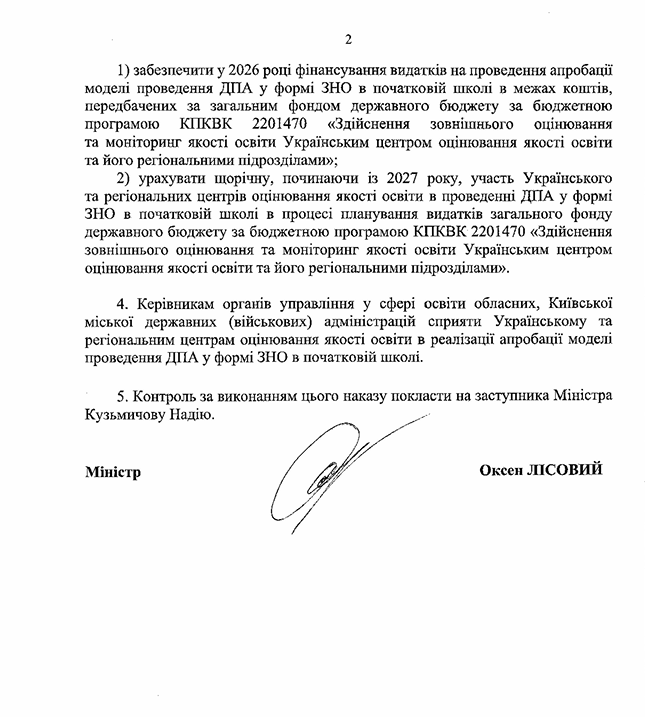 Упродовж лютого – квітня 2026 року створять та передадуть УЦОЯО спеціальну освітню платформу для проведення ДПА. Опісля навесні проведуть апробацію ДПА для 10 тисяч випускників початкової ланки освіти.