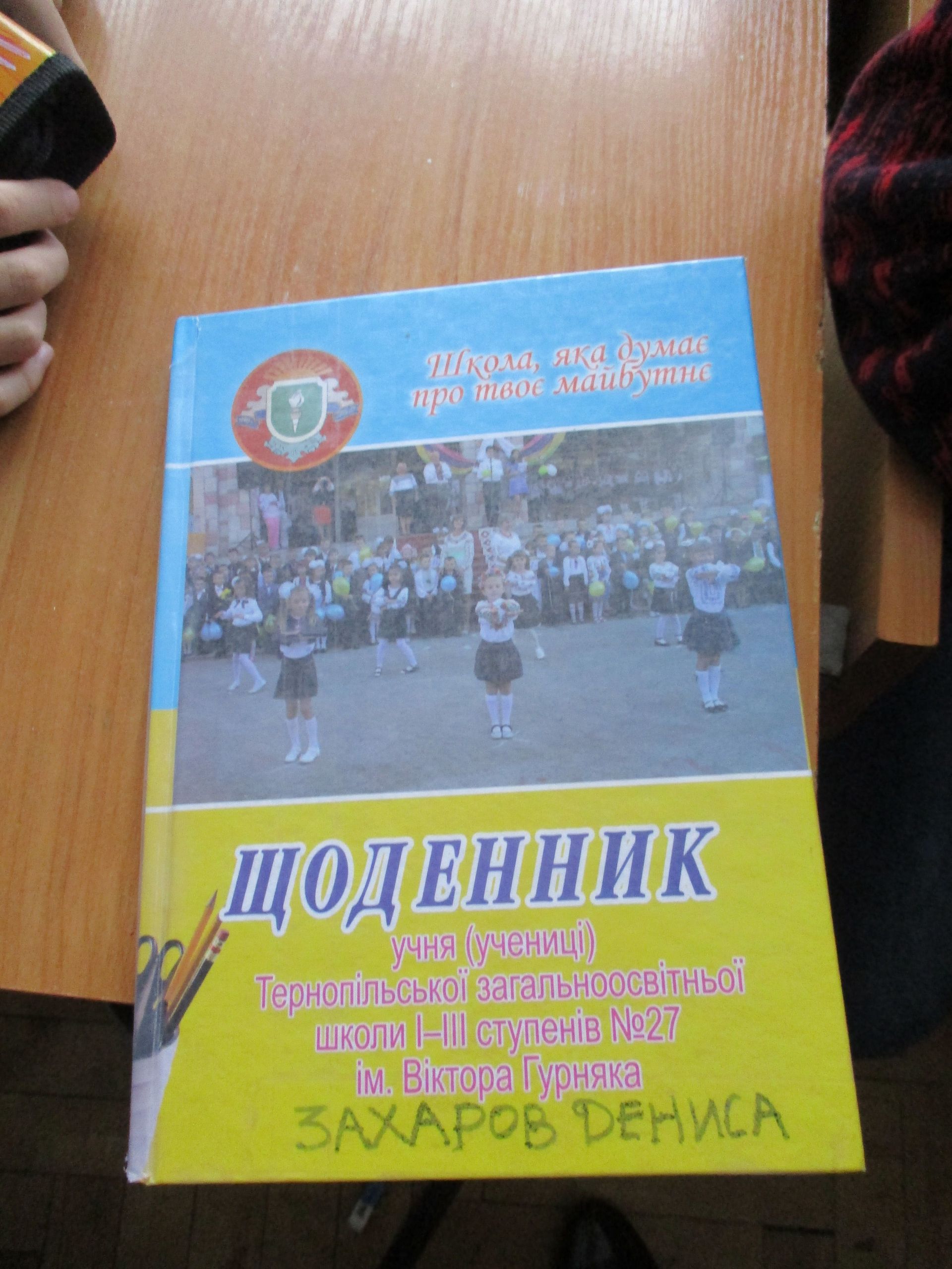 Парадні сходи Тернопільської загальноосвітньої школи І-ІІІ ступенів № 27 ім. Віктора Гурняка розмальовані синьо-жовтими квітами. По центру – червона доріжка з українським орнаментом на краях, перила – в тонах українського прапора. На фасаді – меморіальна дошка загиблому випускнику Віктору Гурняку. На ній – усміхнений герой на білому фоні.