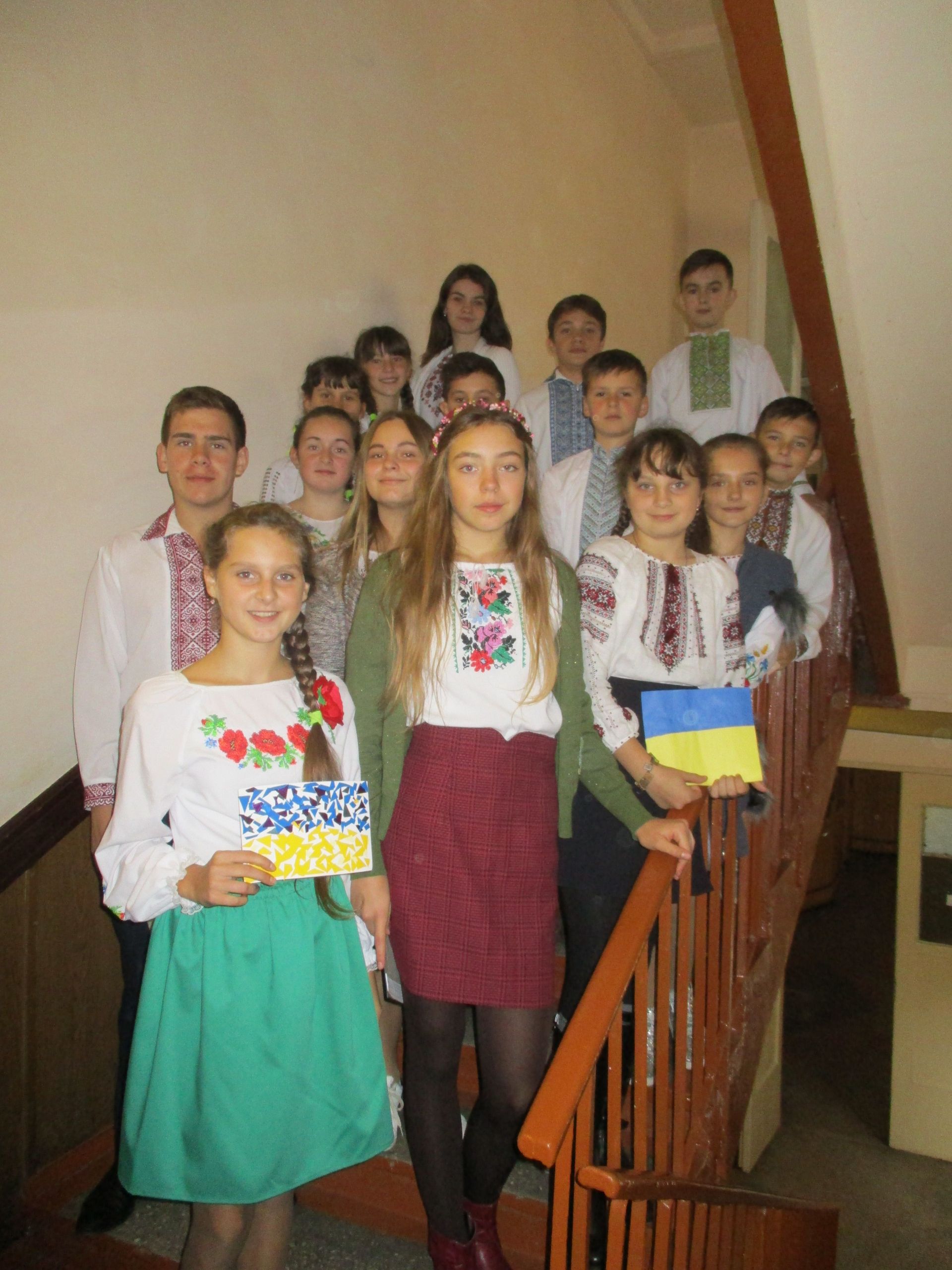 Традиційно робочий тиждень починається Державним Гімном, який виконує черговий клас у вишиванках.