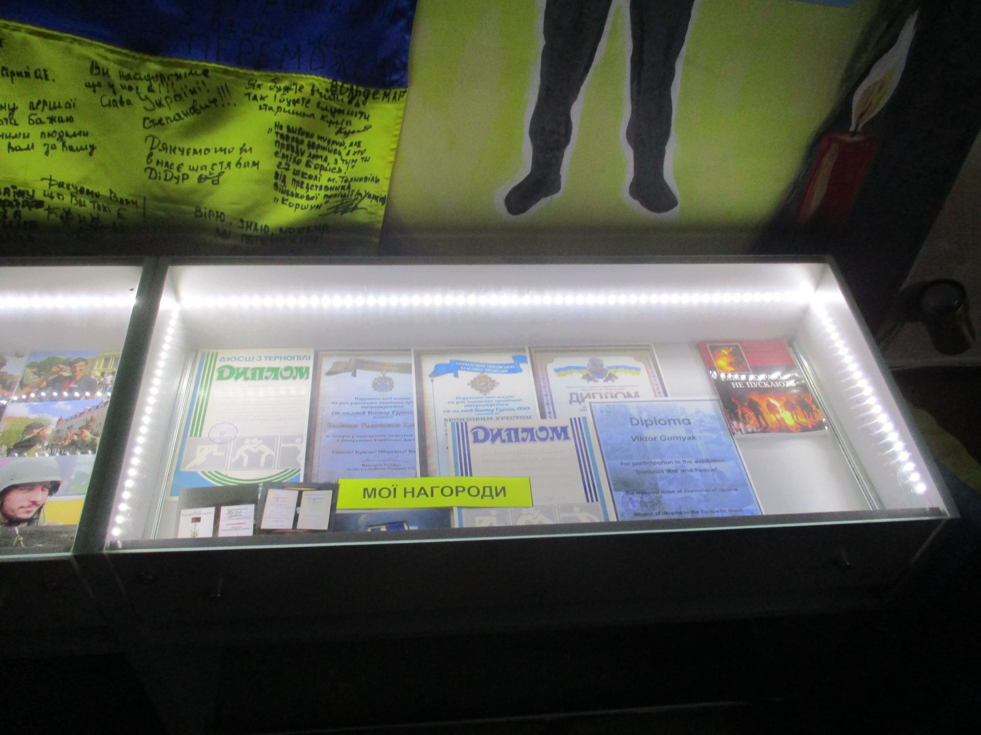 – Ми одна з перших шкіл, де зробили куточок Небесної Сотні, – каже заступник директора з виховної роботи Світлана Матлах. – Три роки тому створили куточок пам’яті Віктора Гурняка та міні-музей. Наразі беремо участь у проекті «Непоборні», присвяченому 75-річчю УПА, представляючи світлини невідомих могил. Ще один проект, до якого залучені наші учні – «Квіти матерям загиблих». Також ми серед учасників проекту «Печери», в яких переховувалися повстанці.