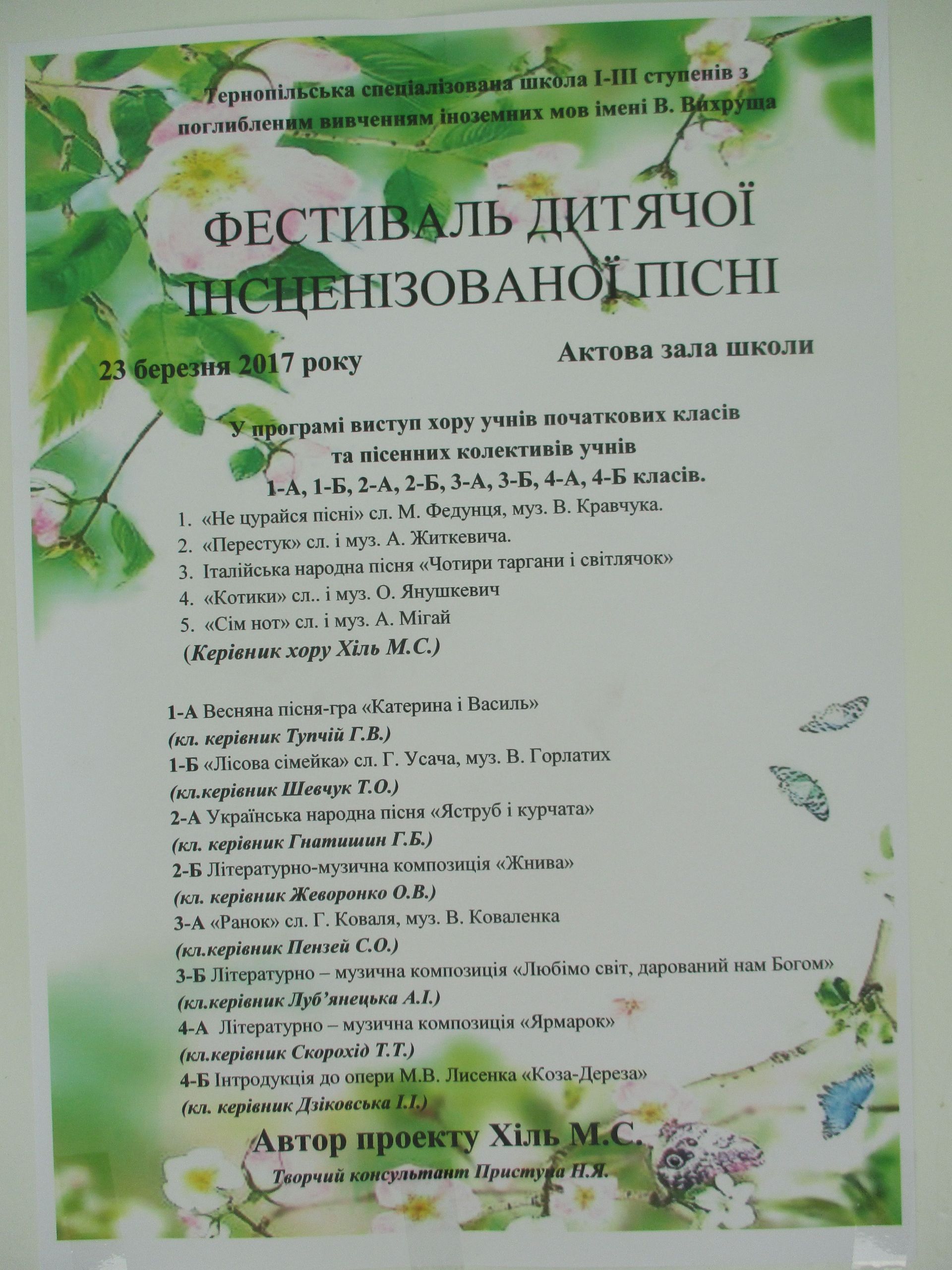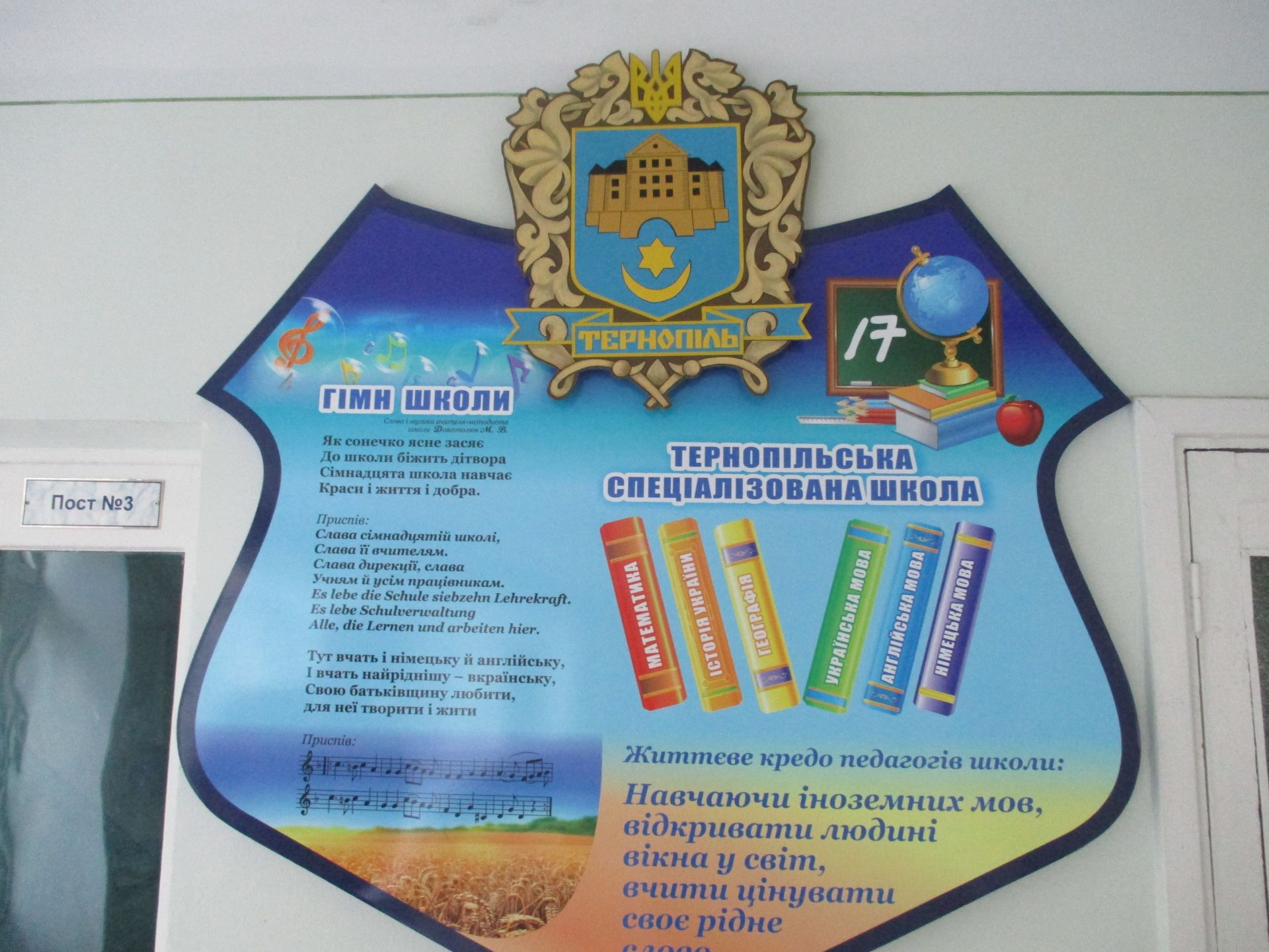 Карта України, намальована на асфальті перед центральним входом, ліжка-трансормери у спальні для першокласників, вивчення німецької мови з першого класу, фестиваль дитячої інсценізованої пісні, конкурс читання поезії Володимира Вихруща та проект «Батьківська педагогіка» – особливості Тернопільської спеціалізованої школи № 17 ім. Володимира Вихруща з поглибленим вивченням іноземних мов.