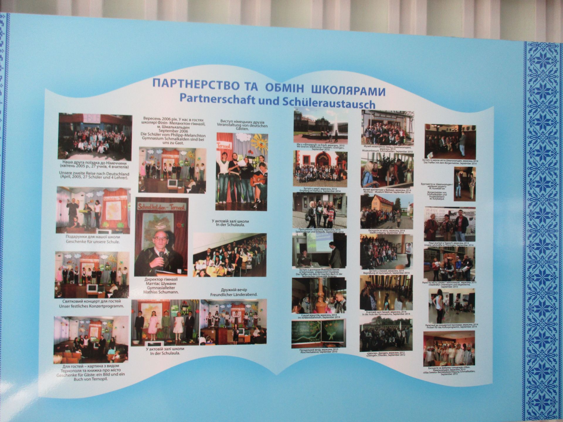 - Разом з галицькими німцями, які приїжджали до нас, ми створили спільний проект, – розповідає директор школи № 17. – Вони запропонували нам співпрацю з німецькою гімназією. Ми погодились, поїхали в м. Шмалькальден і заключили з місцевою гімназією угоду про співпрацю. Відтоді одного року їдемо до них на 10 днів, а наступного року вони приїжджають до нас. Наші діти проживають в їхніх сім’ях, де поглиблено вивчають мову, культуру, звичаї, традиції, ходять до них на уроки. Через рік німецькі школярі гостюють у нас. Потім ділимося враженнями. Такий обмін сприяє не лише вивченню мови, а й розширює кругозір наших учнів.