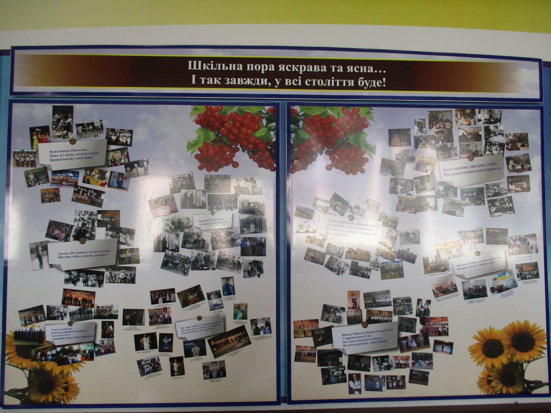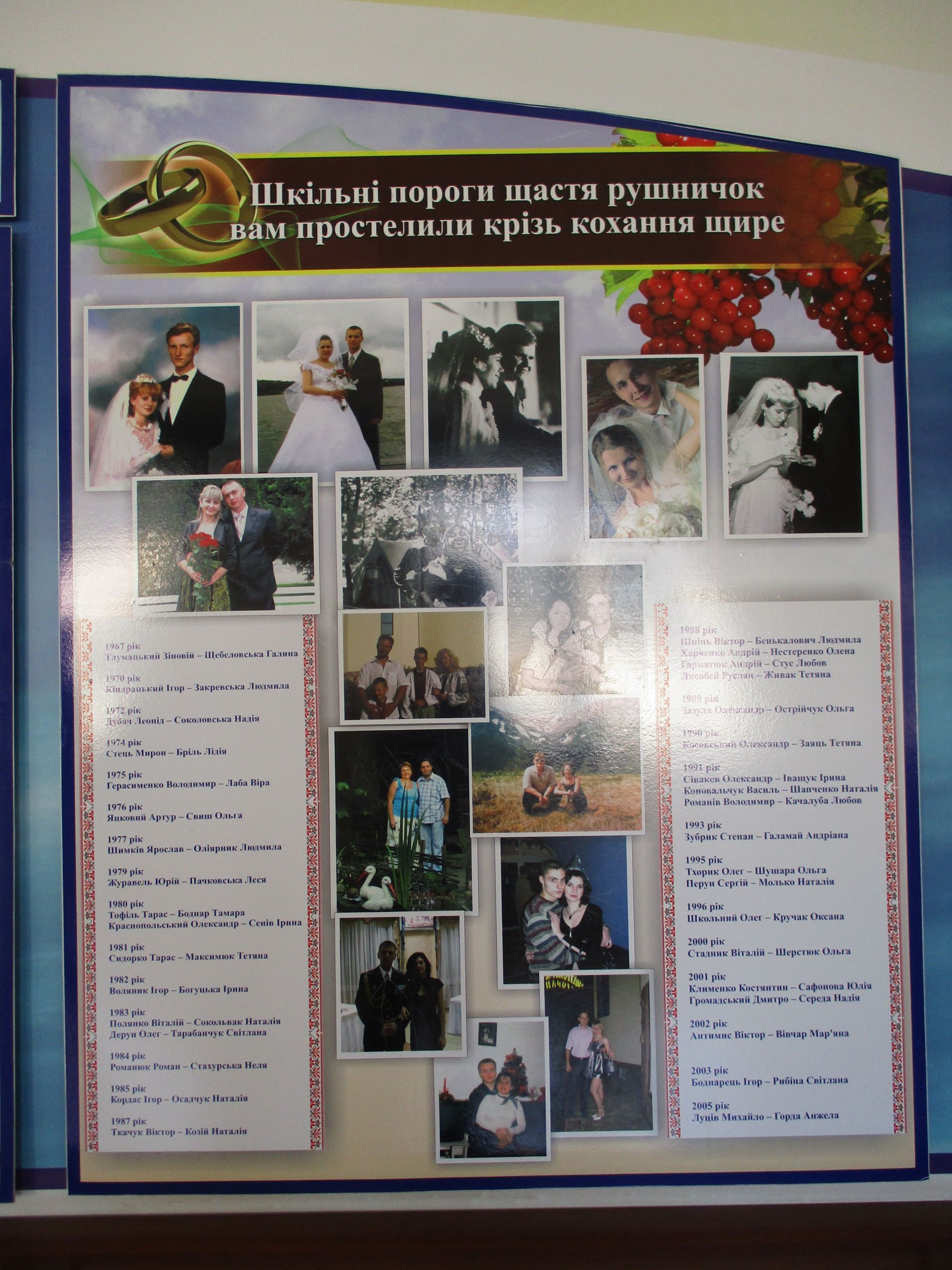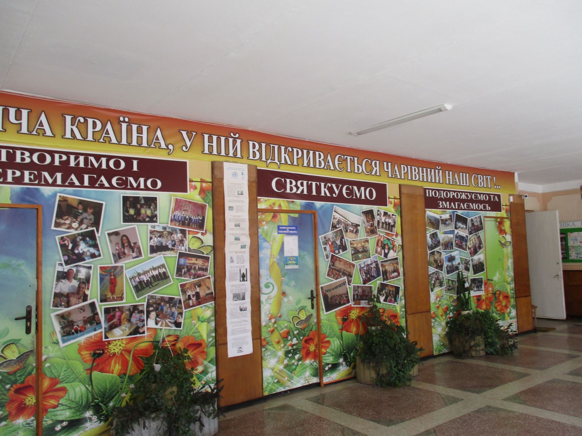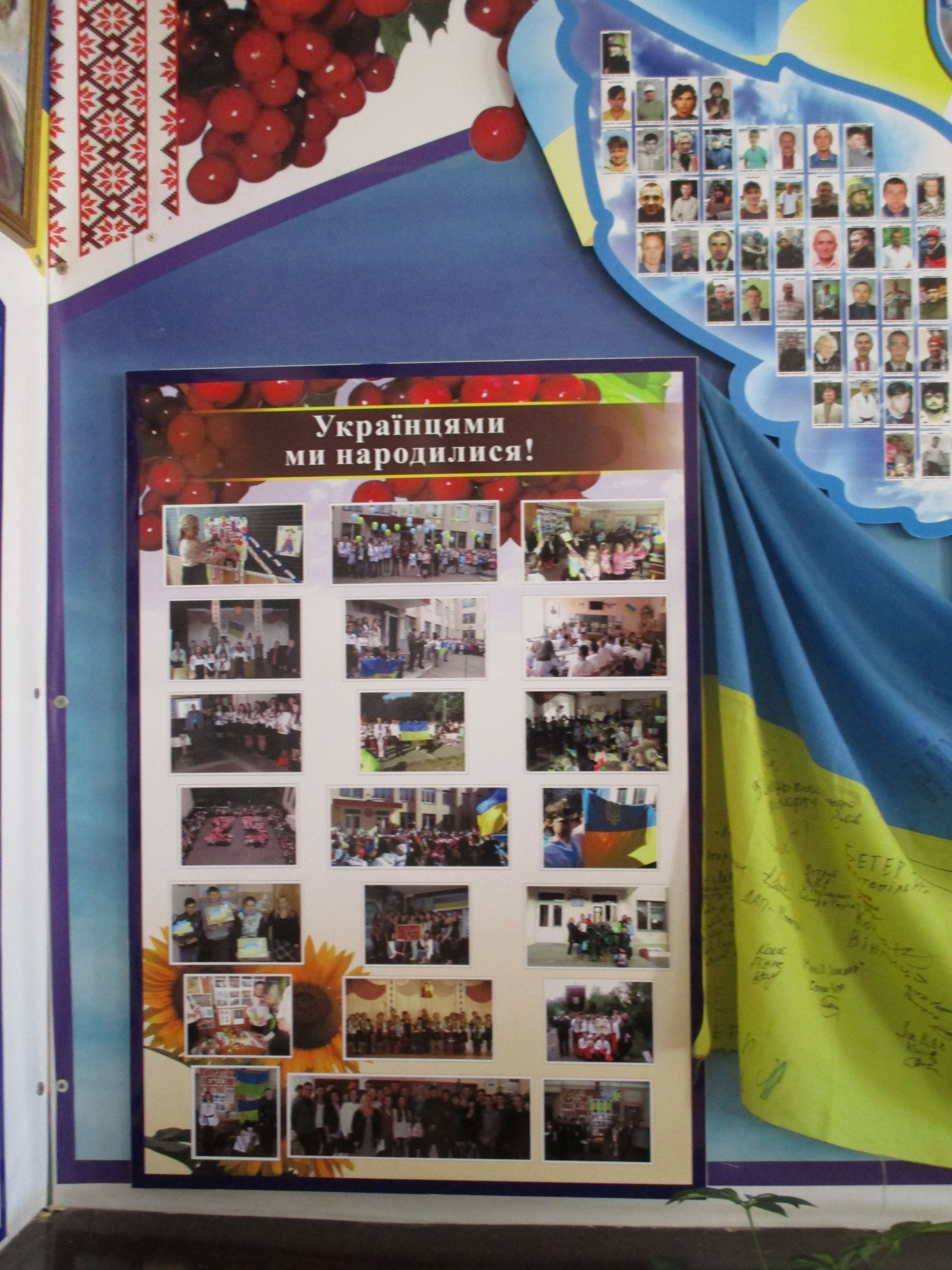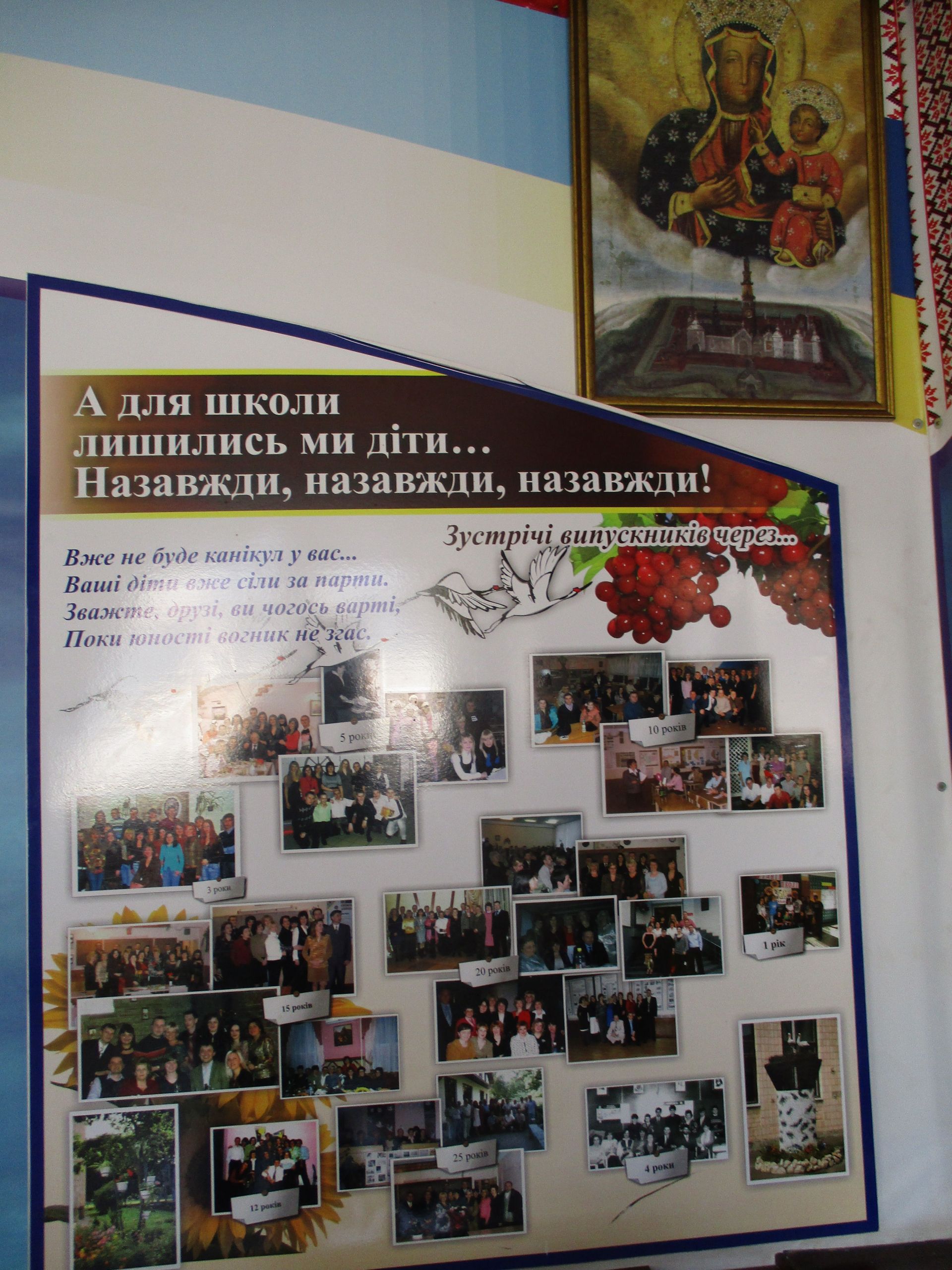 Патріотичні заходи в навчальному закладі демонструють світлини на стенді «Українцями ми народилися». Стенд «Шкільні пороги щастя рушничок вам простелили крізь кохання щире» –унікальний, бо на ньому інформація про сімейні пари, які створили випускники-однокласники.