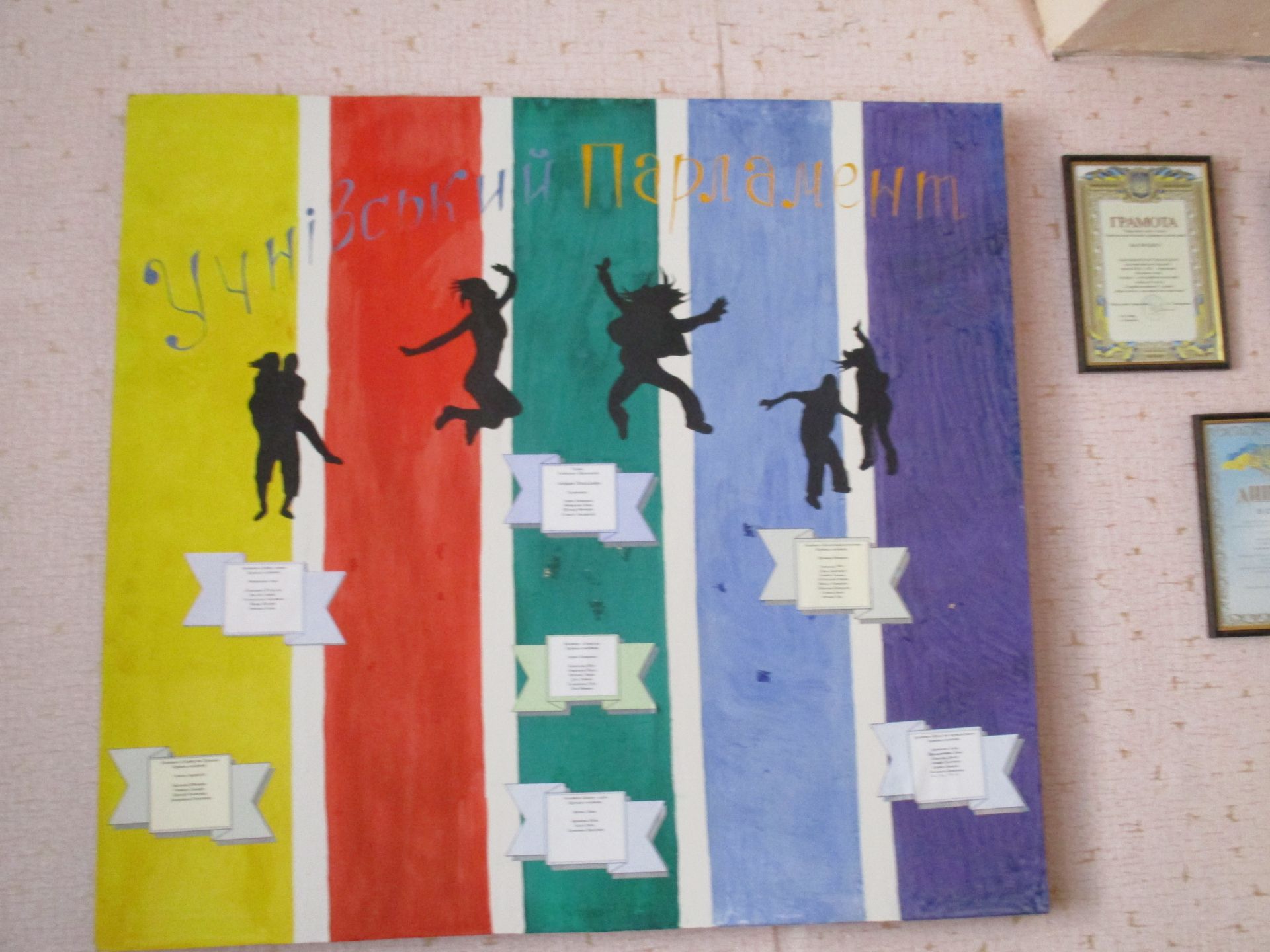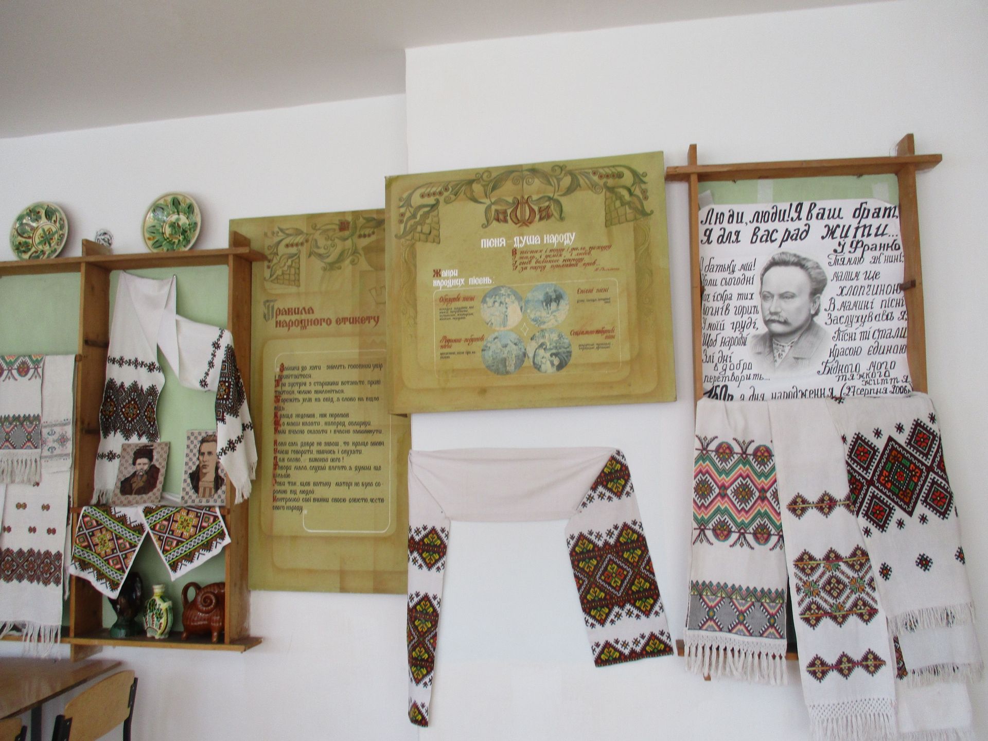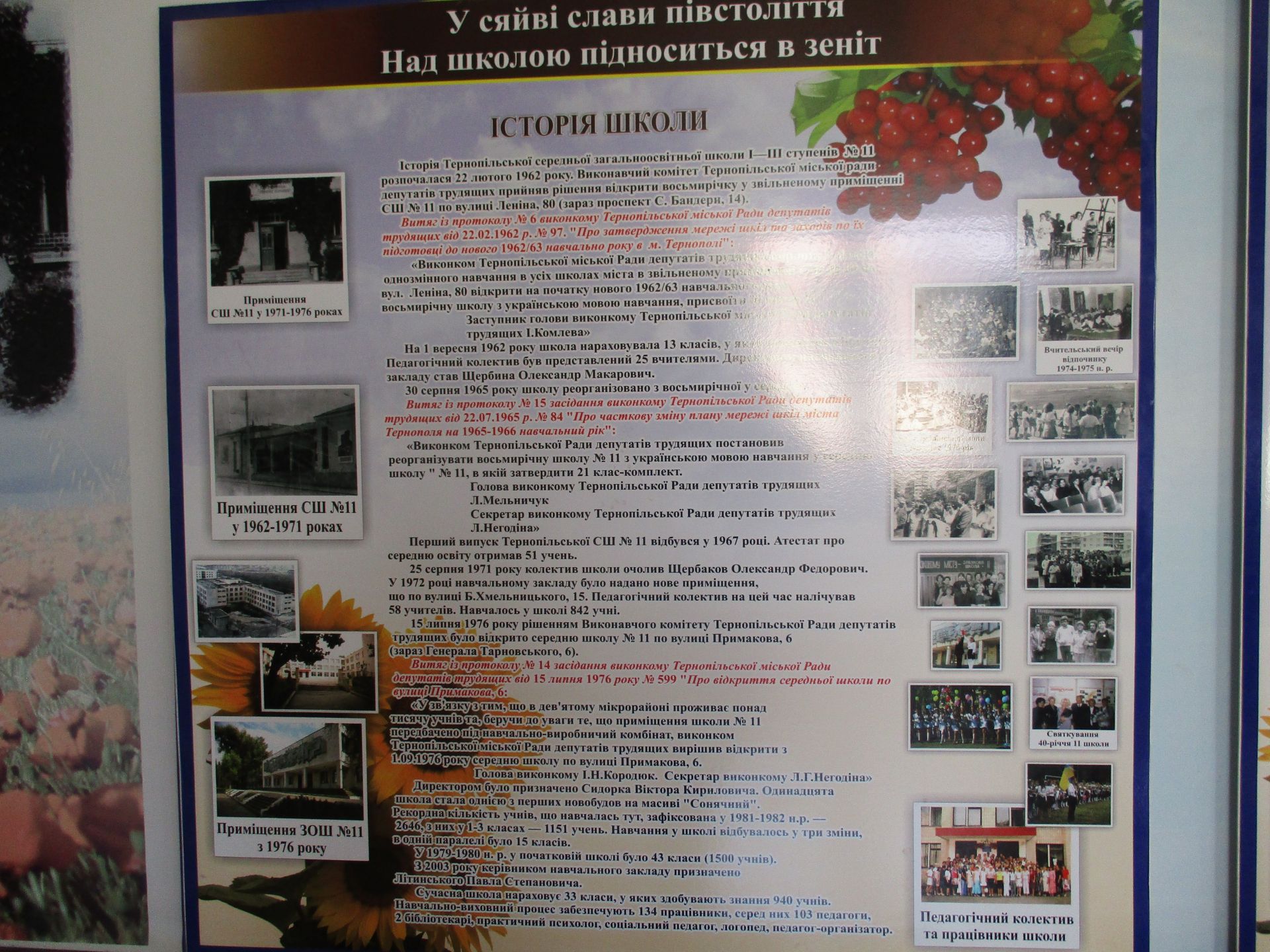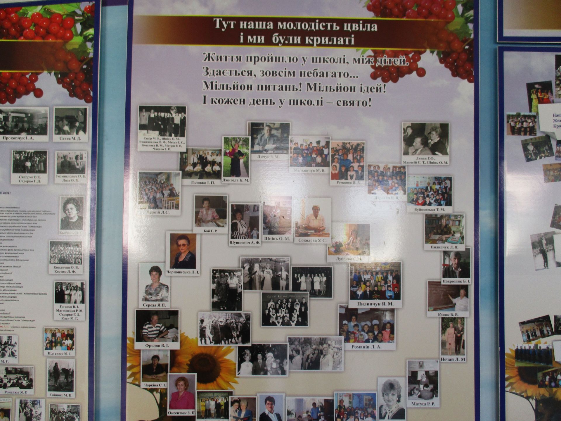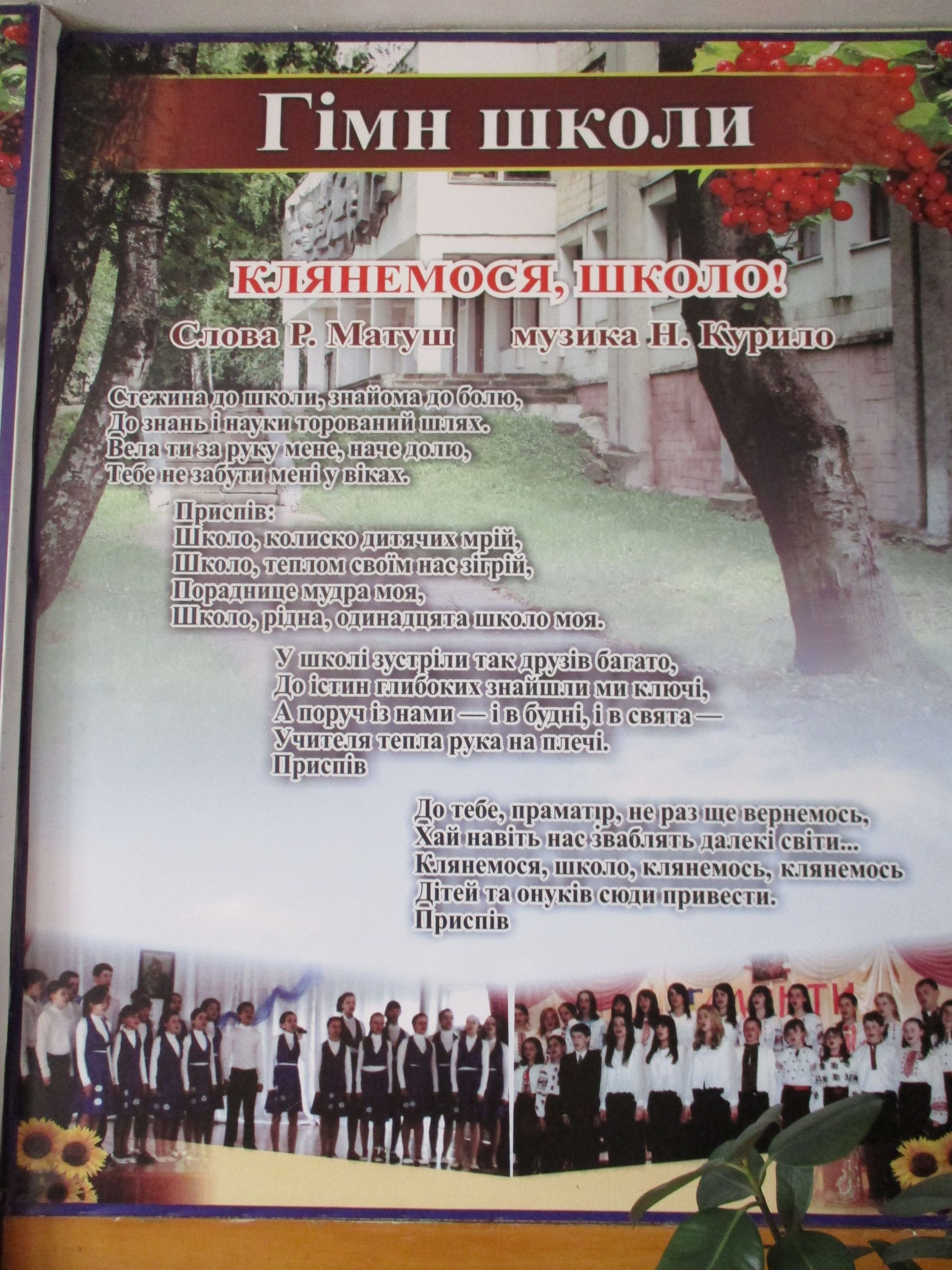 Патріотичні заходи в навчальному закладі демонструють світлини на стенді «Українцями ми народилися». Стенд «Шкільні пороги щастя рушничок вам простелили крізь кохання щире» –унікальний, бо на ньому інформація про сімейні пари, які створили випускники-однокласники.