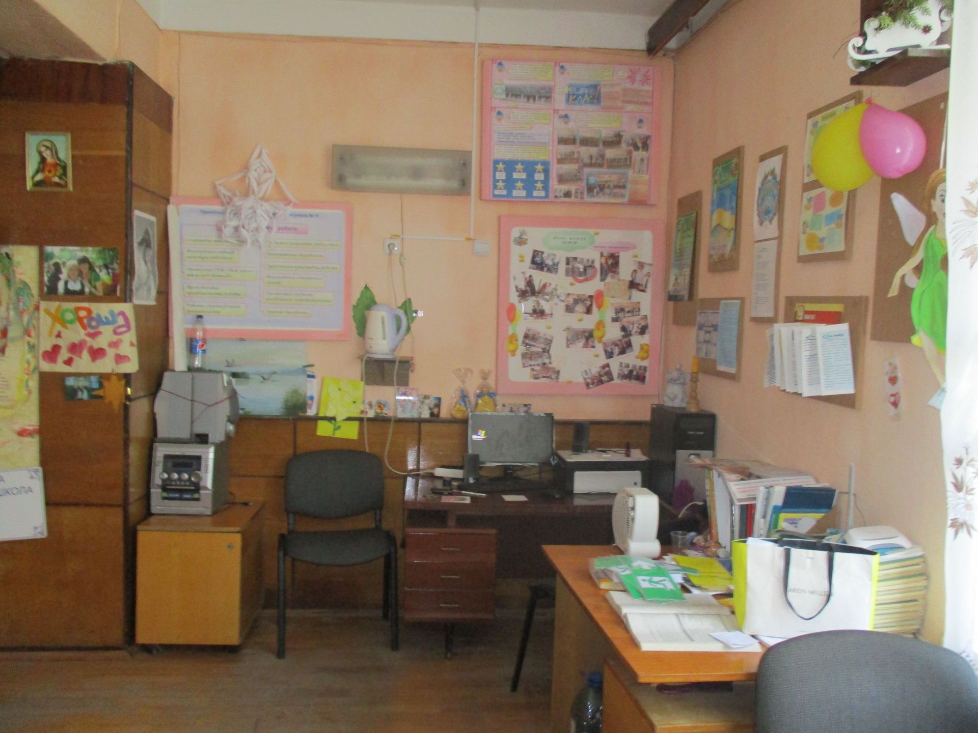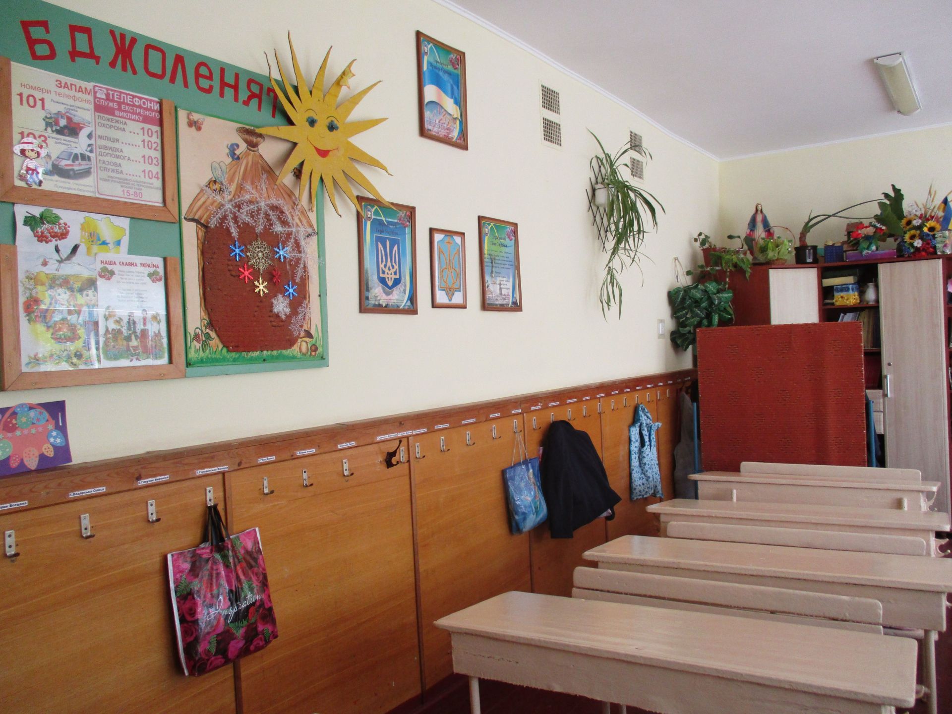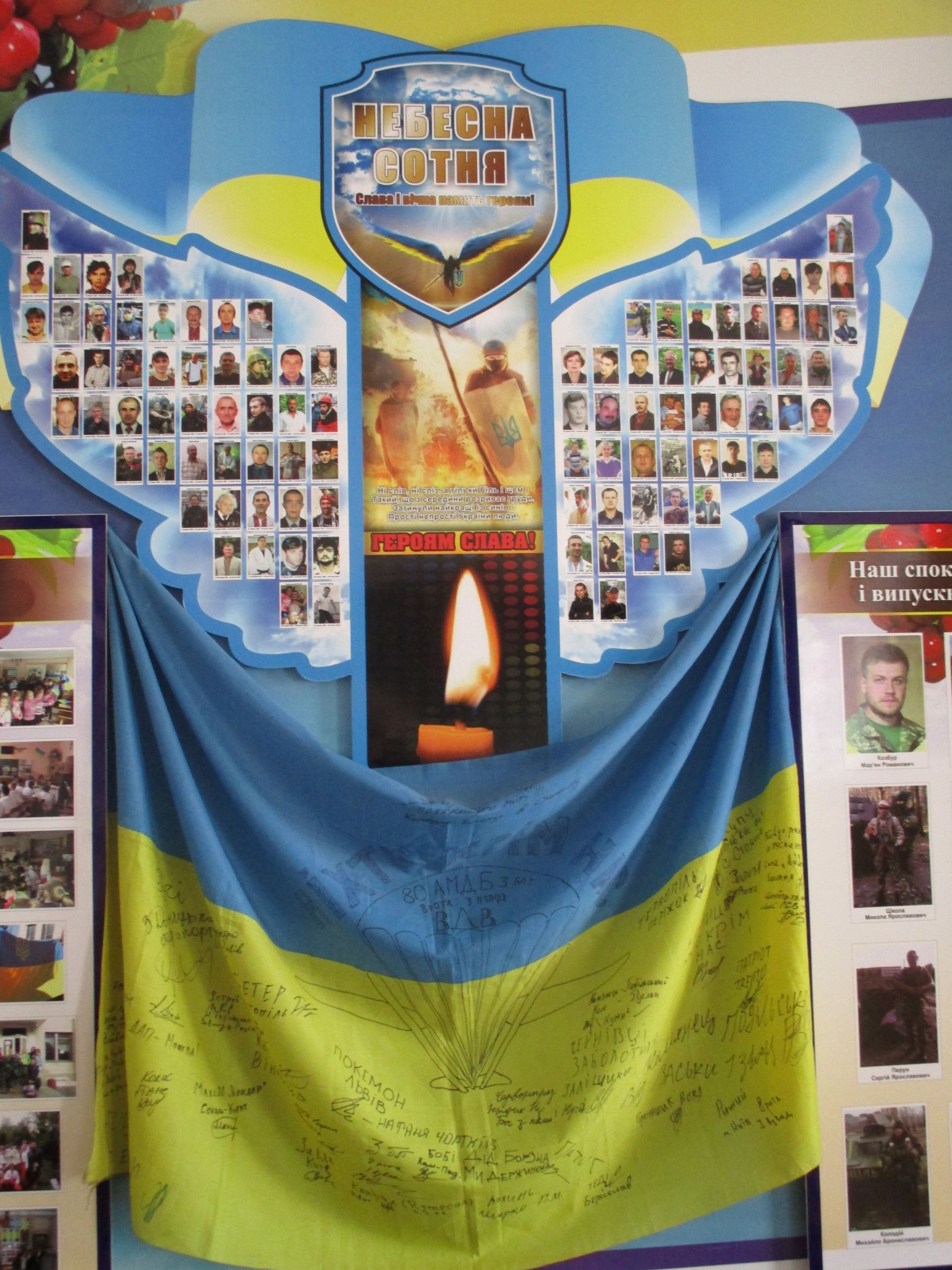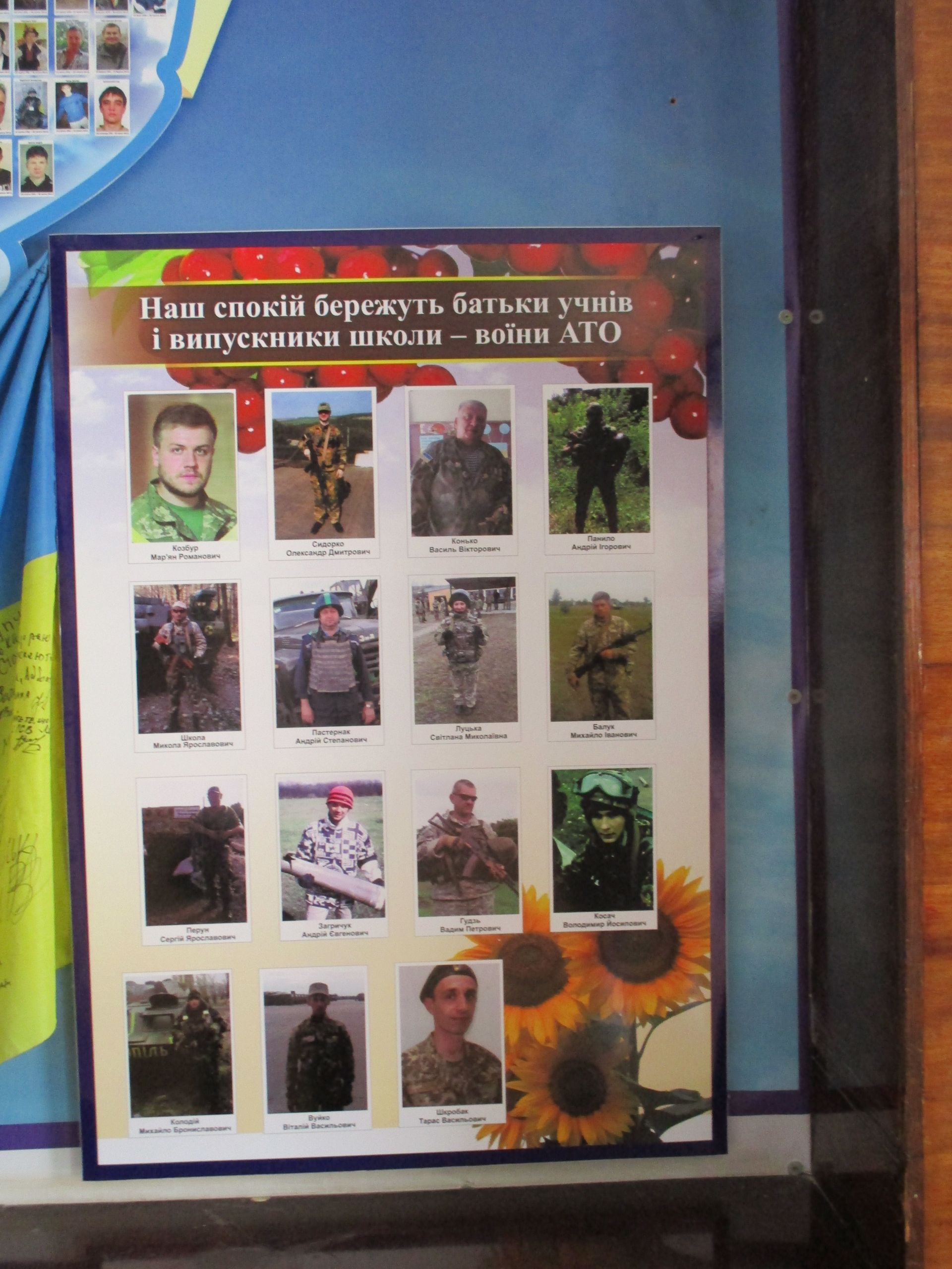 - Ми додали ще й духовно-патріотичний куточок, – каже заступник директора школи з навчально-виховної роботи Лариса Григор’єва. – Духовний, бо є копія ікони Буцнівської Божої Матері, а патріотичний, бо є стенд «Наш спокій бережуть батьки учнів, випускники школи – воїни АТО». Ми проводили пошукову роботу, зібрали фото і оформили цей стенд.