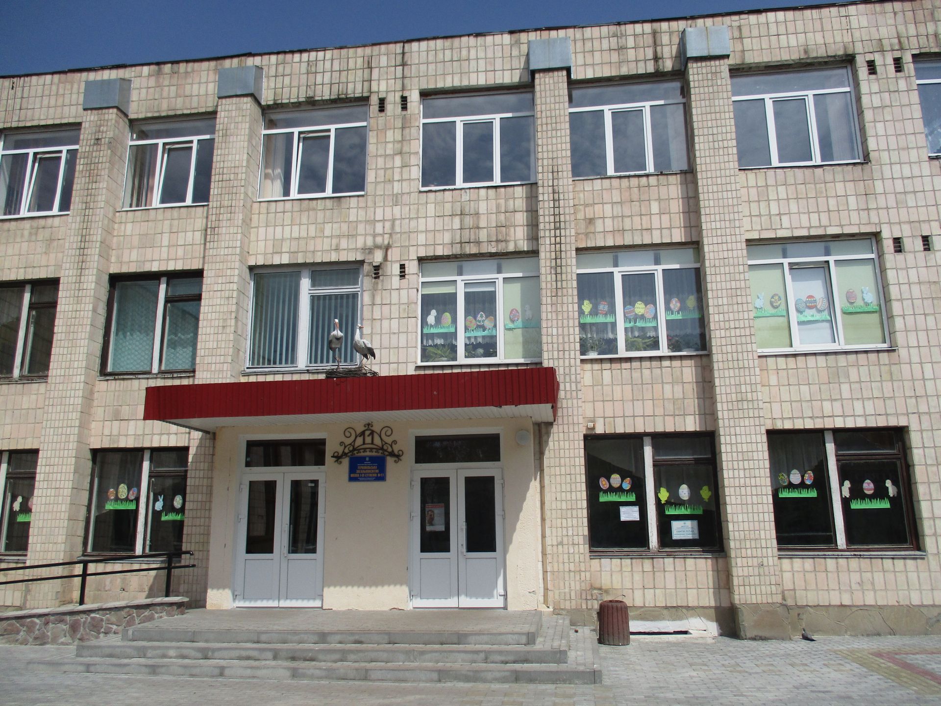 Патріотичні клумби у вигляді прапора та герба України, гніздо з лелеками на даху перед входом, радіорубка, дві спальні для першокласників, музеї – історії школи та спортивної слави, народознавча світлиця – це те, чим цікаве приміщення Тернопільської загальноосвітньої школи І-ІІІ ступенів № 11. «Родзинками» є такі шкільні заходи як тиждень Незалежності України, День навпаки, День Соборності, під час якого всі учні беруться за руки, створюючи живий ланцюг єднання тощо.