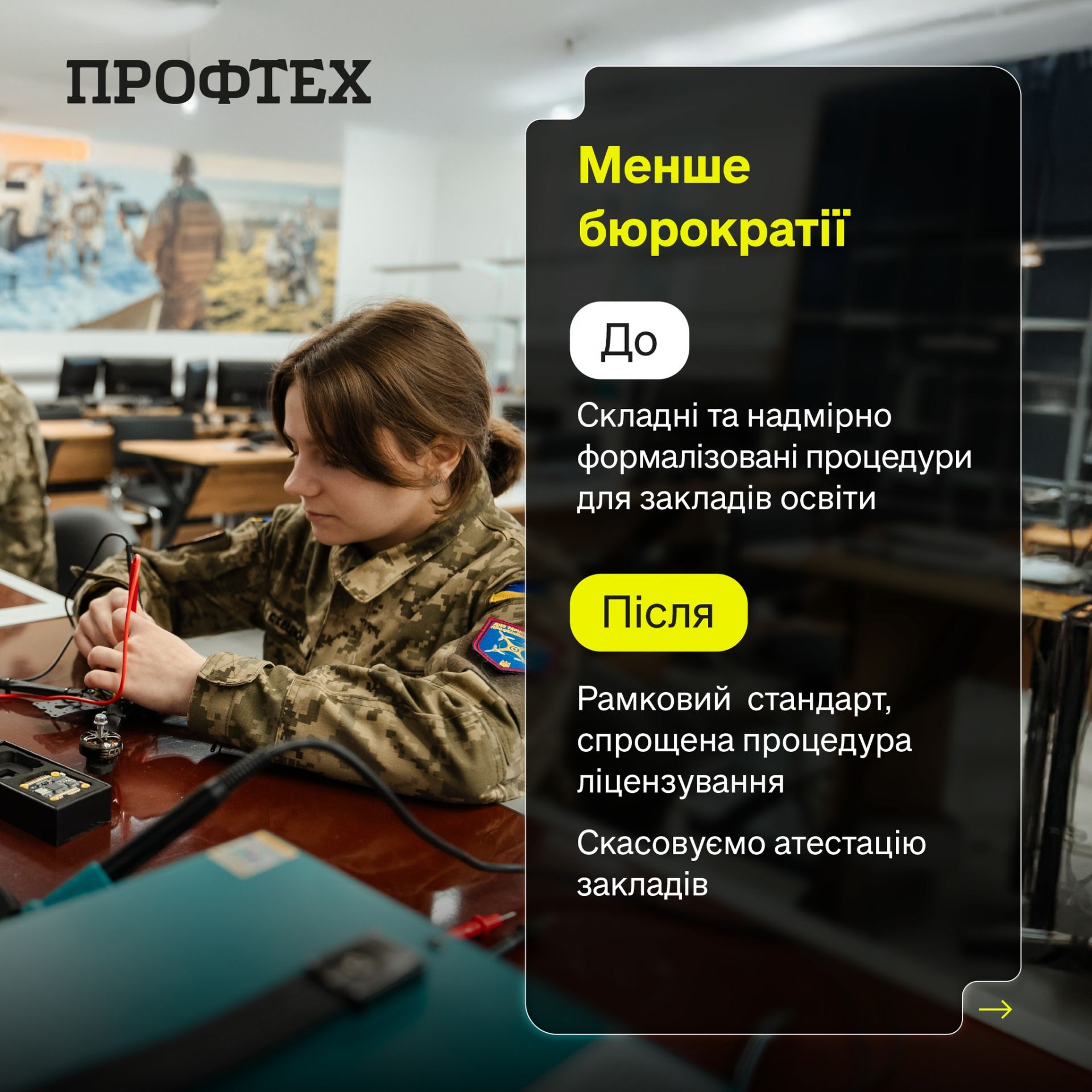 Також Уряд щороку інвестуватиме в модернізацію інфраструктури закладів професійної освіти: створення нових майстерень та лабораторій, утеплення гуртожитків, реконструкцію закладів.