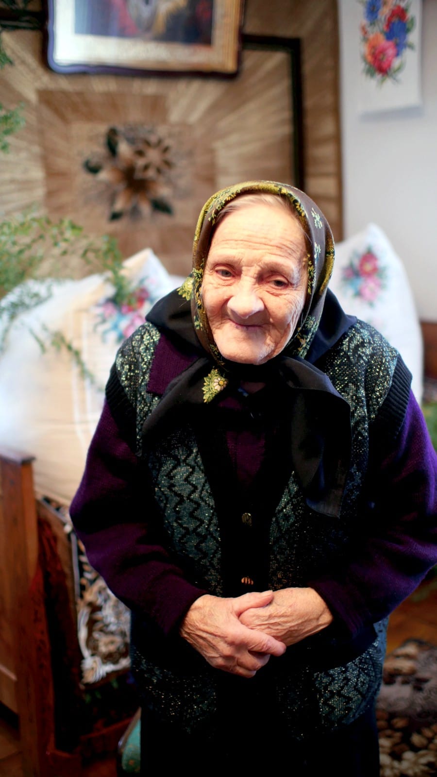 Пані Євдокія любить читати Євангеліє, з яким не розлучається ні на день, молиться за внука, який зараз воює з російським агресором, просить у Всевишнього здоров'я і сил усім нашим захисникам та найшвидшої Перемоги Україні.