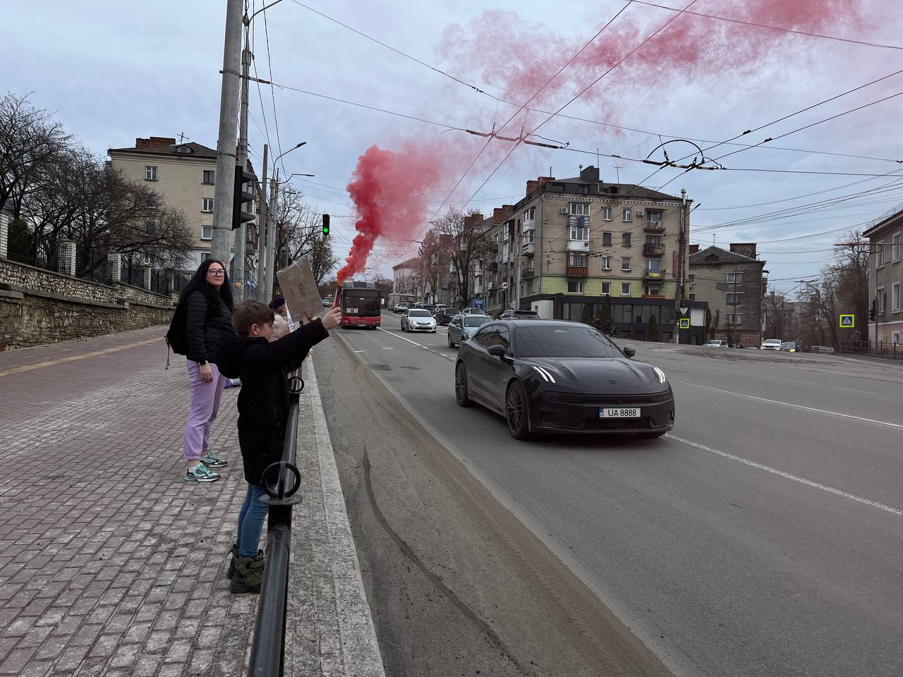 О 14.00 на дамбі Тернопільського ставу жінки, матері, діти та знайомі захисників вишикувалися вздовж дороги.