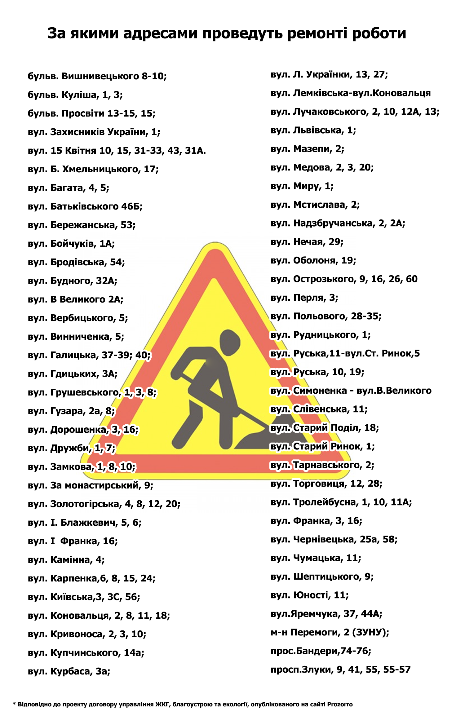 Загалом ці роботи мають виконати на 135 локаціях. На інфографіці вказано всі адреси, які вказані в умовах договору.