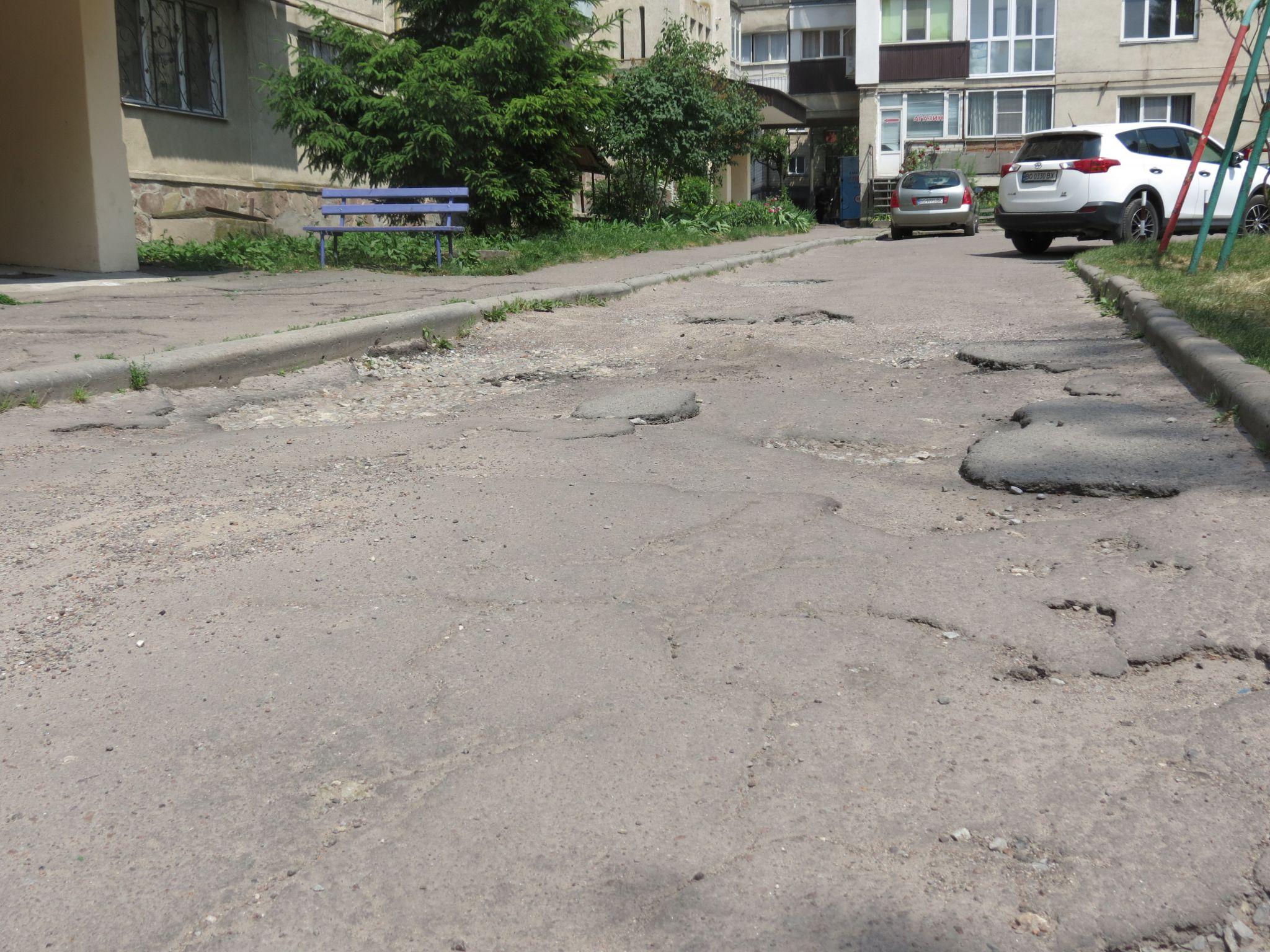– Всі тротуари і дорога в ямах, їх ніхто не ремонтує. З сусідами ми неодноразово збиралися, зверталися у міську раду, в керуючу компанію. Ями засипали будівельним сміттям, камінням, але це не допомагає. Хто які ремонти вдома робить – залишками цементу заливає ями. Звичайно, під час війни не потрібно робити капітальний ремонт, але принаймні залатати ями, які десятиліттями ніхто не ремонтував, – каже мешканка будинку пані Ольга.