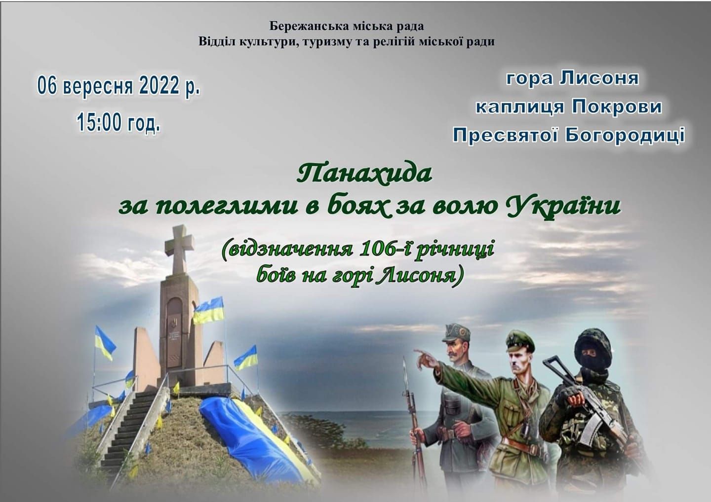 До слова, 6 вересня о 15.00 на горі Лисоня пройде панахида за полеглими в боях за волю України.