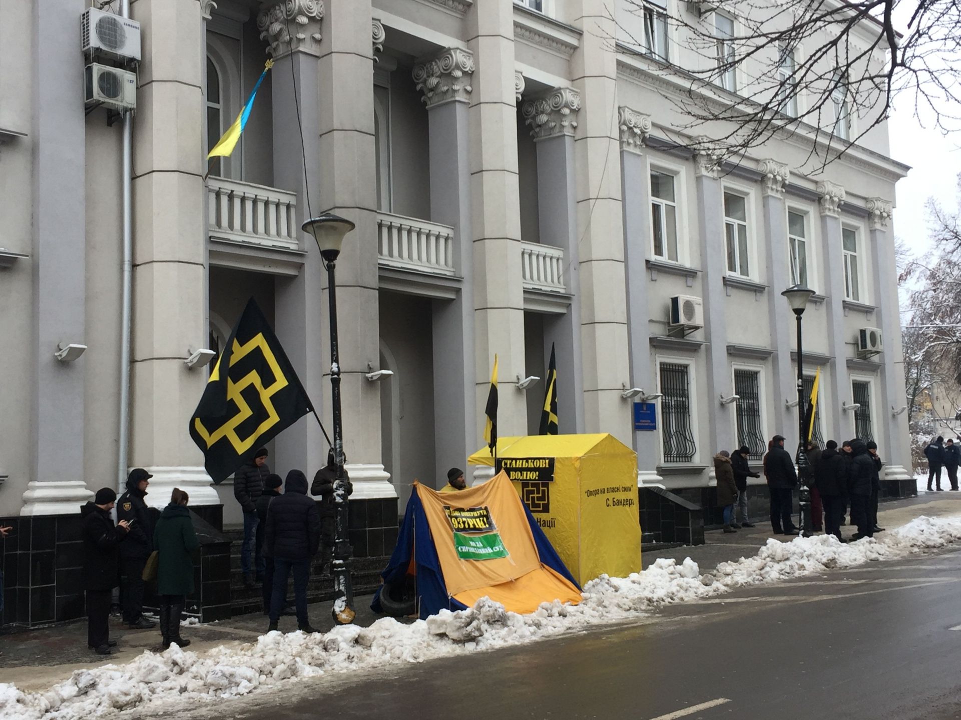 - З самого ранку ми розклали 10 шин, але ми їх не палили - це просто реквізити акції, які ми заздалегідь прописали у заявці на проведення акції. Все законно, - повідомив активіст Остап Стахів. - Згідно закону, якщо я щось в заявці вказав, лише суд мені може заборонити це. Натомість поліція зранку сказала, що комунальна служба попросила їх погрузити шини. Також на мене склали протокол за розклеювання плакатів скотчем на стінах прокуратури. Заявку на акцію я подав ще 1 лютого, а акція розпочалась 6 лютого, тому незадоволені мали багато часу оскаржити це через суд. Все, що було вказано в заявці, будемо знову приносити, зокрема шини. І будемо діяти в межах чинного законодавства. Ми будемо стояти тут поки Олексій Станько не вийде на волю.