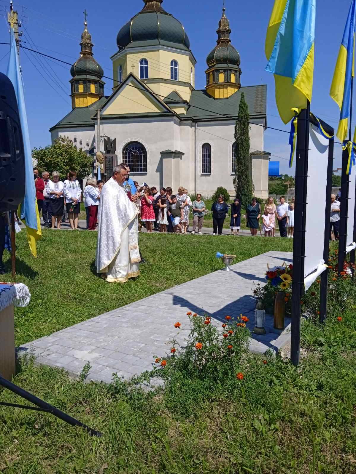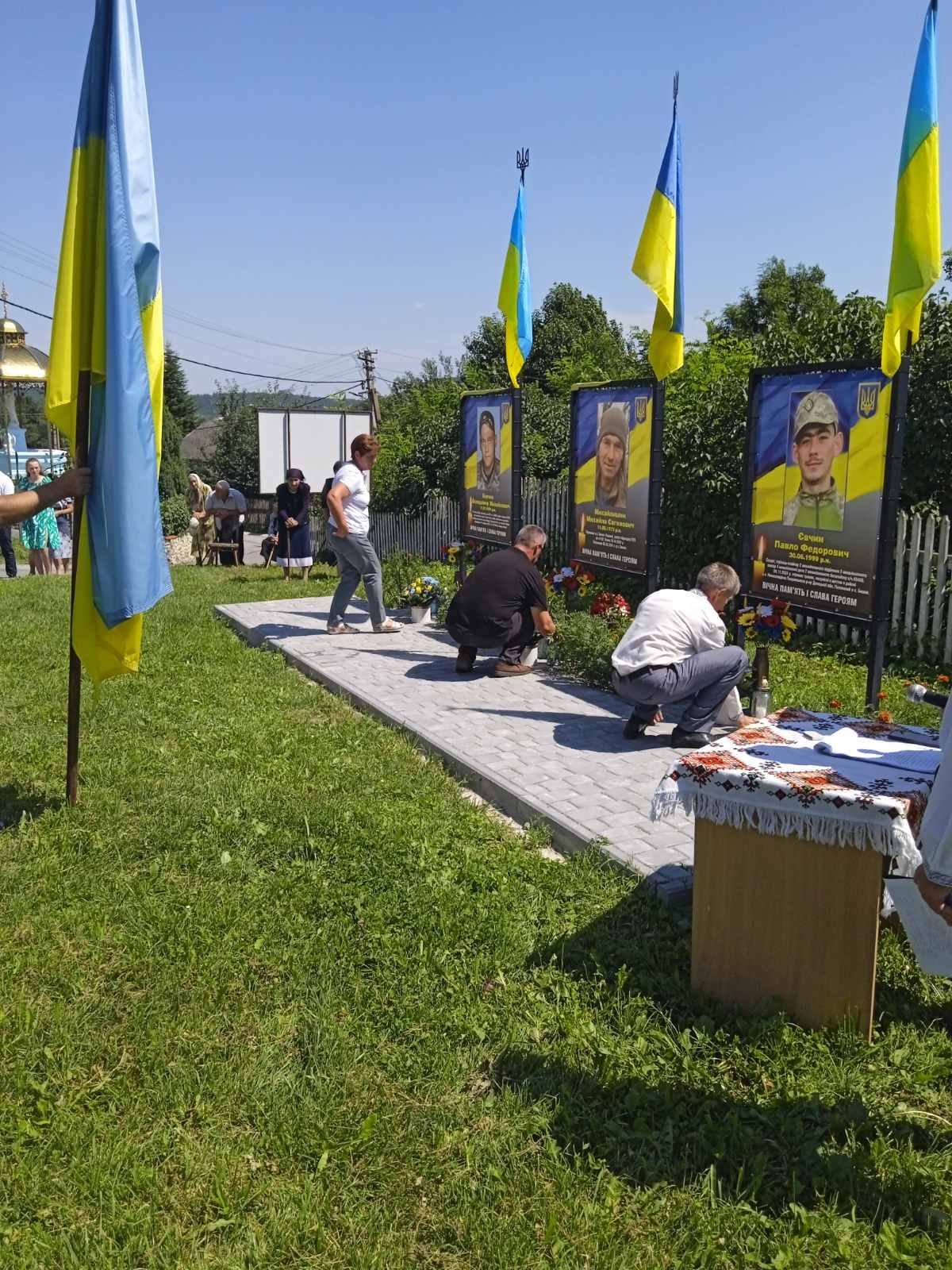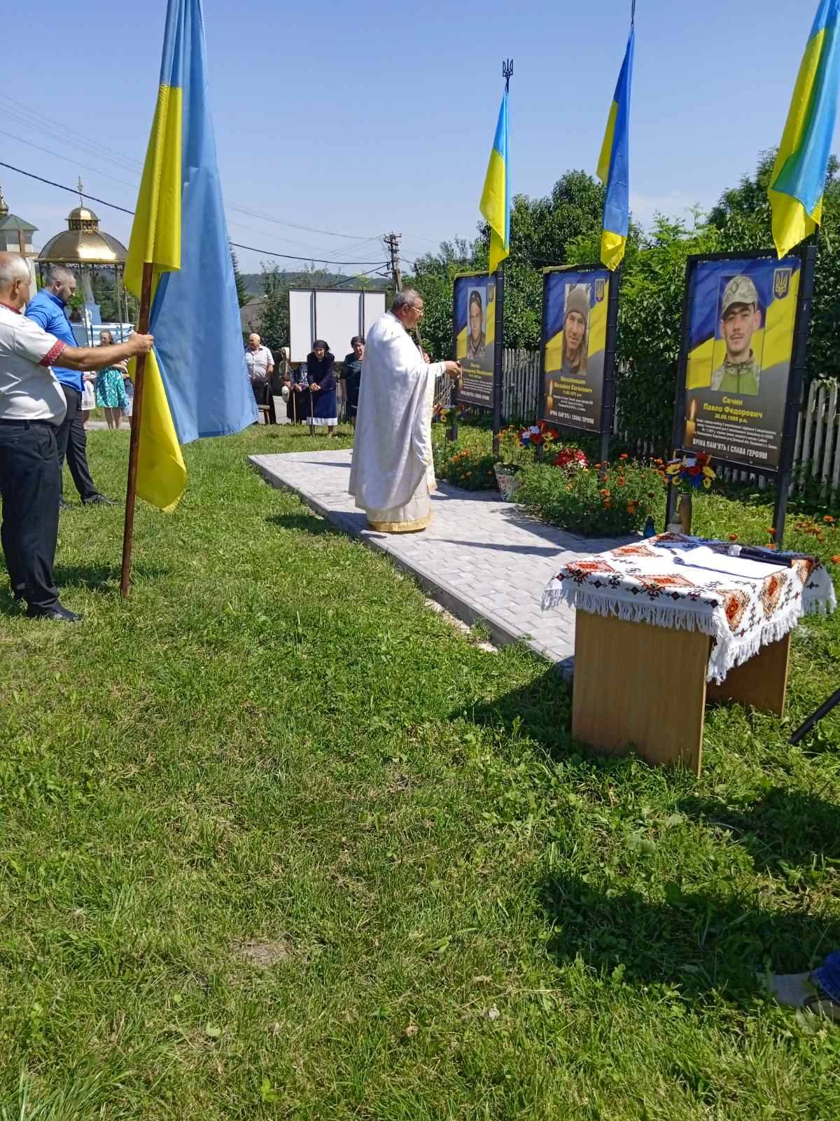 Хвилюючим моментом стало відкриття банерів із світлинами трьох загиблих воїнів, яке провели їхні матері, а отець Михайло Квасниця здійснив освячення й молебень за душі спочилих. Після духовної частини заходу місцеві аматори і церковний хор мали патріотичний виступ, який присвятили всім захисникам України.