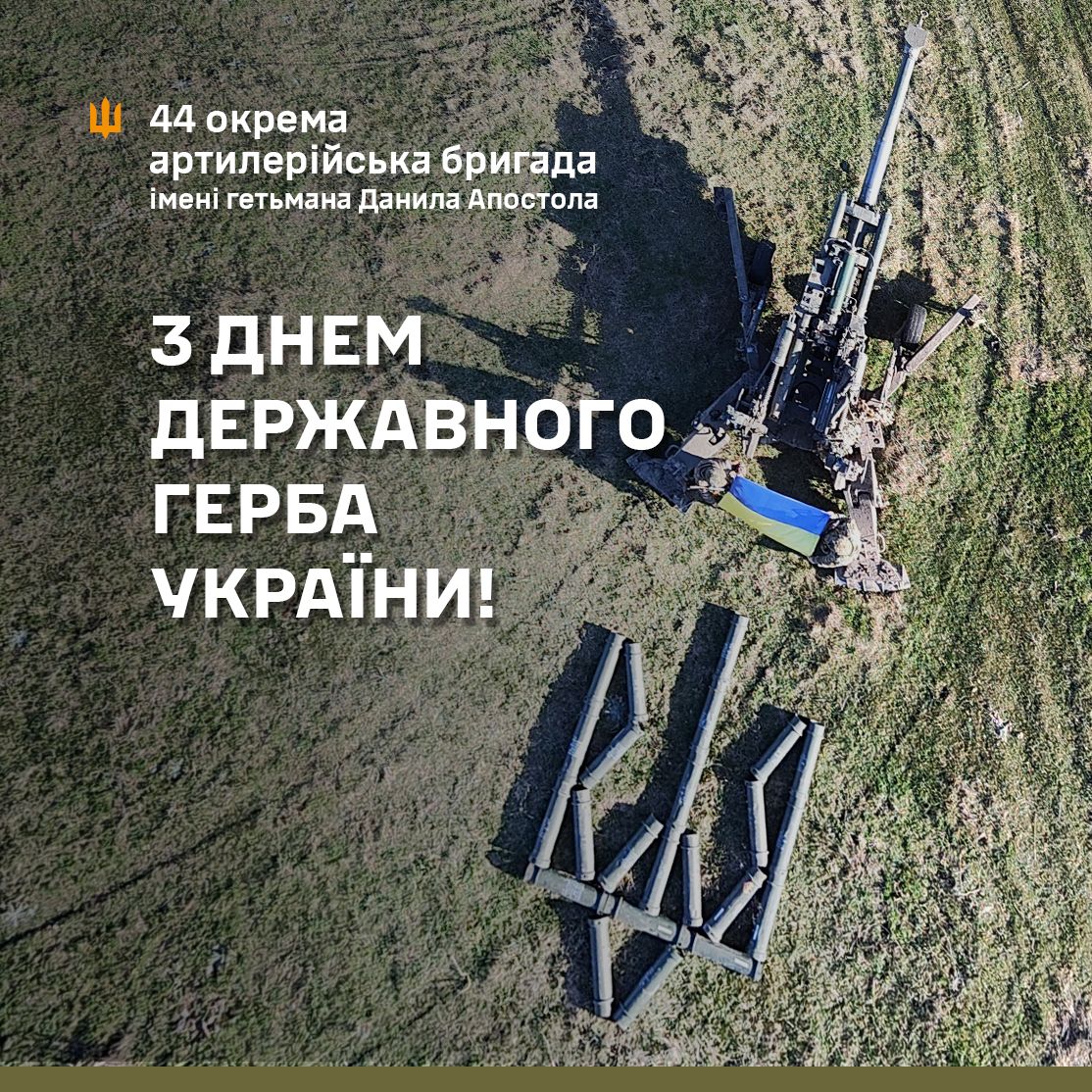 Військовослужбовці 44-ї окремої артилерійської бригади привітали українців з Днем Державного Герба України.