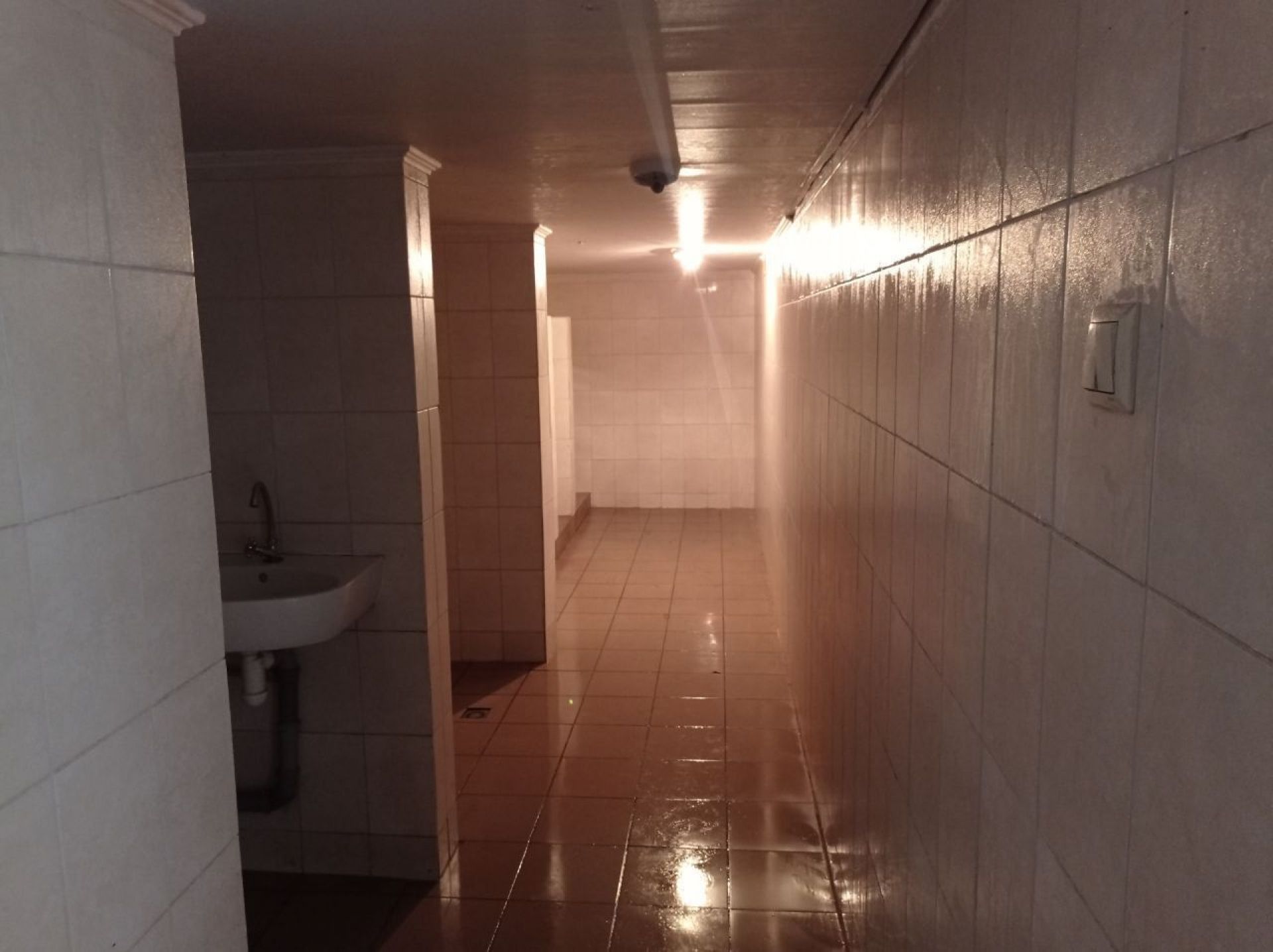 Туалети розташовані біля атракціонів. Їх особливість у тому, що вони розташовані під землею. Є окремо чоловічий та жіночий. Як тільки ми почали спускатися – у ніс «вдарив» їдкий неприємний запах туалету. Серед усіх вбиралень – тут був найнеприємніший запах. Всередині сиро, на стінах був конденсат. Горіла лише одна з лампочок. Працював один рукомийник. Мила не було, але лежала стара губка.