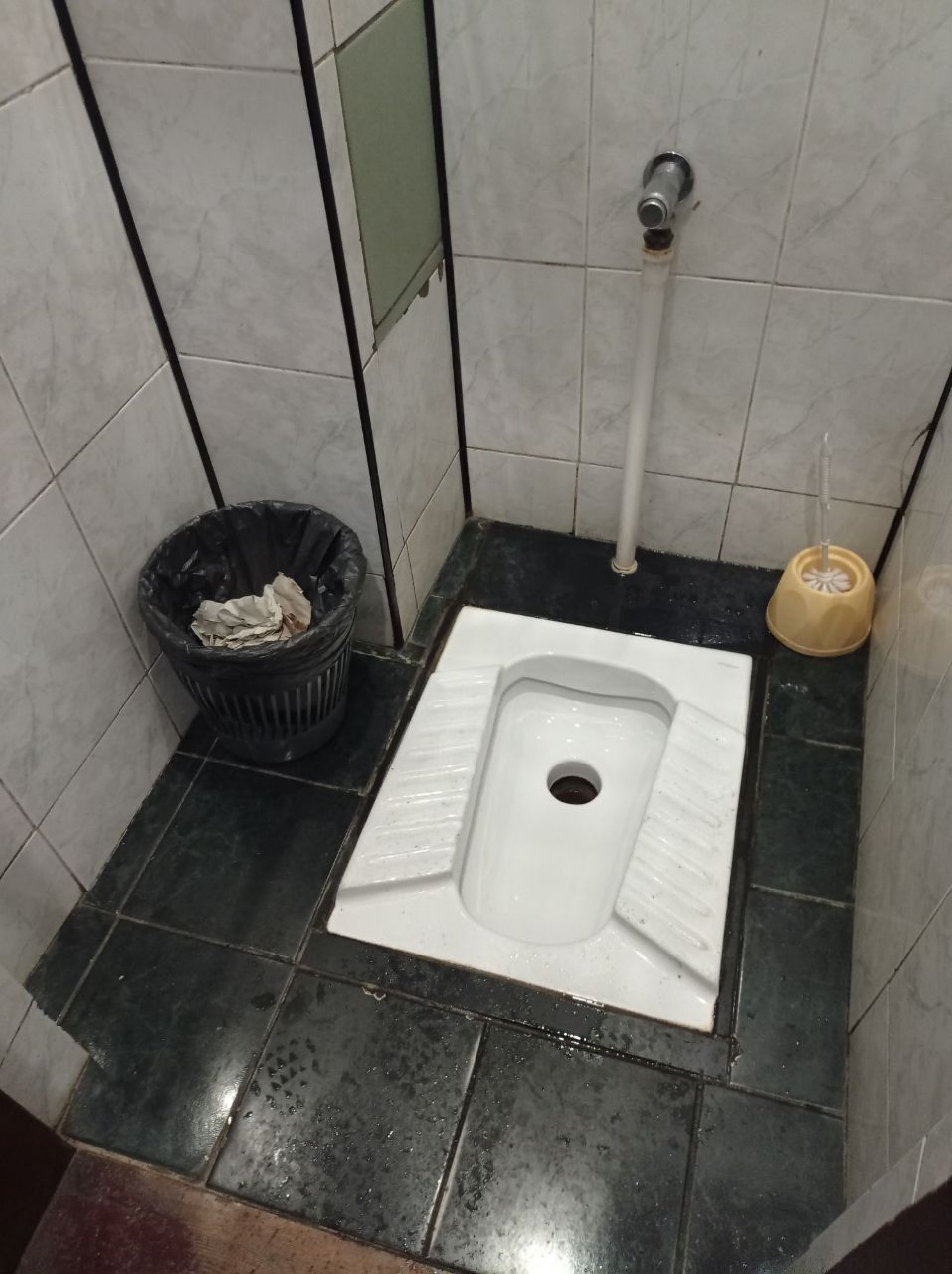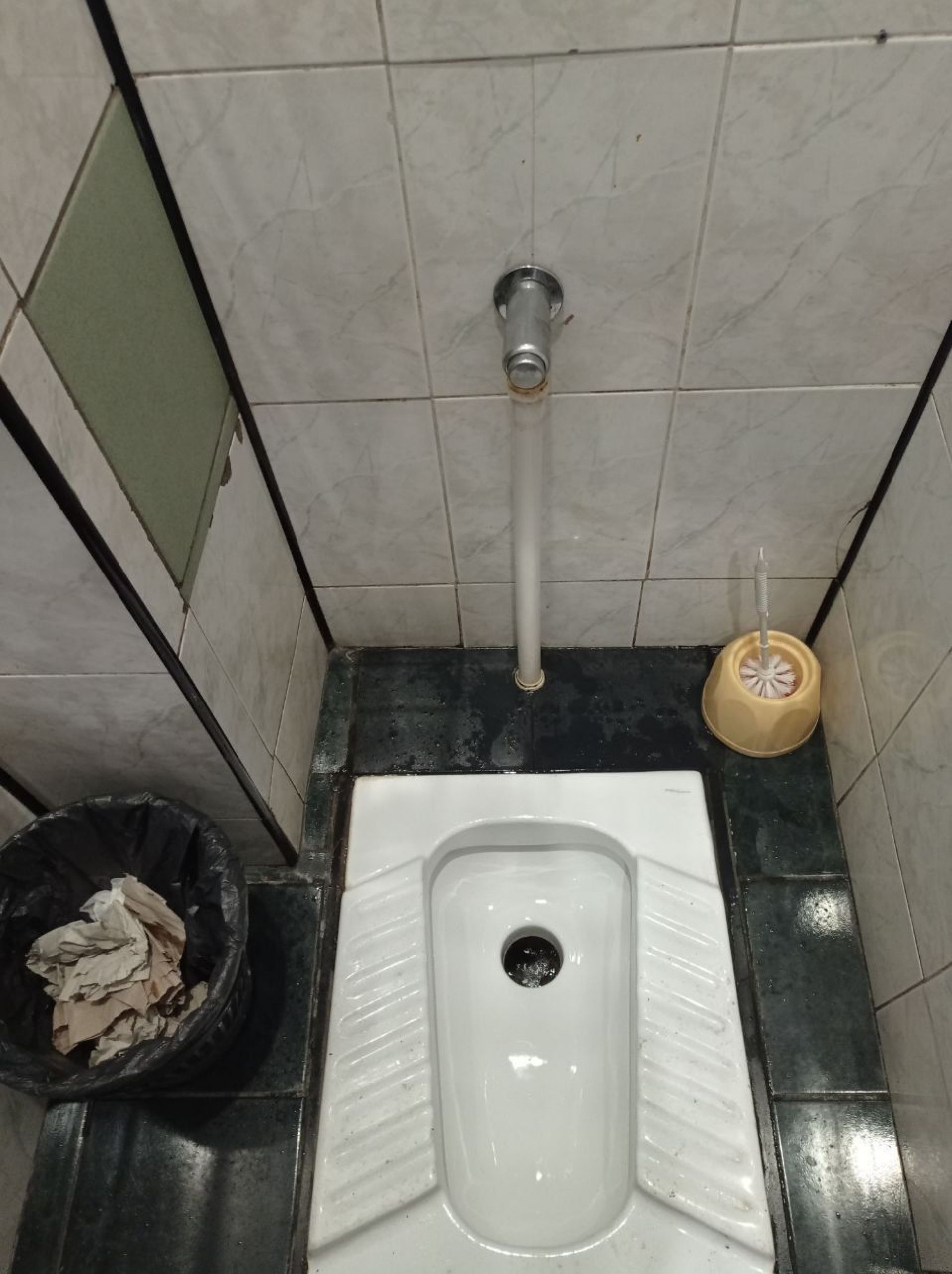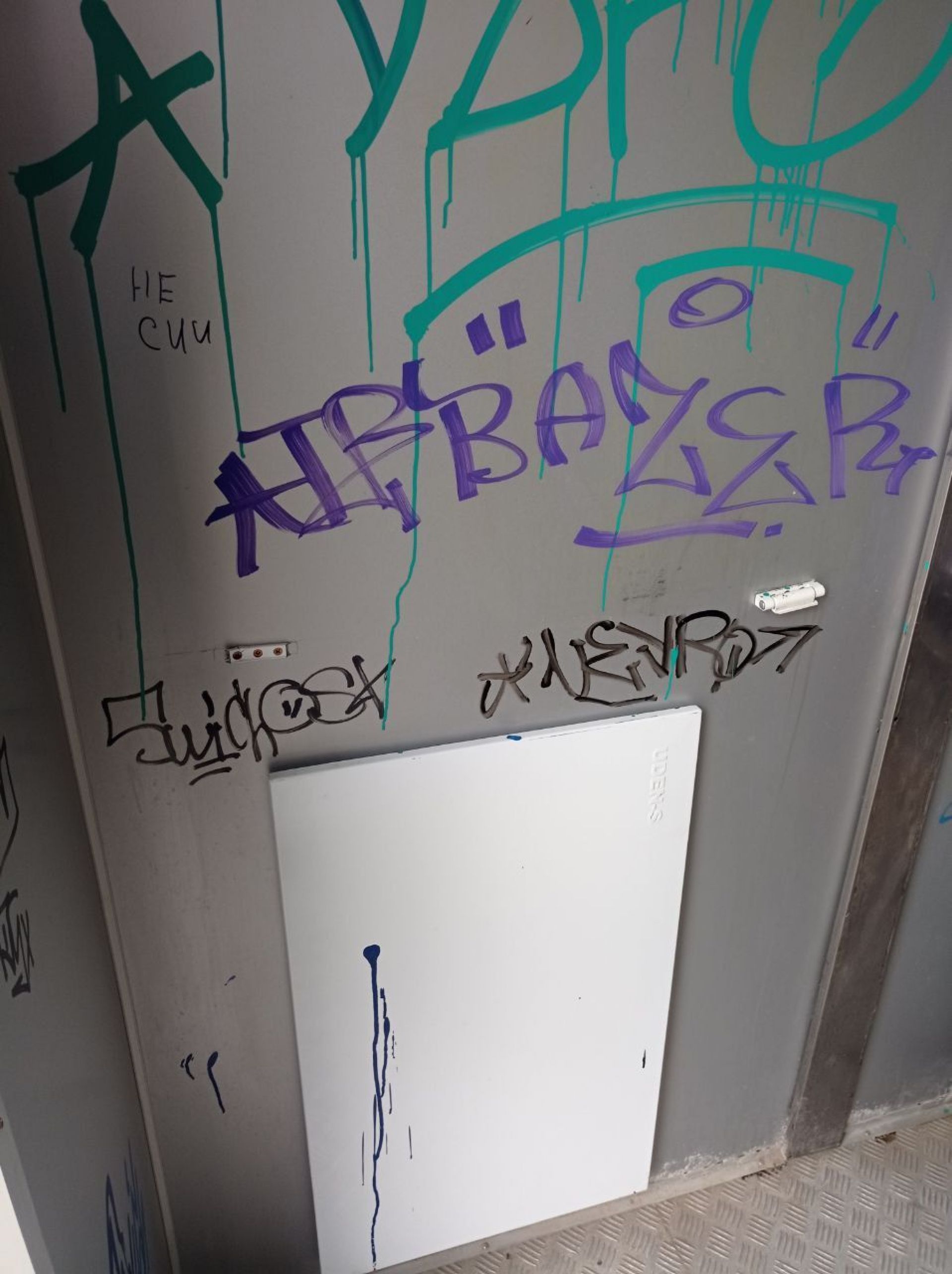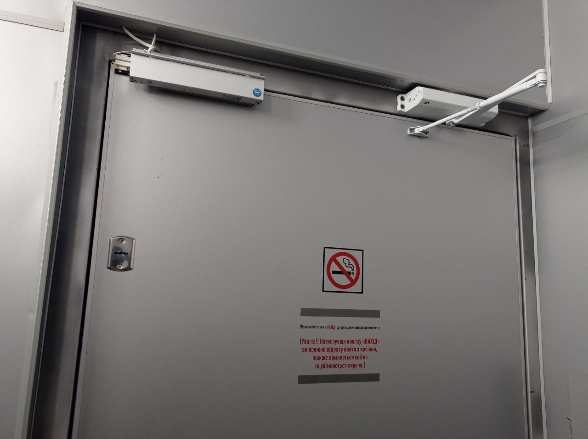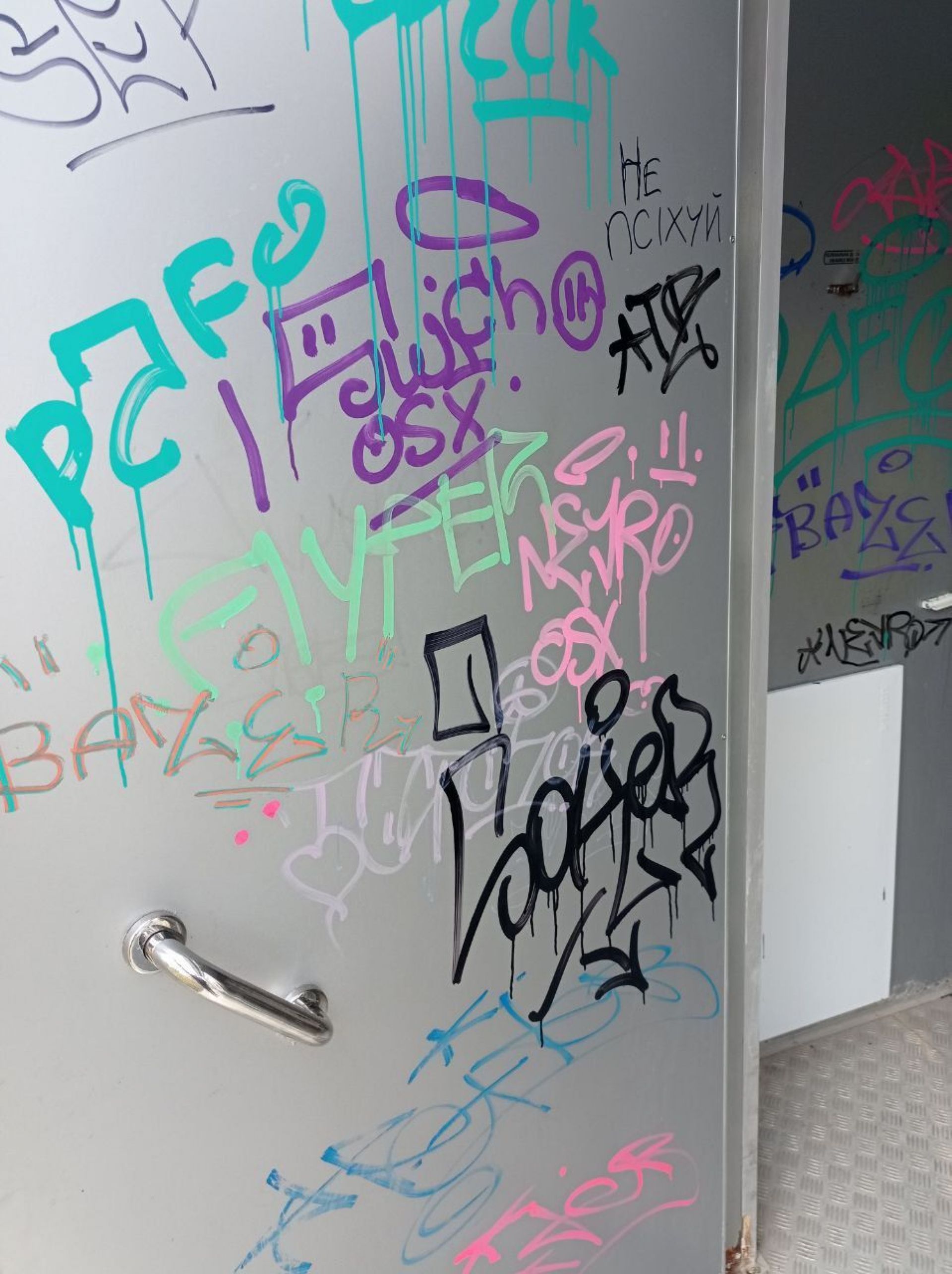 Всередині всі стіни розмальовані. Пеленальний столик зламаний. Пісуар не працює. Над туалетом наклеїли оголошення «Шановні відвідувачі! Свої потреби прохання справляти в унітаз, а не попри нього!».
