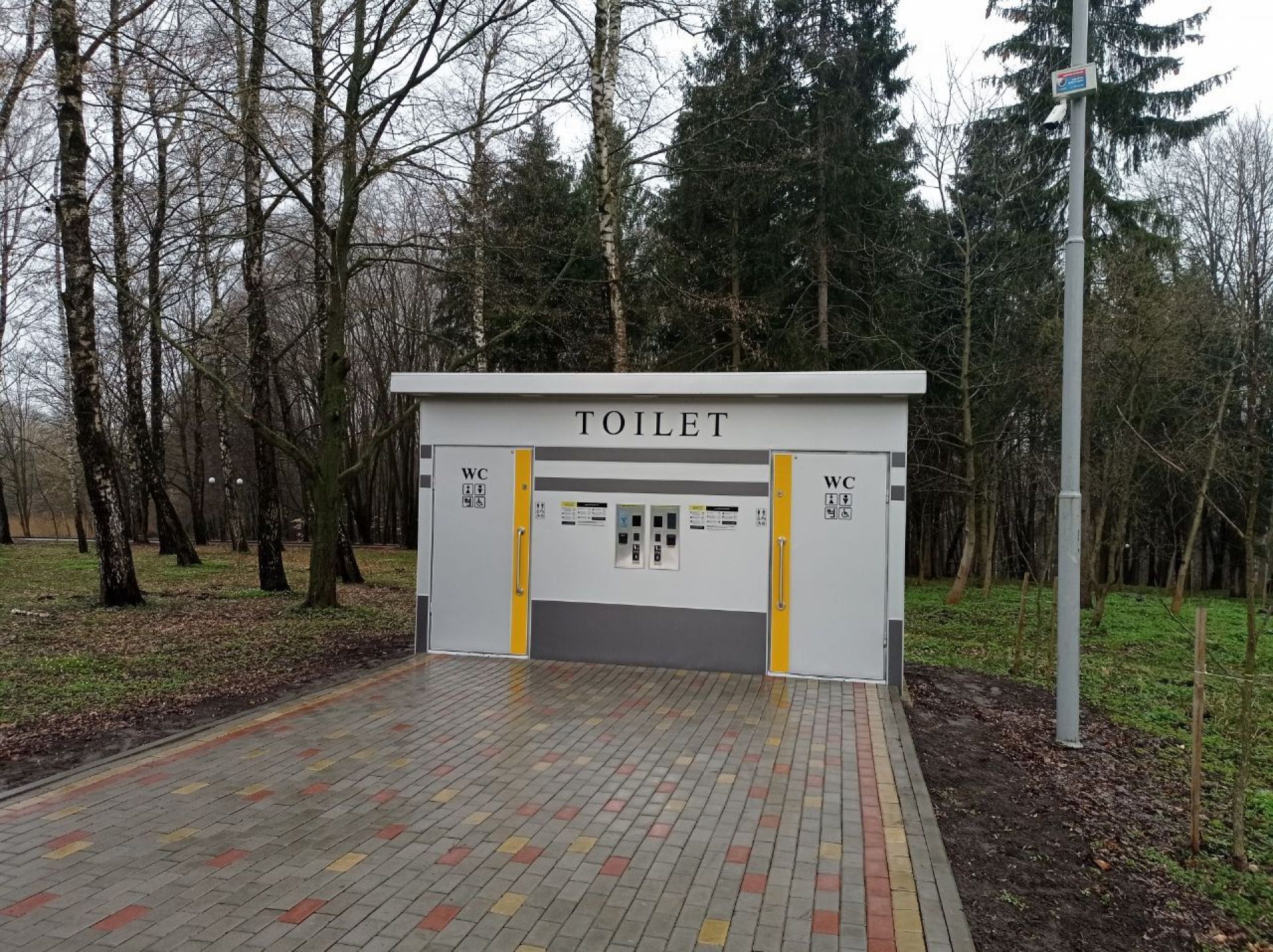 Туалет тут облаштували наприкінці 2021 року. Це також платна вбиральня, як і біля фонтану «Кульбабка». Щоб скористатися нею – потрібно внести 5 гривень Тут можна це зробити як купюрами, так і банкнотами. Якщо ви внесли більше коштів, ніж потрібно – решту не отримаєте, але ви побачите на екрані код решти, який варто записати. Його можна ввести наступного разу, коли вам потрібно буде скористатися вбиральнею.