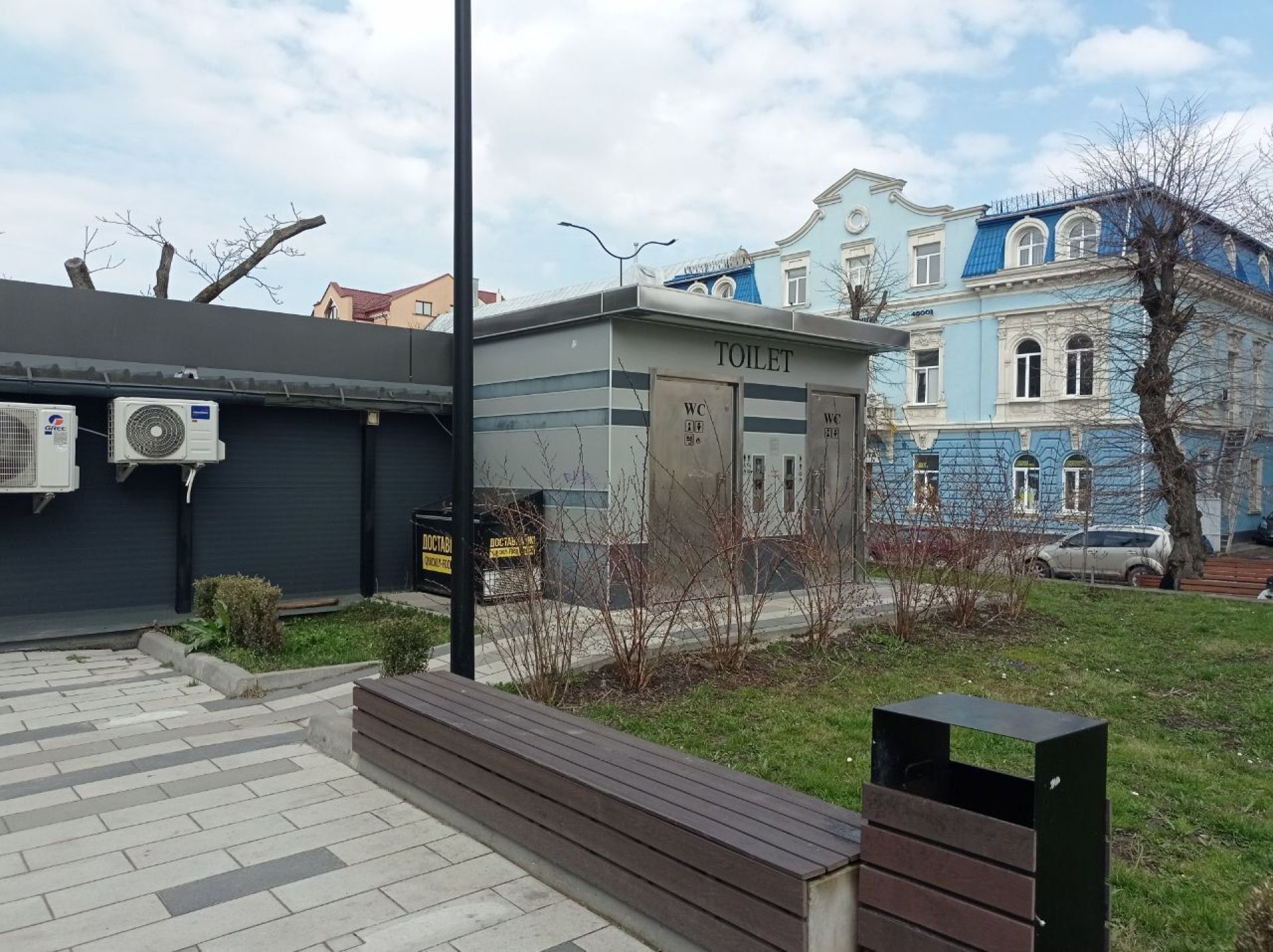 Громадська вбиральня безкоштовна. Вона розташована неподалік клубу моржів «Нептун». Тут також є окреме приміщення для жінок та чоловіків. Кабінки закриваються, всередині було чисто, підлогу нещодавно мили, хоча неприємний запах все ж є. Туалетного паперу немає – його потрібно просити у прибиральника.