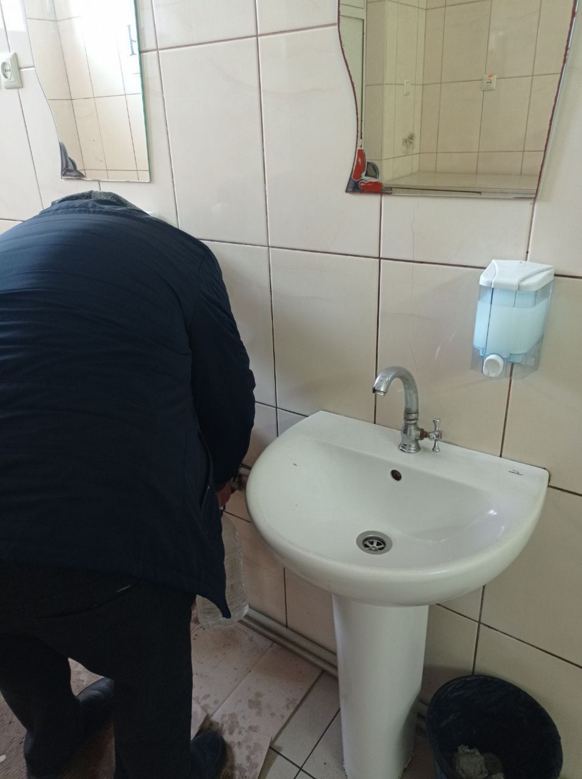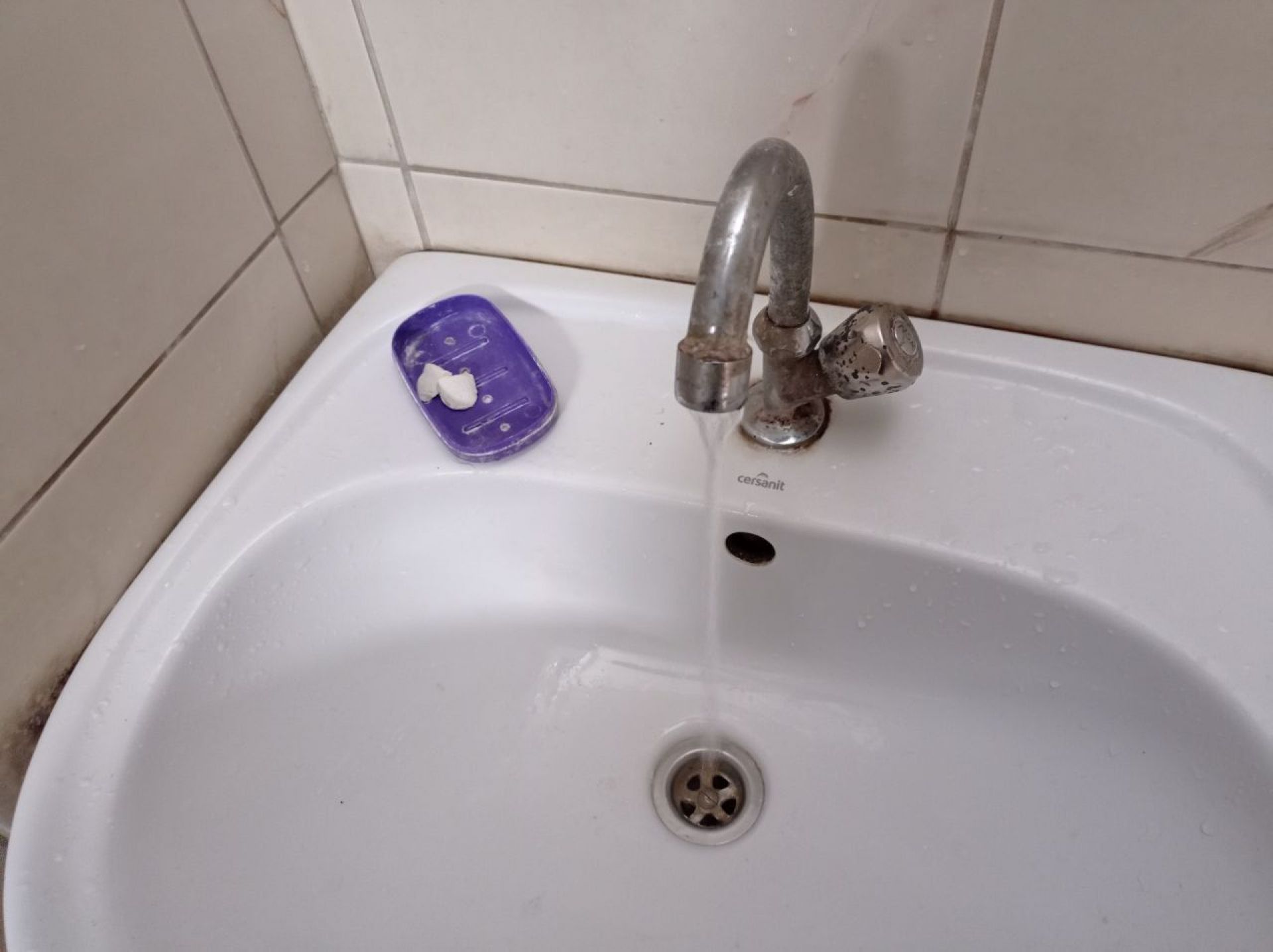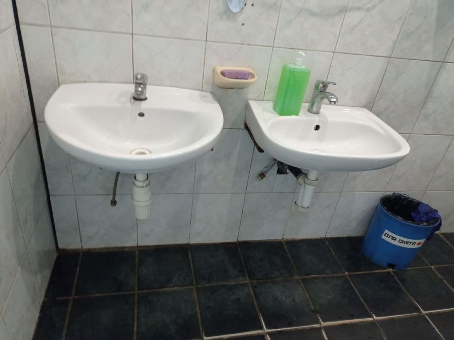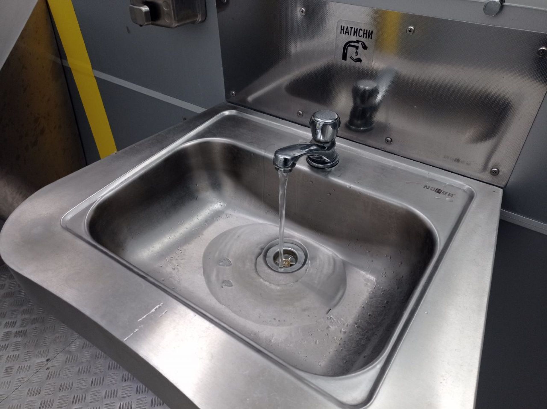 Є вода, щоб помити руки, але ані мила, ані паперових рушників немає.