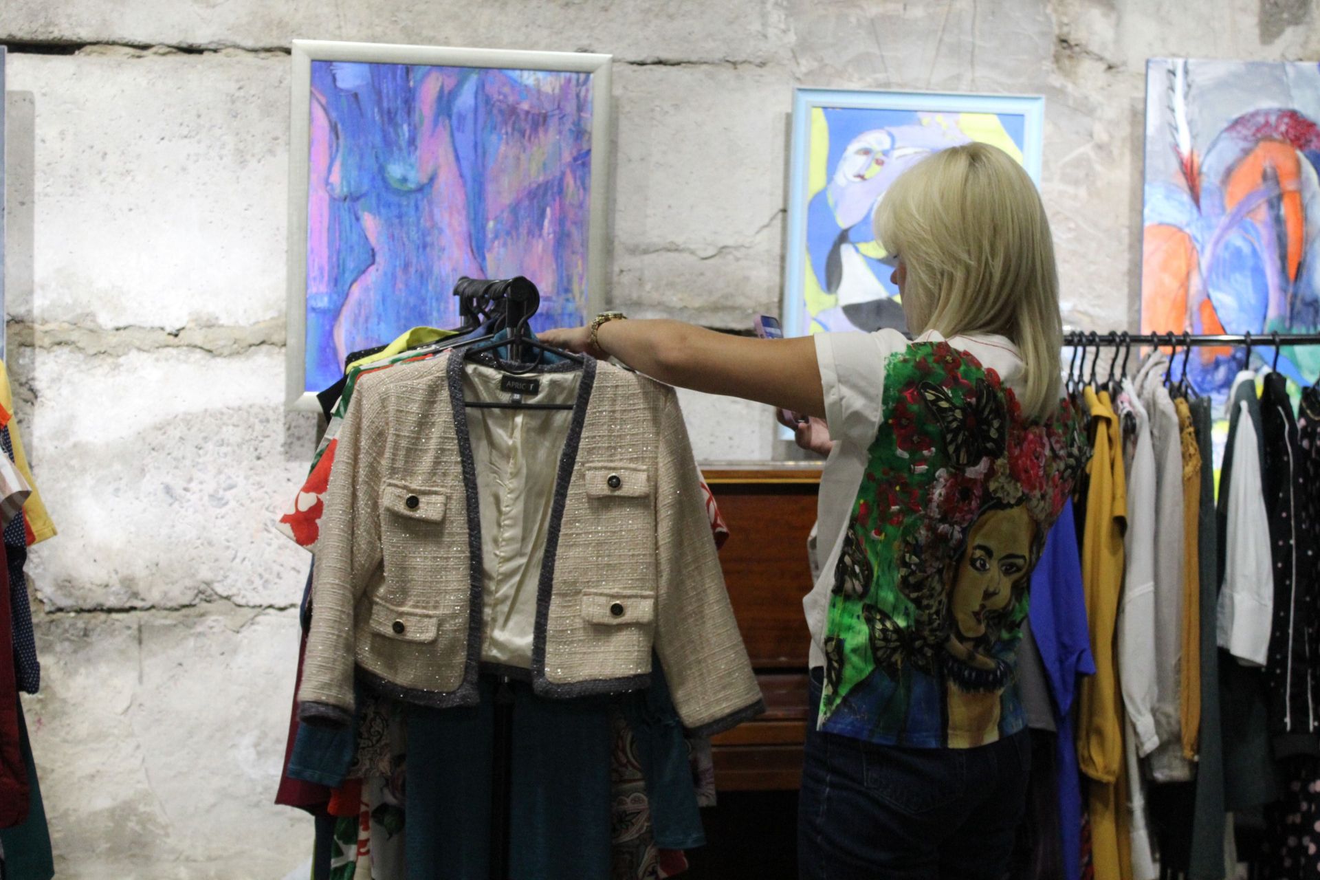 – Я продаю свої речі, мамині і татові, фактично всієї сім’ї, – усміхається Софія. – Вони нам вже не потрібні, тому вирішила допомогти зібрати гроші для ЗСУ. Деякий одяг ми з батьками раніше віддали на «гуманітарку» і благодійність. Все найкраще принесла сюди, на барахолку.