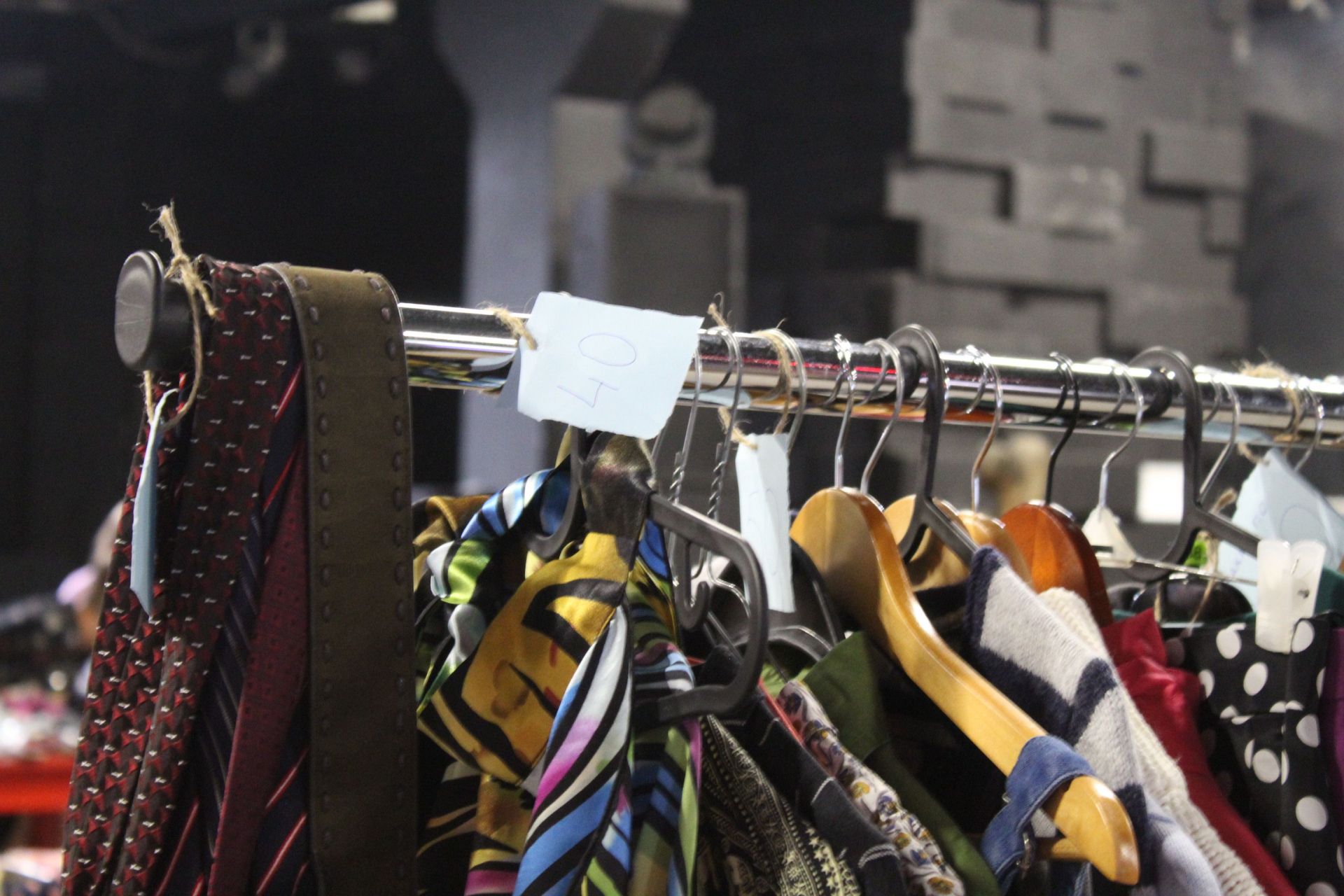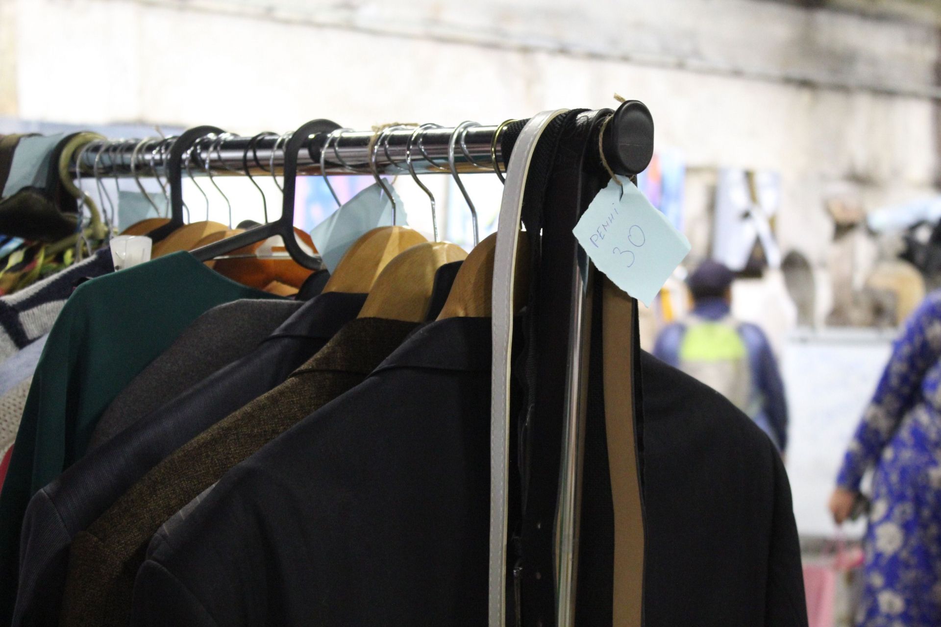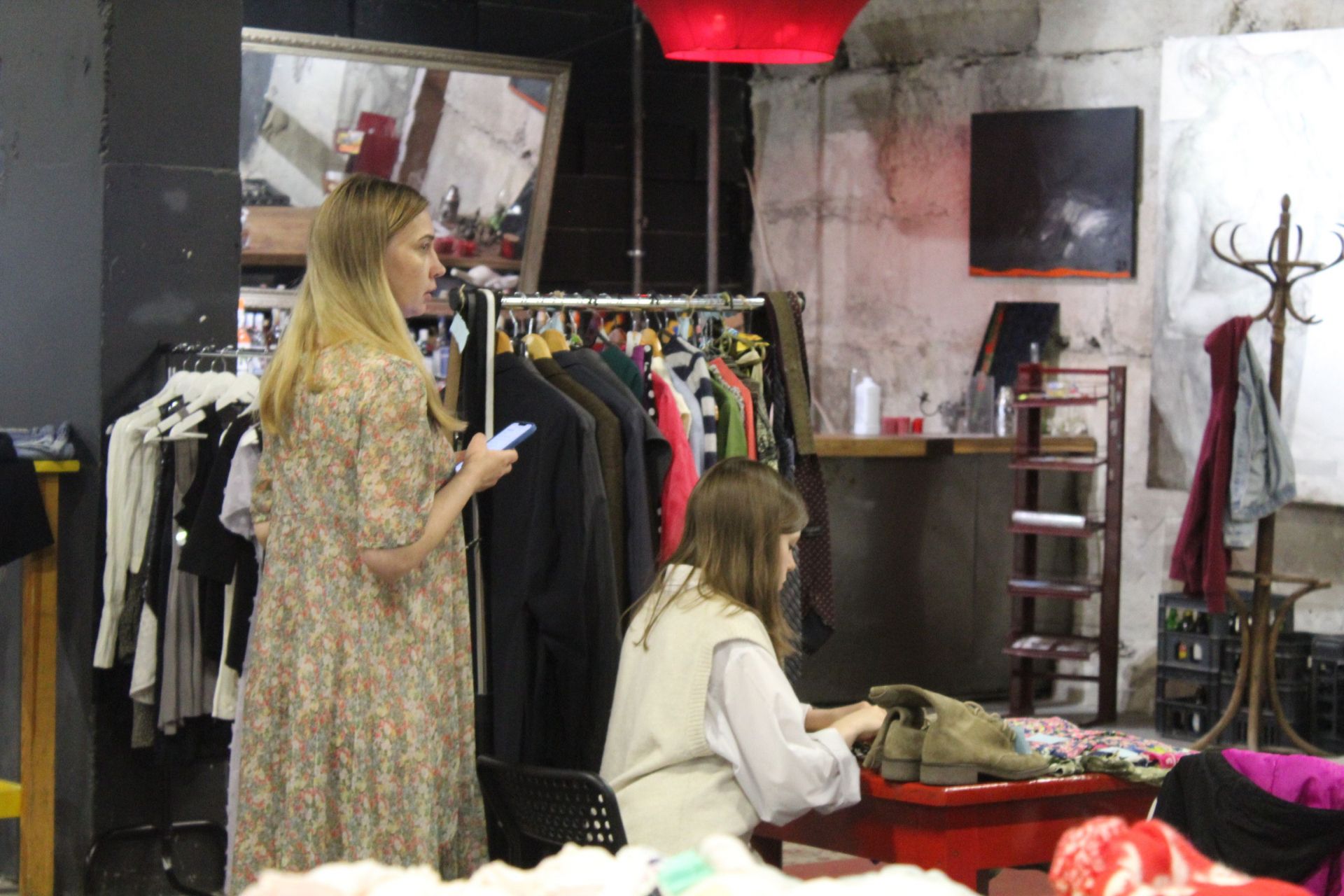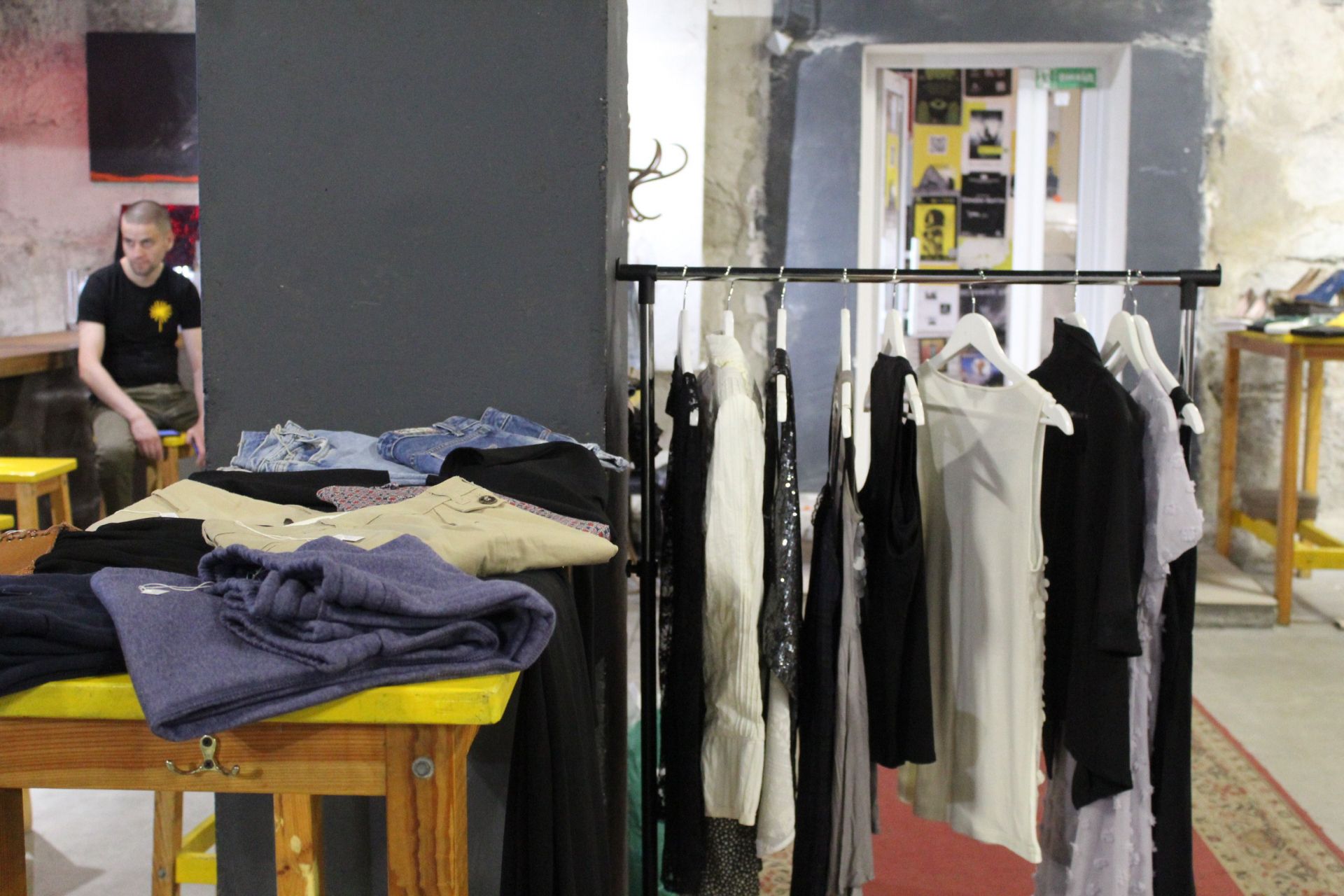 Одяг висить на саморобних стійках-вішачках та має бірки з ціною. Купити тут можна все, що заманеться. Речі дешеві і хорошої якості, якщо пошукати – зустрінете навіть відомі бренди – сукні і сорочки від Zara, сумки від Mary Kay тощо.