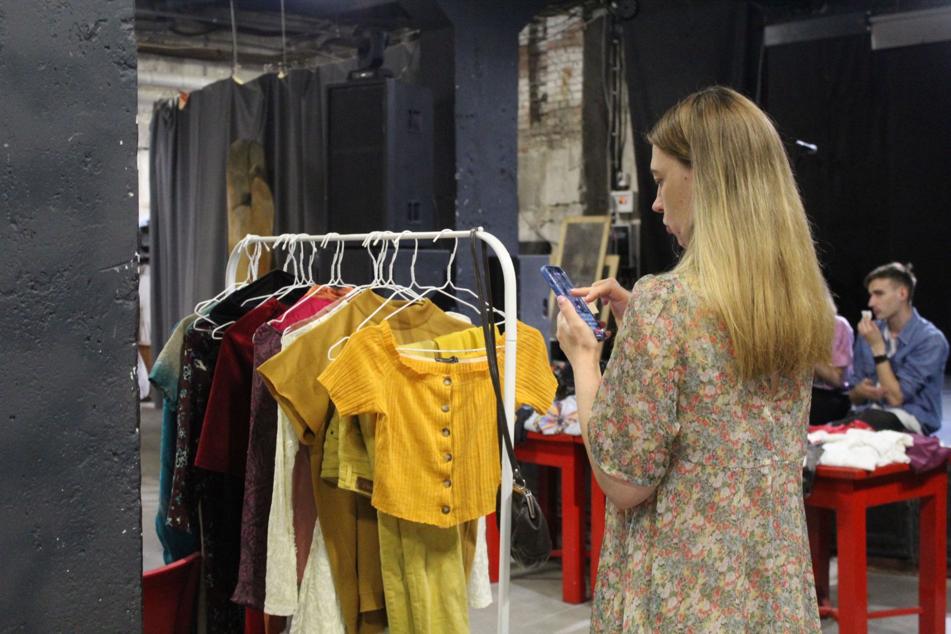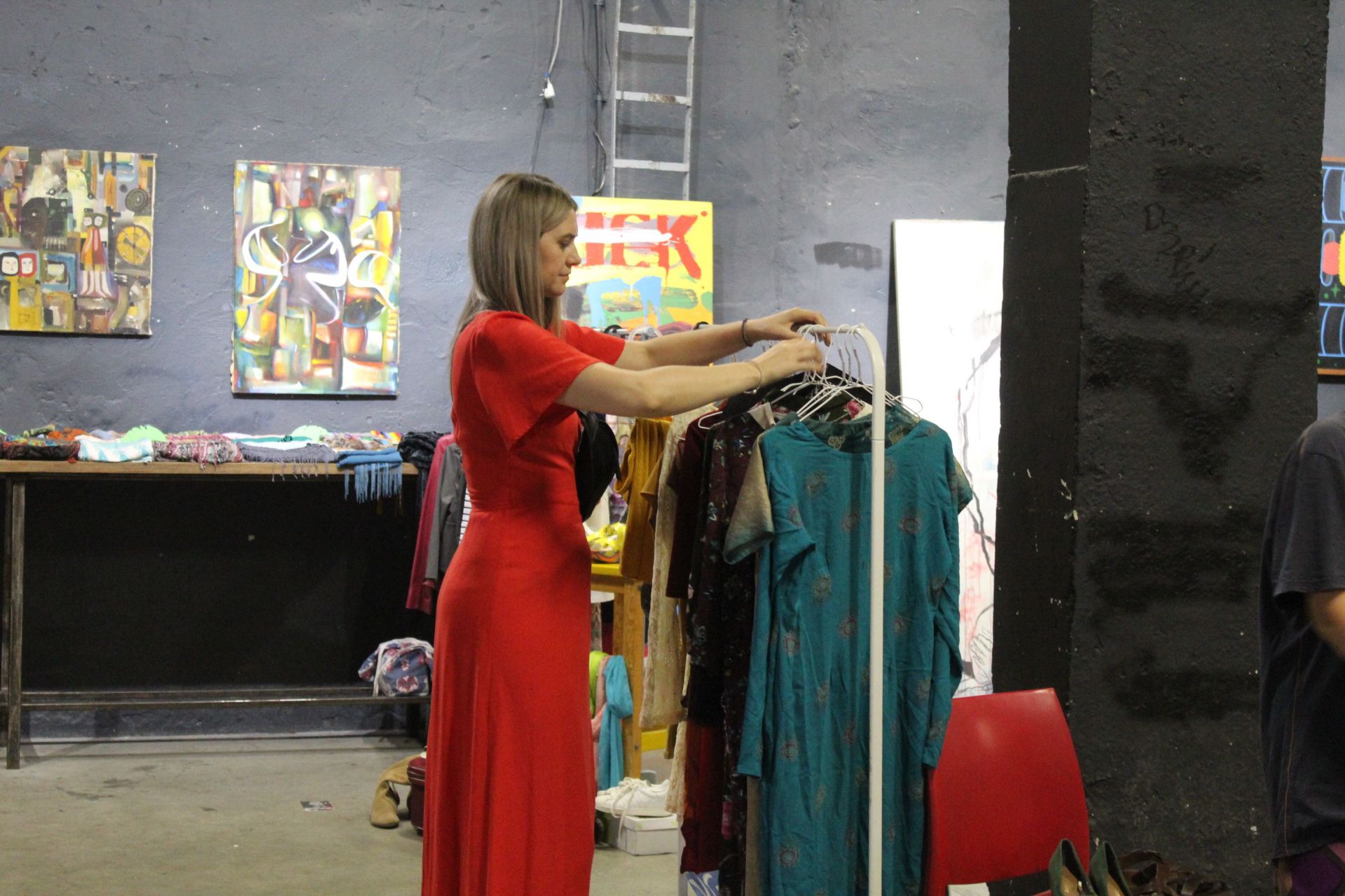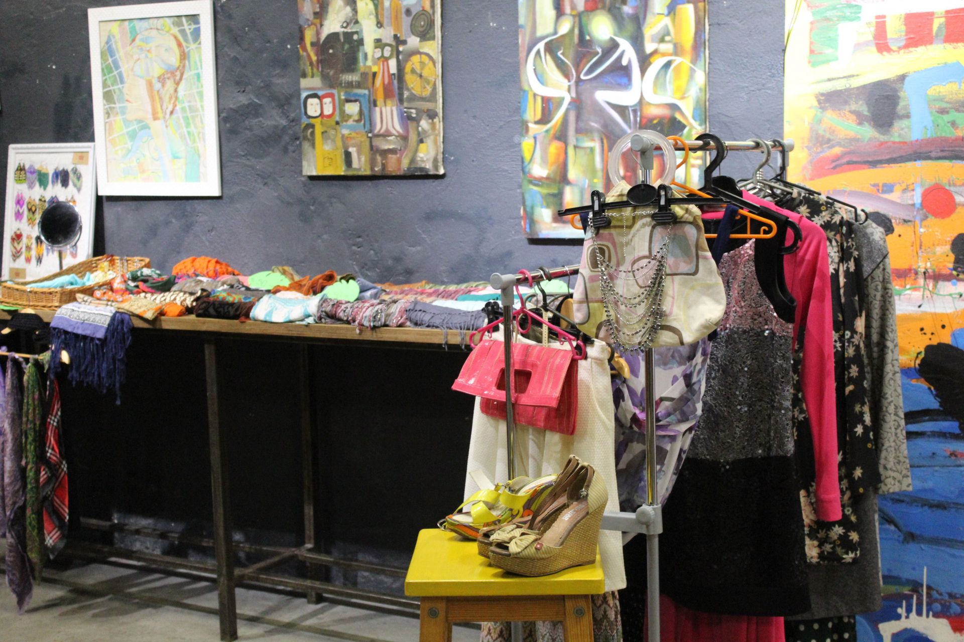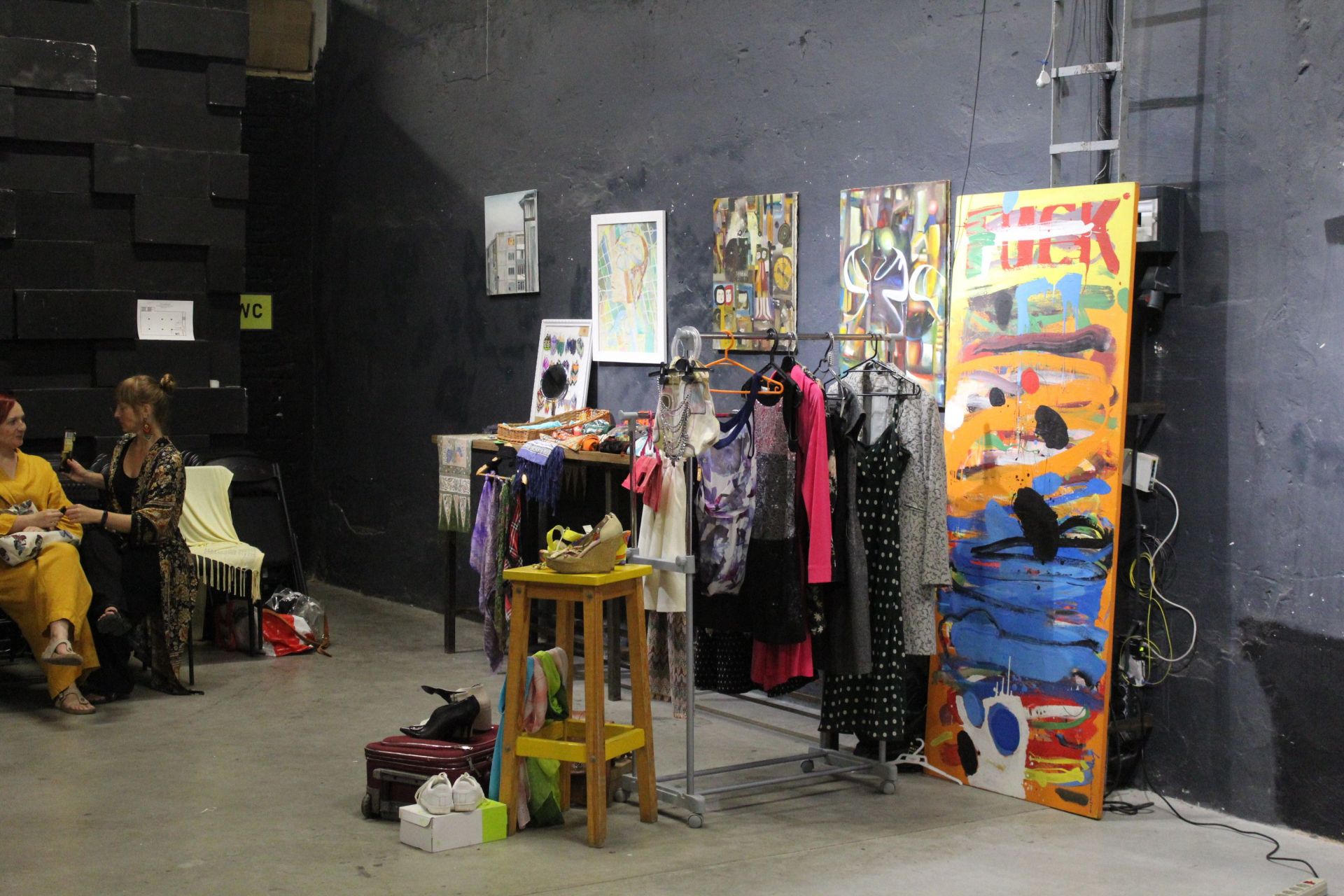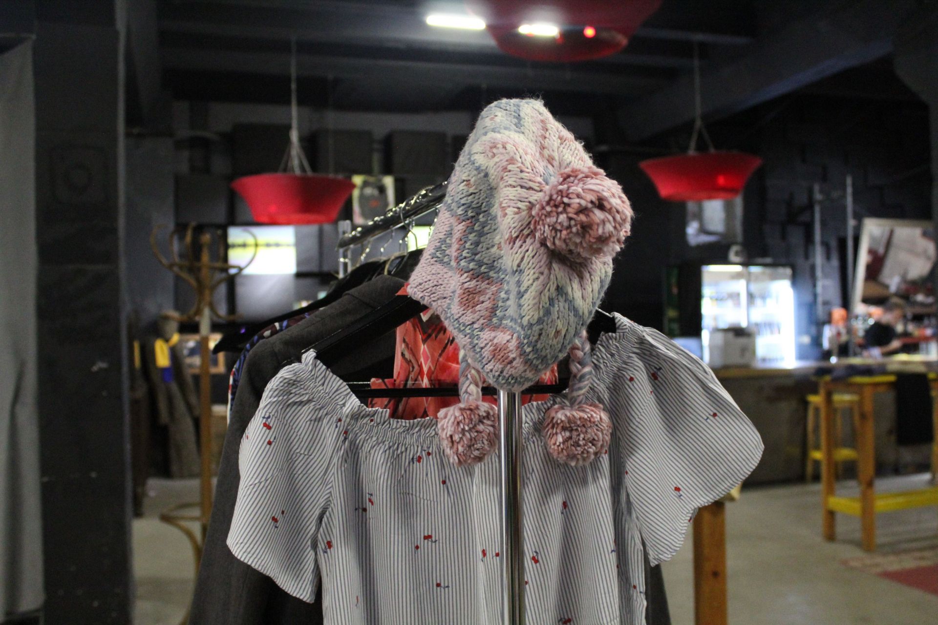 Одяг висить на саморобних стійках-вішачках та має бірки з ціною. Купити тут можна все, що заманеться. Речі дешеві і хорошої якості, якщо пошукати – зустрінете навіть відомі бренди – сукні і сорочки від Zara, сумки від Mary Kay тощо.