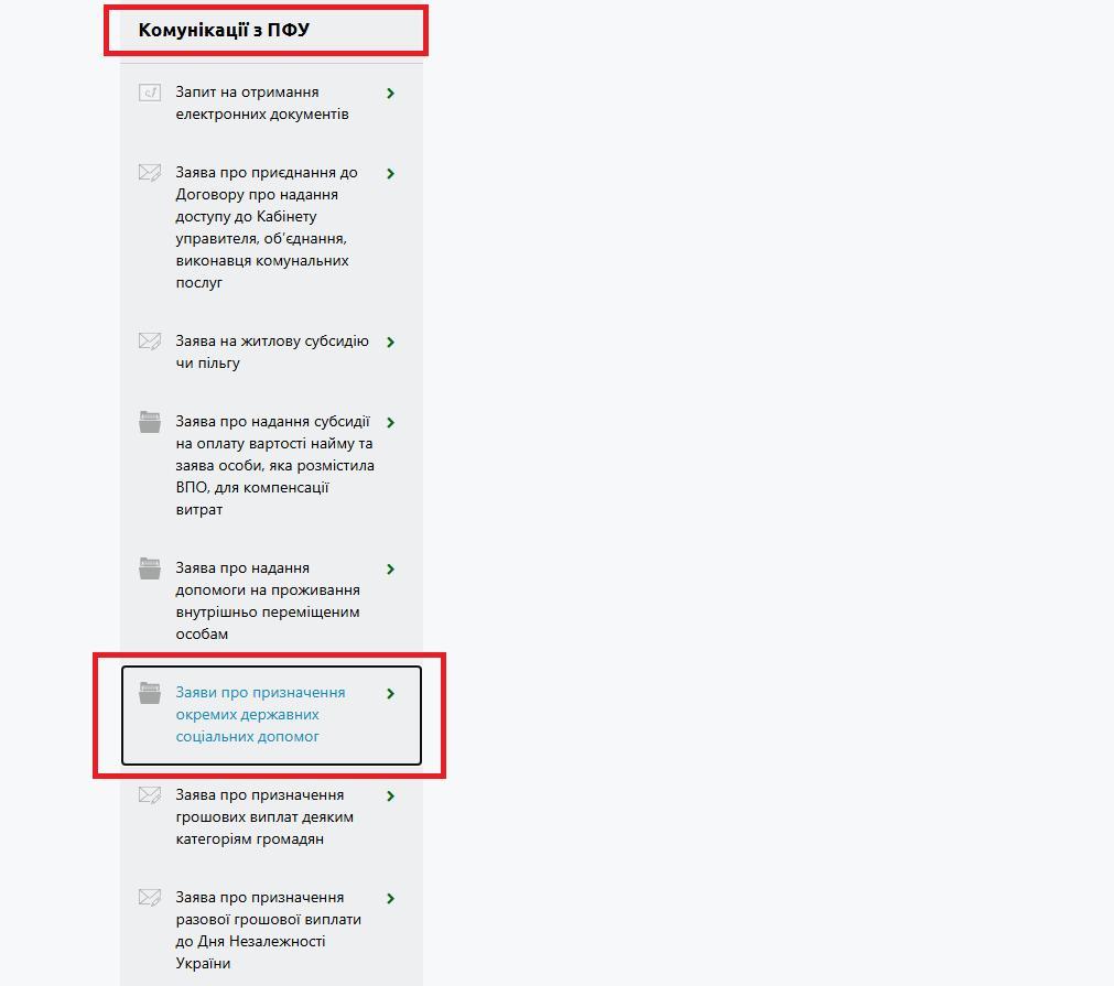 Крок 3. У вікні, що відкриється, оберіть розділ «Окремі види державних соціальних допомог».